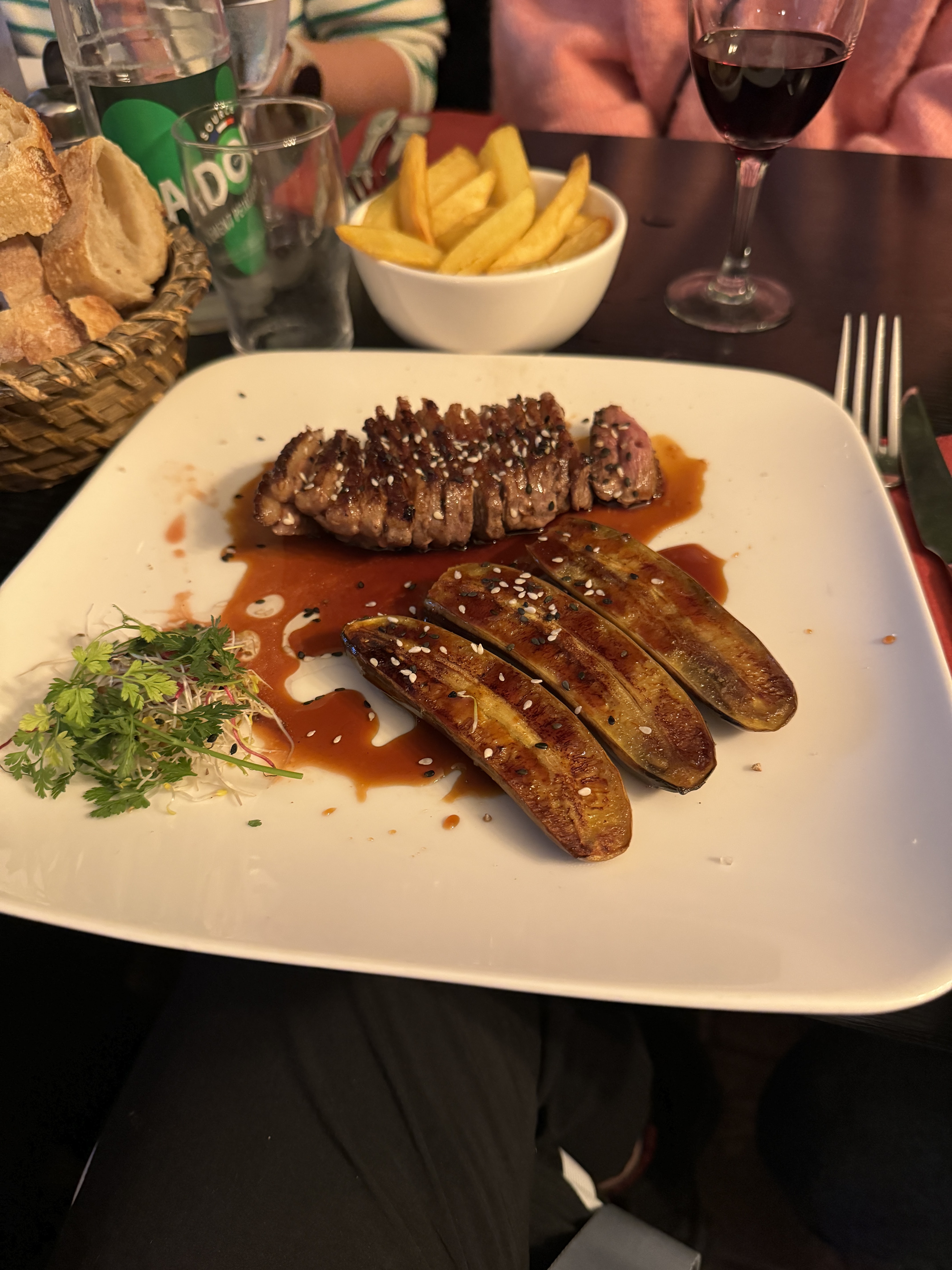 Un tres bon restaurant dans une rue calme de levallois Une carte détaillée avec au menu un tres bon magret de canard caramélisé avec des bananes « figues »… c’est juste un régal culinaire ! Je recommande fortement ce restaurant. Un bon vin pour accompagner le tout et pour finir une petite coupe de champagne.