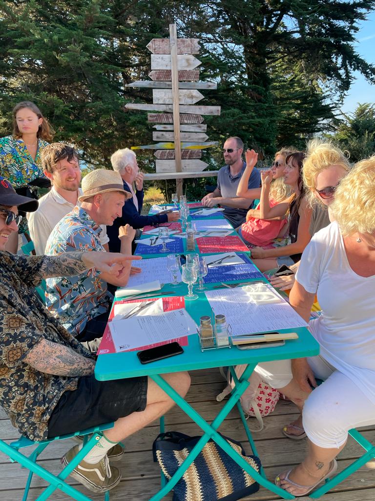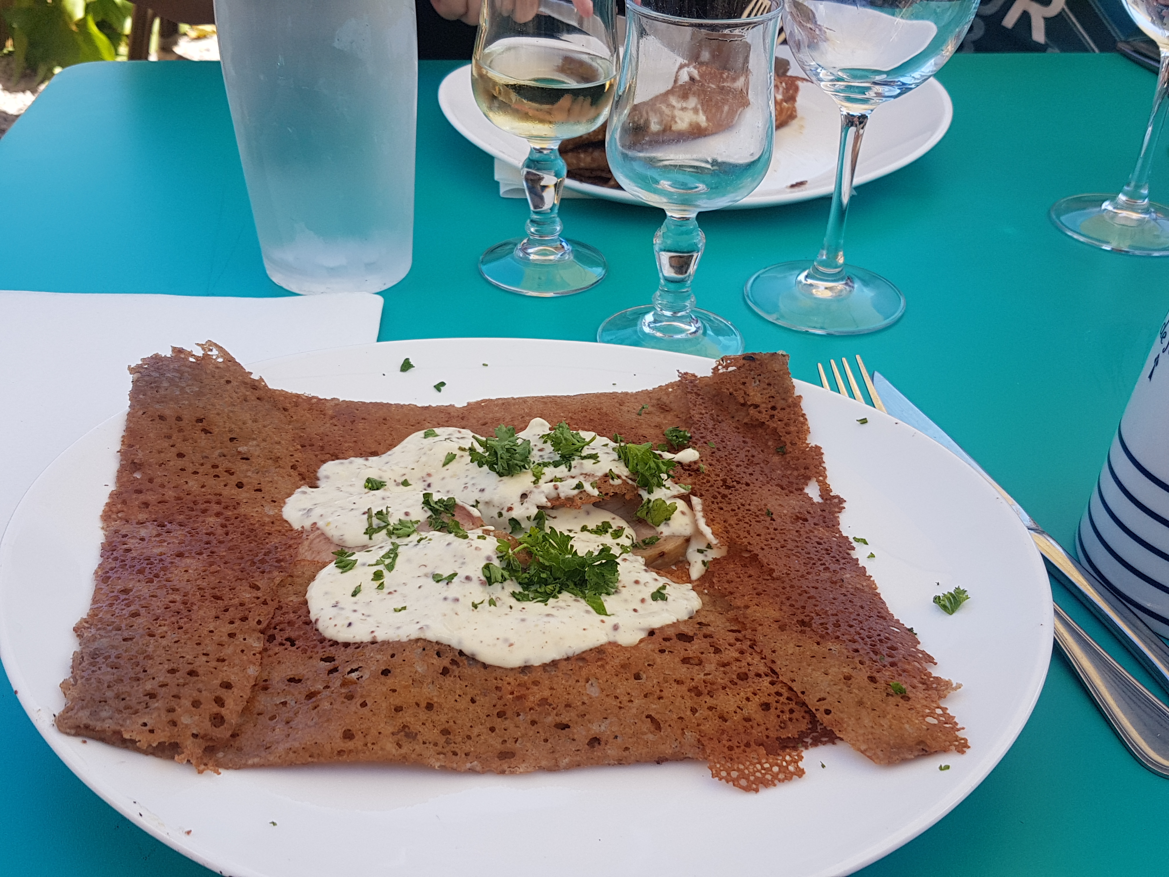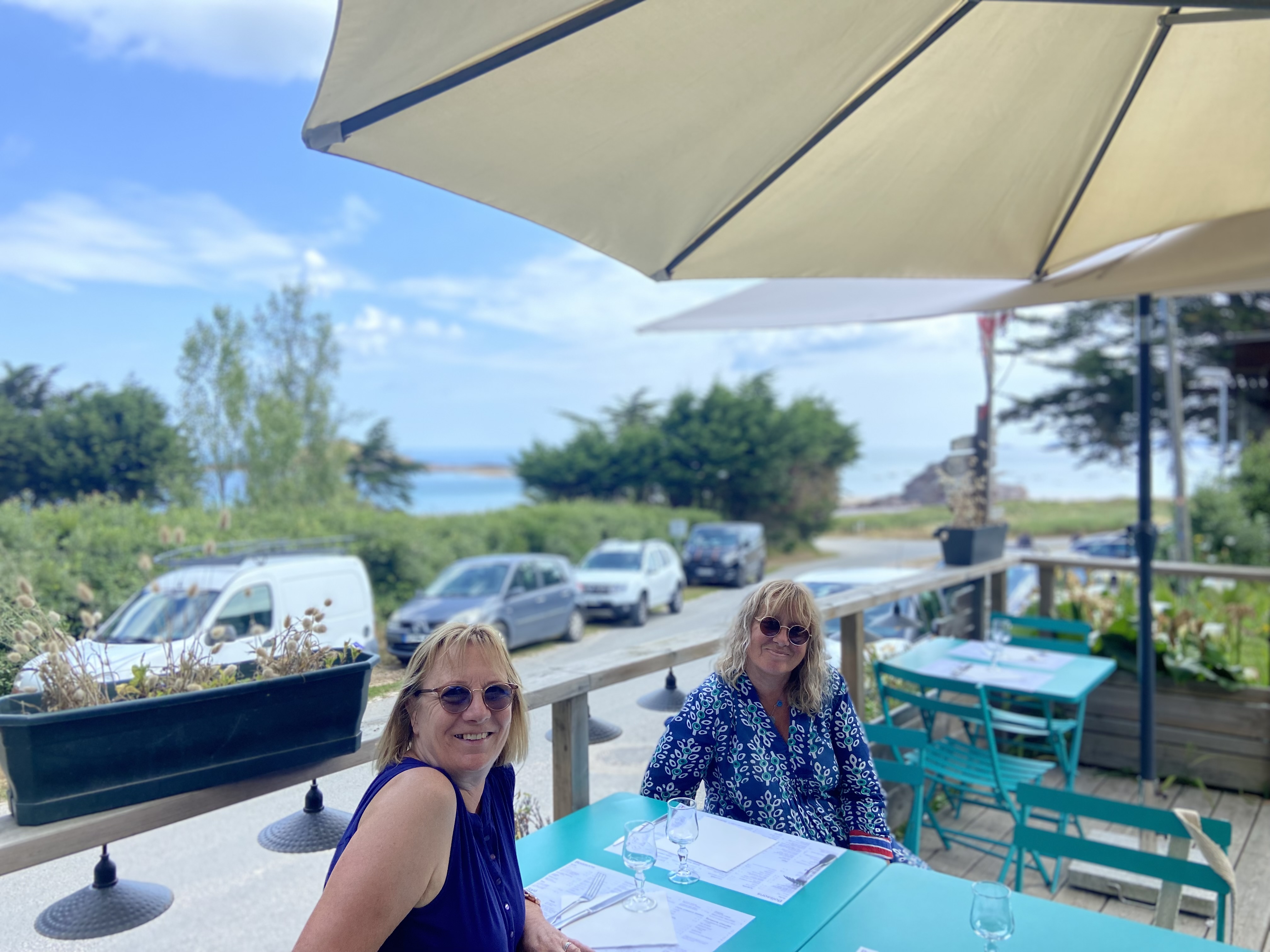 Petite guinguette, il faut réserver. Vue mer, bonnes moules, bonnes crêpes. Sourires. Et ensuite montée jusqu'à l'îlot