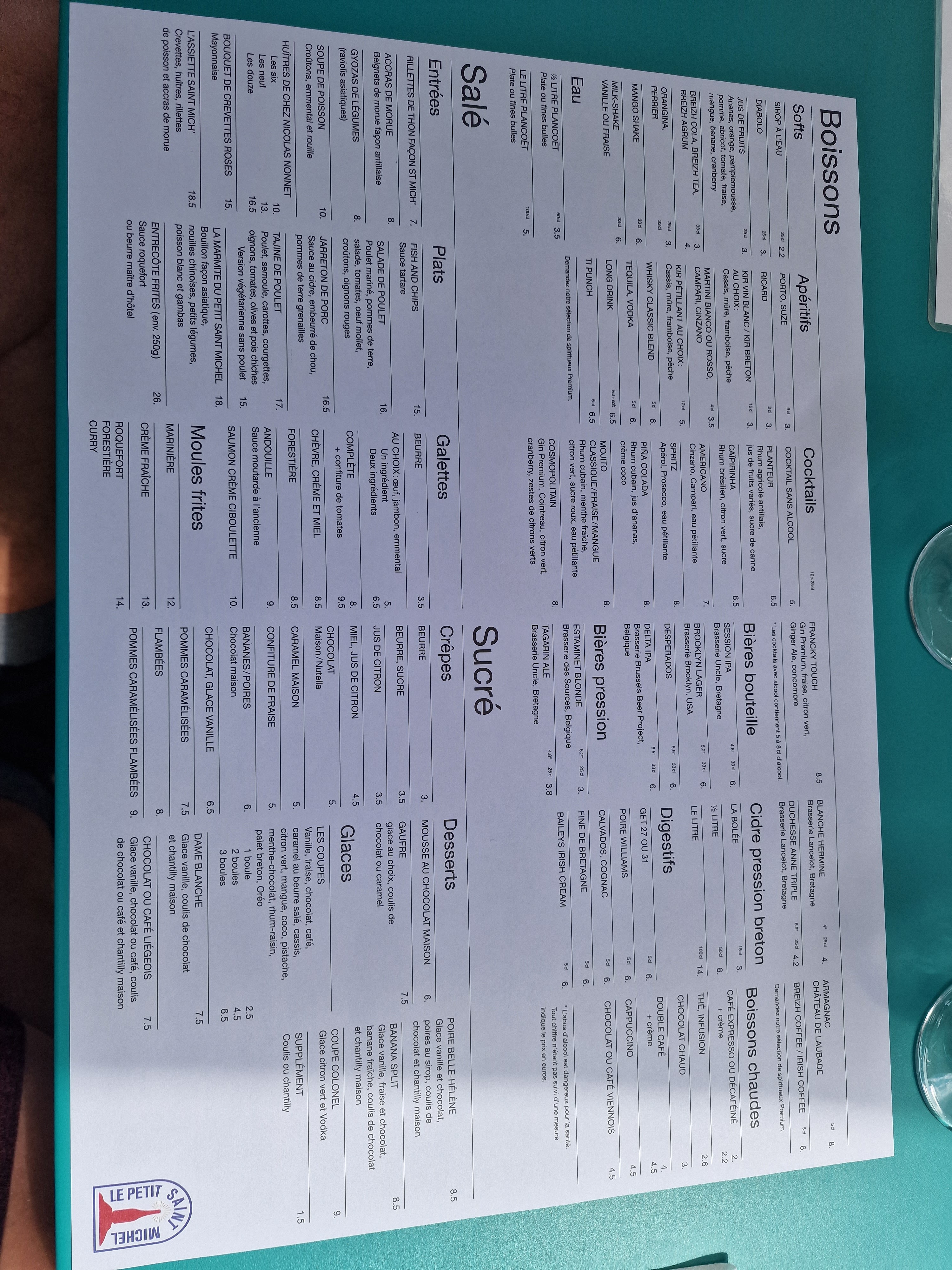 On y mange bien, Au petit Saint Michel. À la bonne franquette, les galettes sont bonnes, entrées et desserts aussi. Du choix pour les boissons. Les serveurs sont très agréables et détente, la décoration de la terrasse est sympa. À recommander.