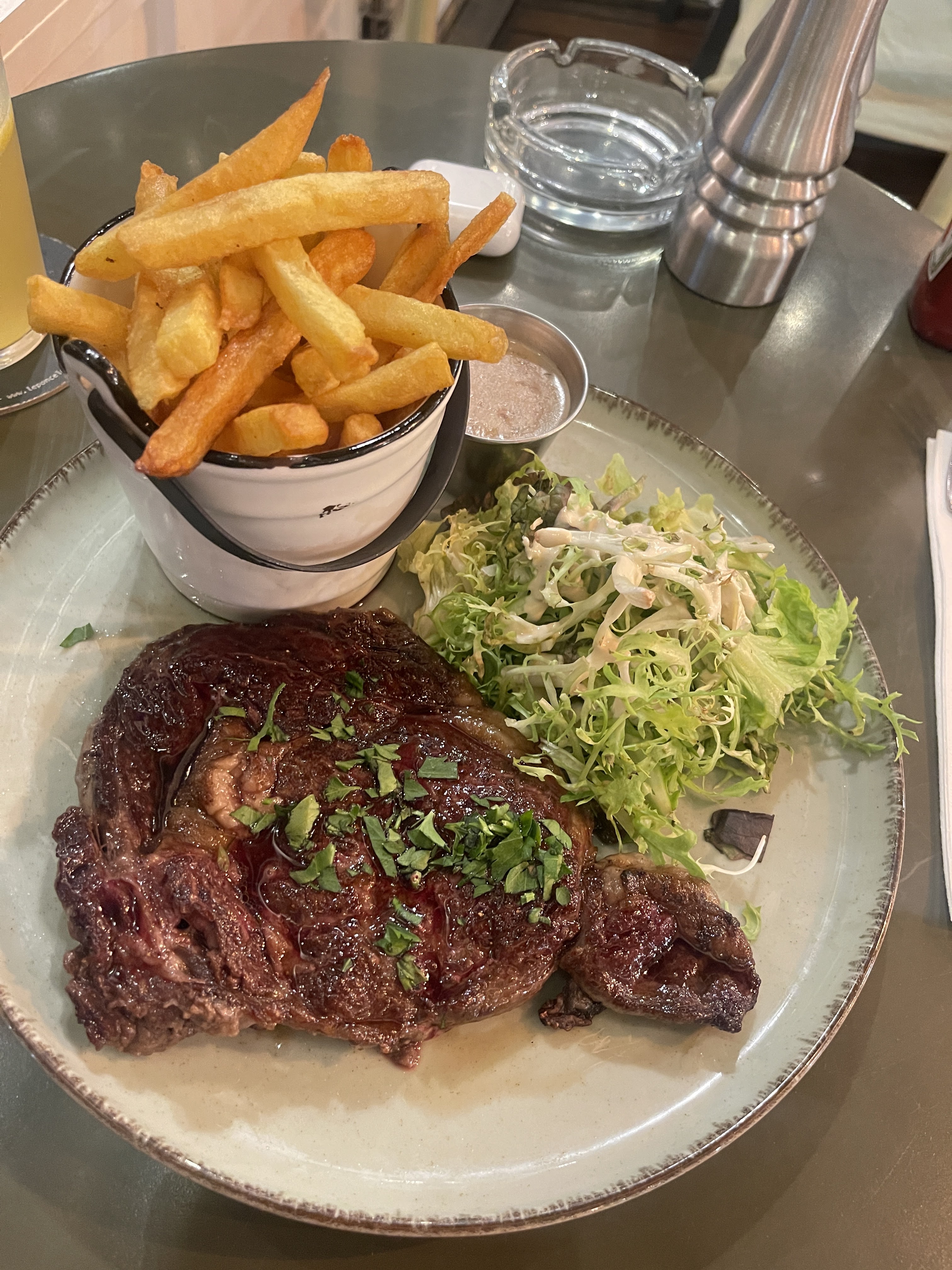 Première fois dans ce restaurant, entre collègues. Agréable surprise. La petite attention pain / beurre salé avant d’avoir les plats est appréciée. Concernant mon chicken burger je l’ai trouvé légèrement sec, mais ça passait bien. J’avais demandé d’enlever la sauce moutarde miel, et de mettre la sauce cocktail à la place. Peut-être est-ce dû à ça ! Frites et mayonnaise maison très bonnes !! Petit bémol sur les tables en biais, attention à ne rien laisser de léger sinon ça tombe forcément, mais c’est le trottoir qui est ainsi. Merci, je recommande !
