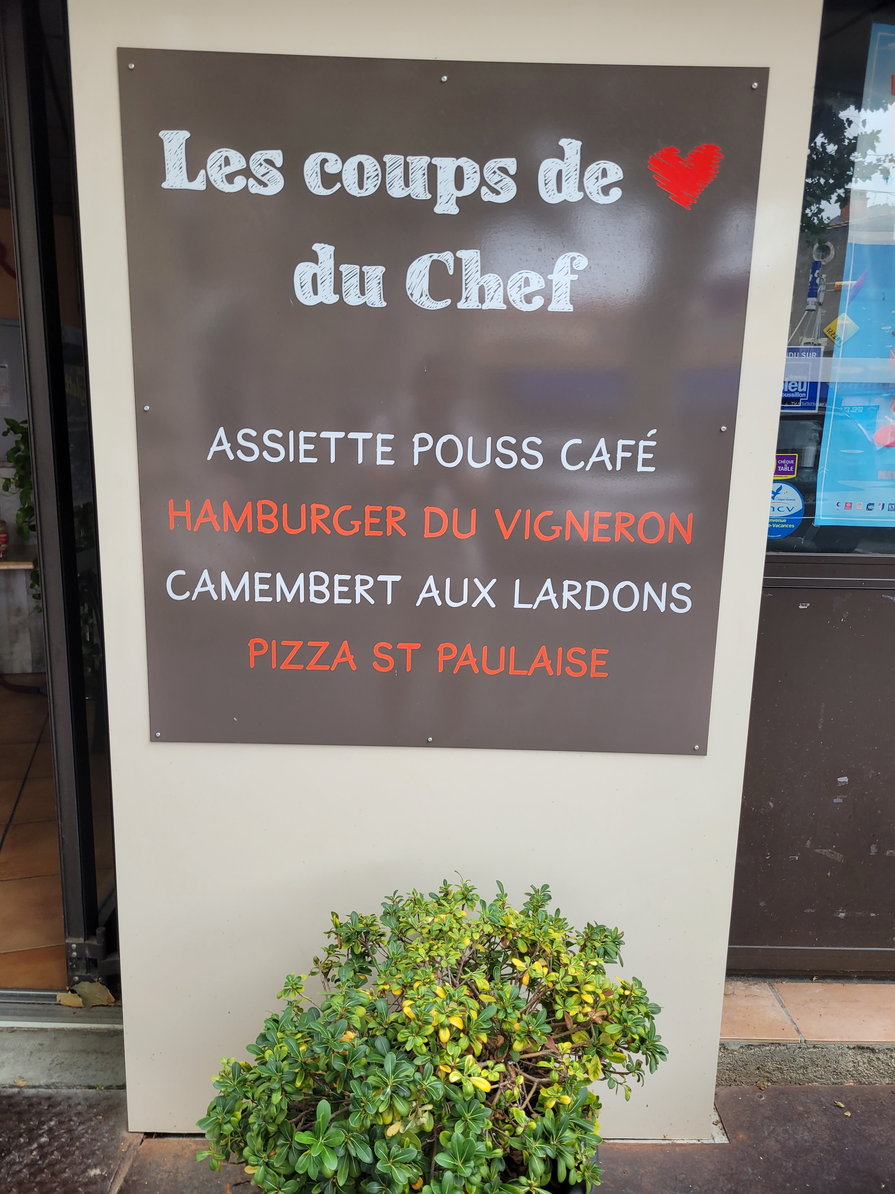 Une bonne pause déjeuner au pousse café. Deux motards de passage satisfaits pour l'ensemble cuisine/service/tarif et jolie place calme.