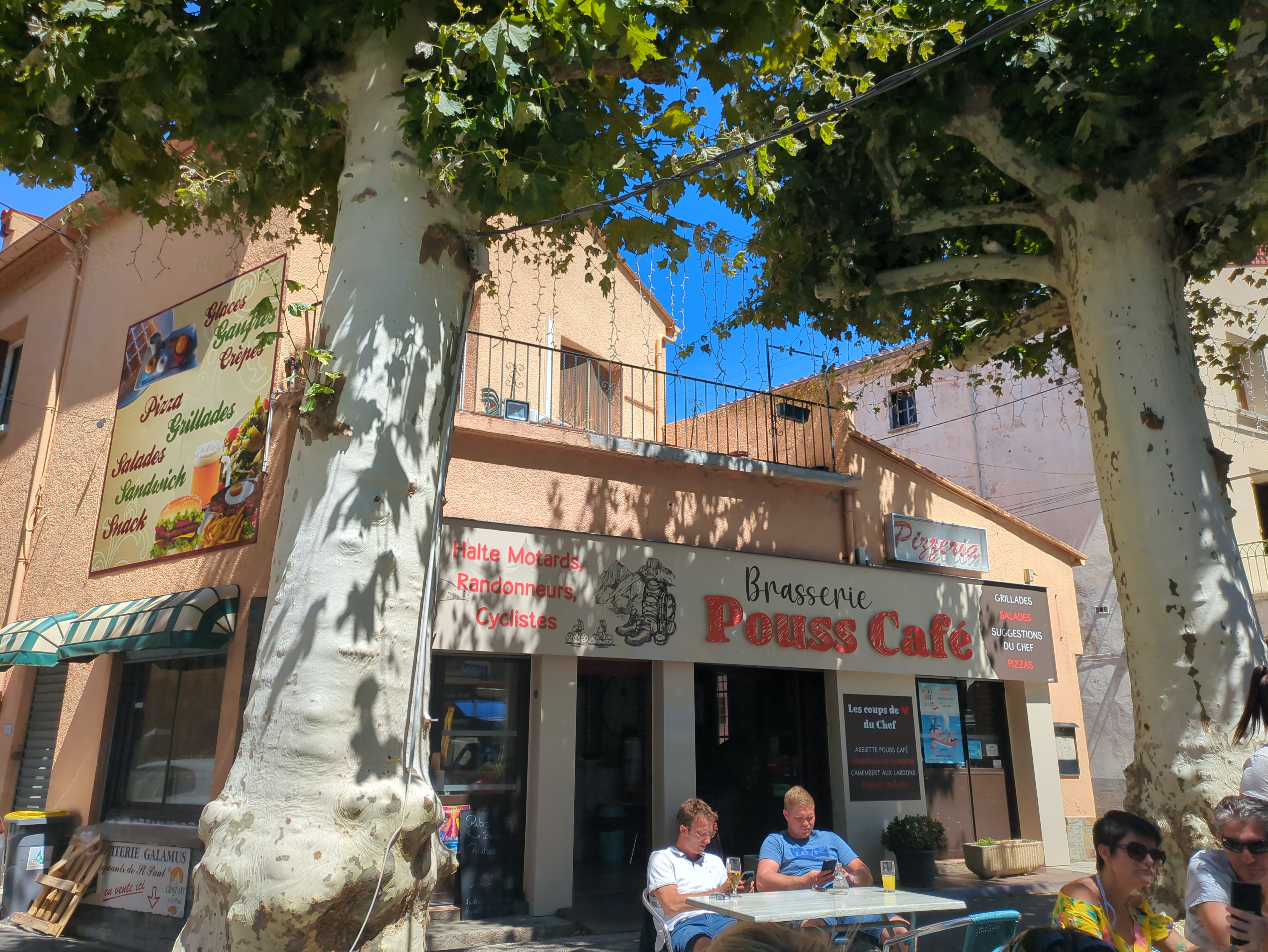 Idéal pour une halte lors de la découverte des Corbières ! Service amical, bons snacks et bière fraîche dans la chaleur du sud de midi avec vue sur la vie locale.