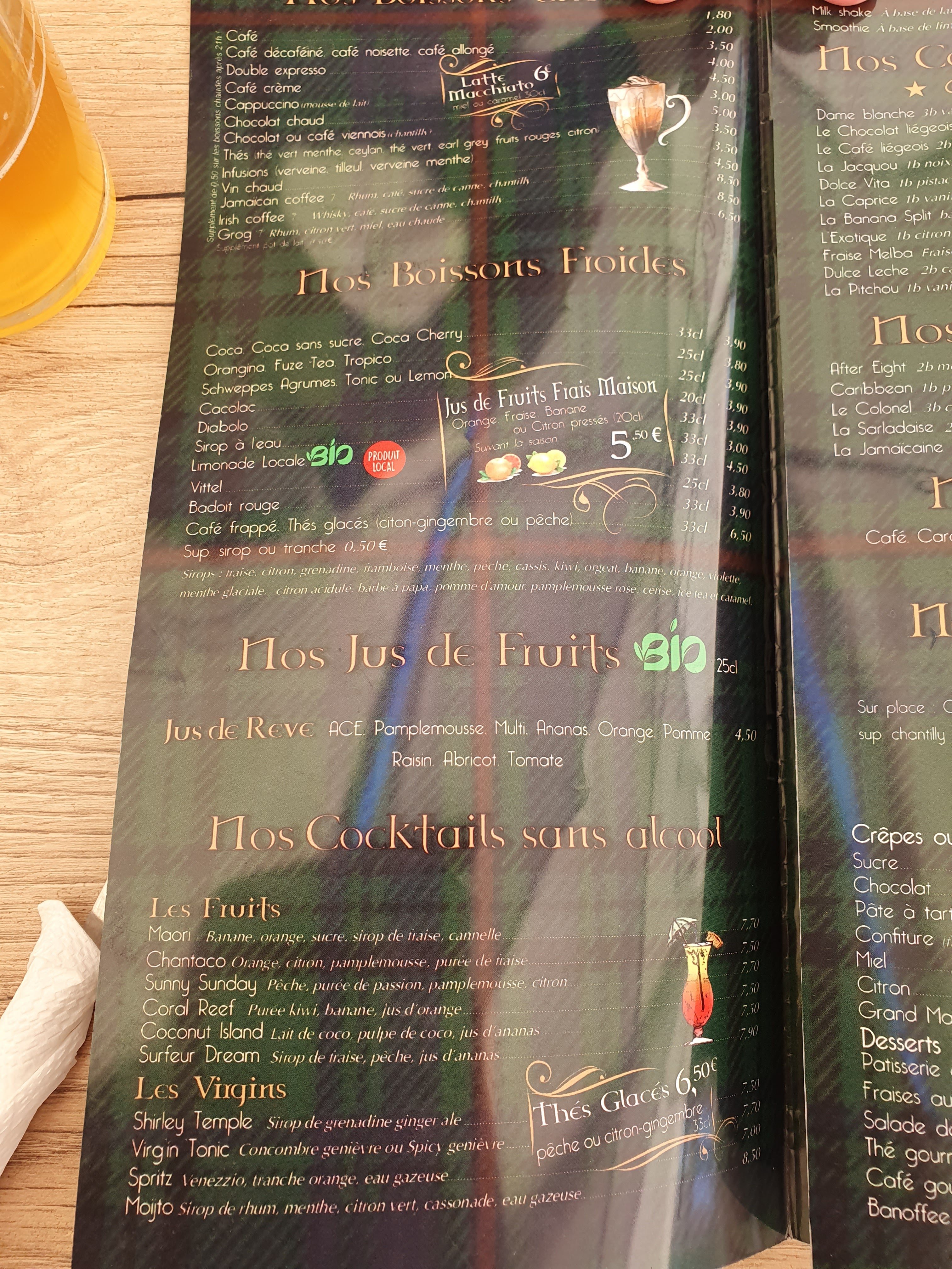 Bon choix de bière, de très bons cocktails et de la chantilly maison