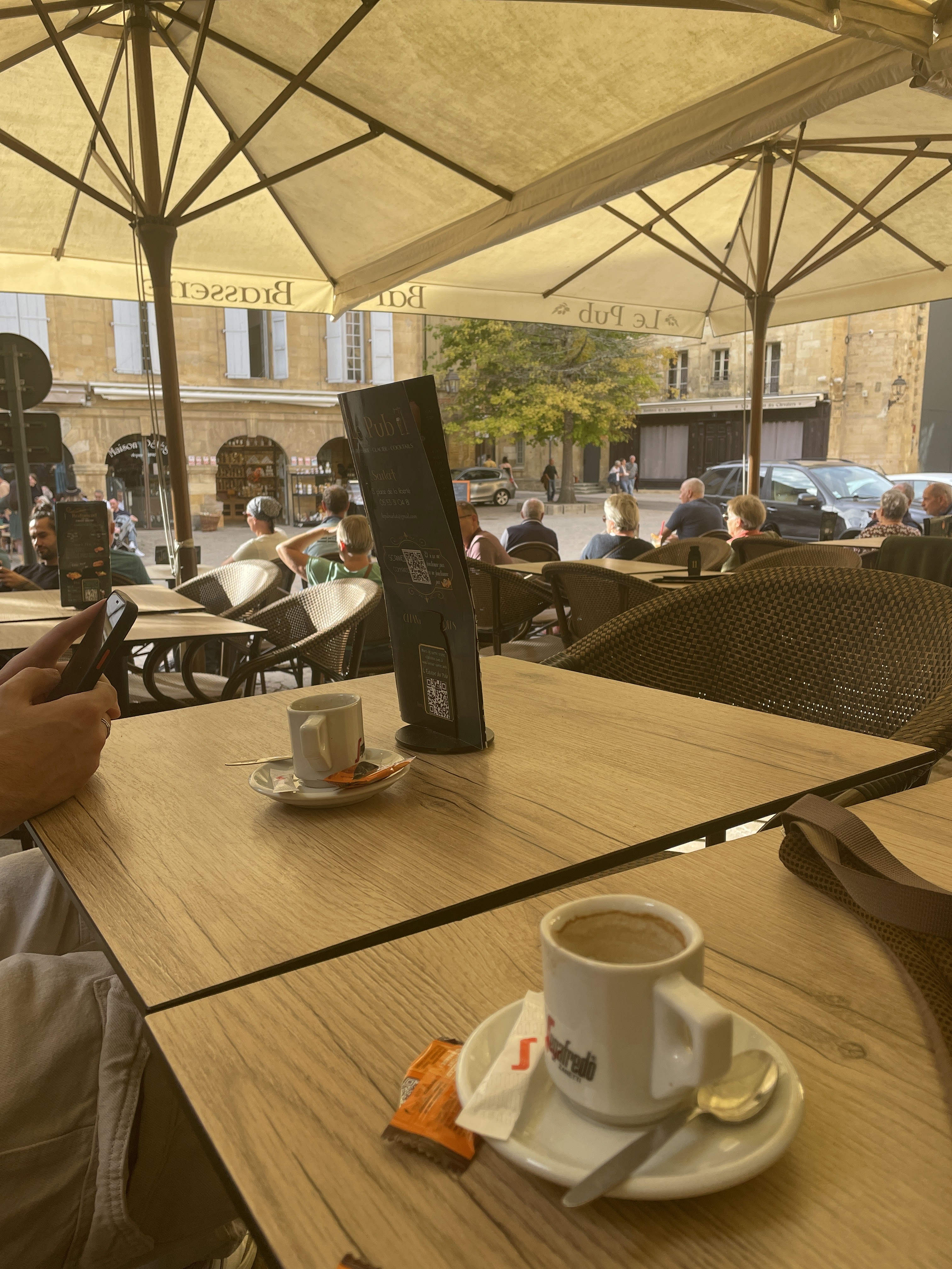 Une pause bien méritée, pep's et sourire des serveuses dans cette belle ambiance de marché du mercredi matin ... merci pour ce super moment de détente