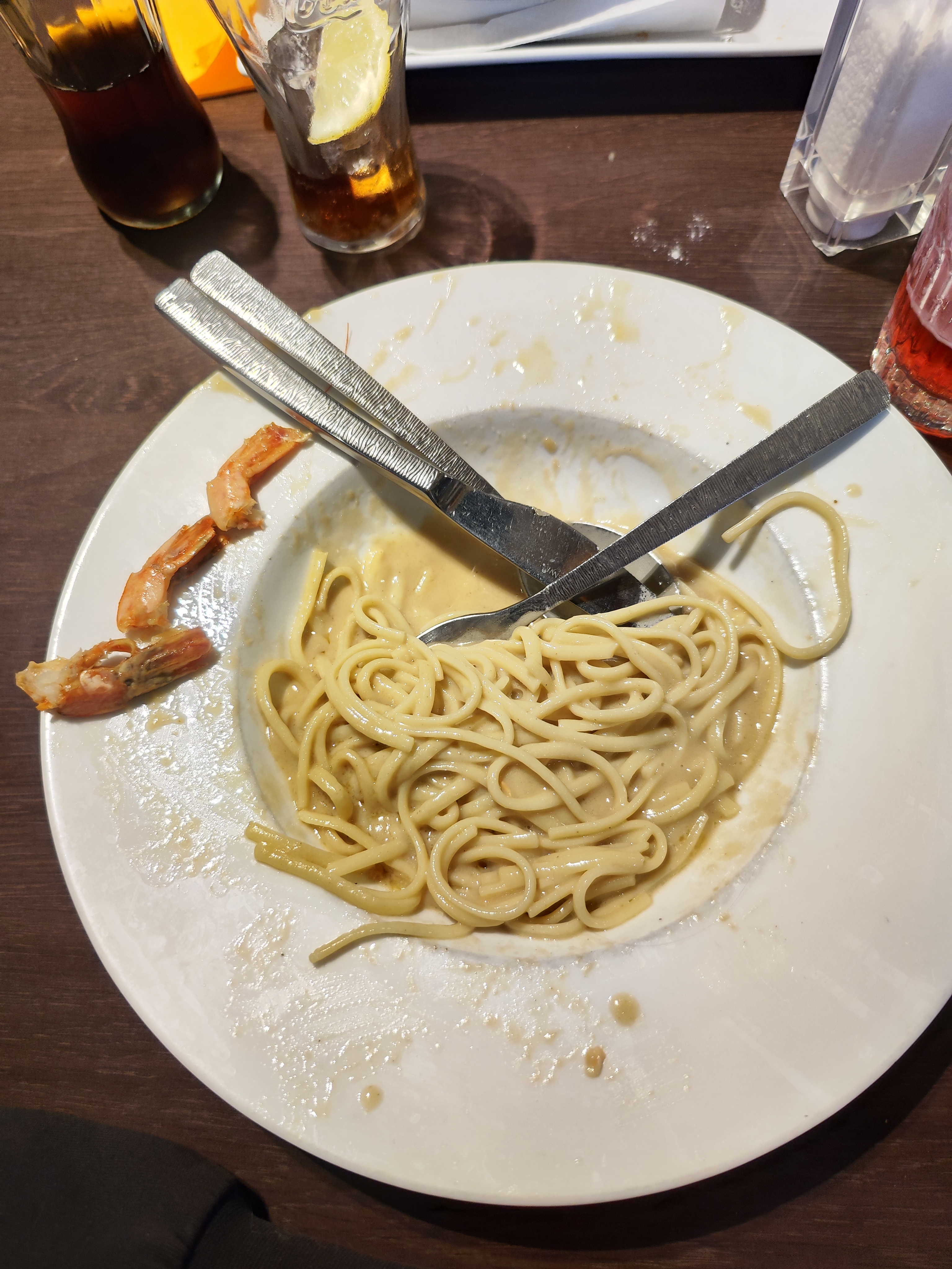 Très déçu de mon passage J'ai pris des Linguines Saumon Gambas Thaï... 3 gambas, 2 morceaux de saumon de 2x2cm.. et alors je cherche encore le gingembre la citronnelle et le citron vert... La sauce était vraiment pas bonne, aucun goût des ingrédients cité précédemment.. Et pour avoir fais l'école de cuisine, la première chose qu'on apprend c'est qu'avant on mange un plat par le visuel... Il manquerait une petite verdure, un peu de persil, ou justement un morceau de citron vert... Très déçu et quand on en parle au serveur, la réponse est je ne peux rien faire.. D'ailleurs j'attends encore le pain qu'il m'a proposé au service du plat... Dommage vous m'avez habitué à mieu..
