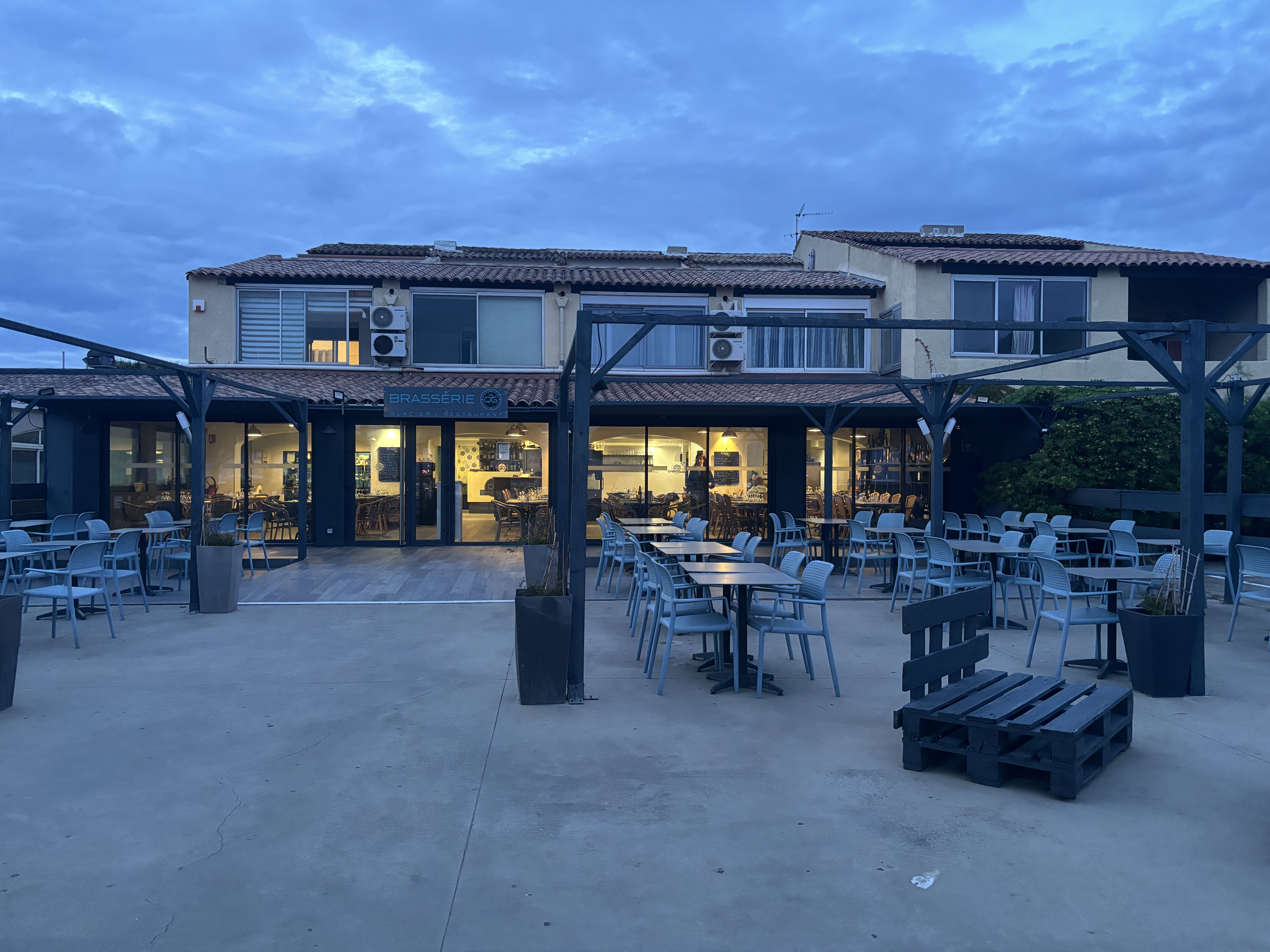 Cette Brasserie est bien située sur le port de plaisance de Fos sur Mer. La terrasse est vaste et accueillante pour les beaux jours et la salle agréable. L’accueil et le service sont sympathiques. Très bon vin blanc des Alpilles. Nous commandons des morues à la vapeur avec une jardinière de légumes, mais la serveuse revient nous prévenir que le chef avait changé le plat et opté pour du mérou. Va pour le mérou même si c’est un peu bizarre sachant que le plat n’était pas dans la carte mais parmi les « suggestions du chef ». Le problème est que le poisson était vraiment surcuit, donc sec et dur. Les légumes en revanche étaient bons. Dessert (profiterole) correct.