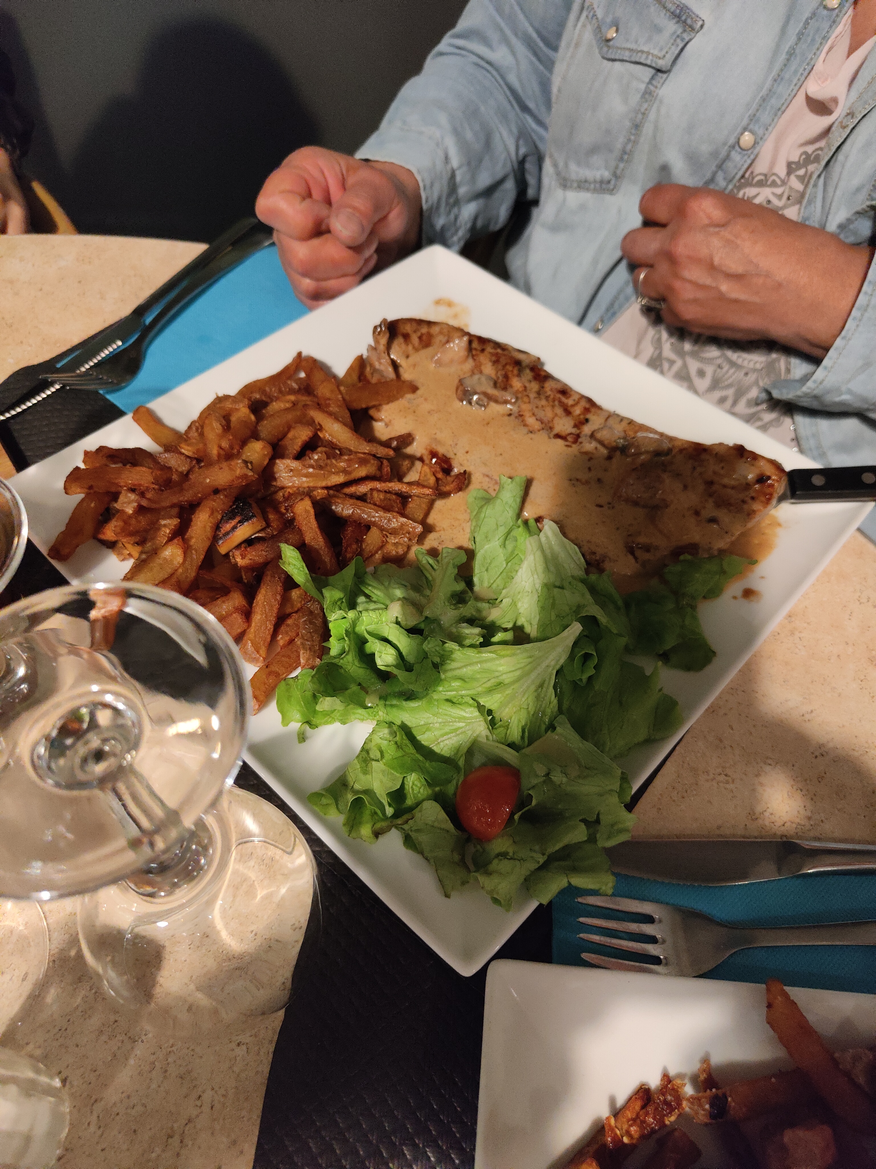 La 1ère fois que nous y allions mais nous n'avons pas été déçu. Le menu à 25€ le soir est copieux. Nous avons pris la salade de tentacules et de supions. Très bonne et la part est généreuse. Ensuite, le tartare poêlé était très bien assaisonné, le magret de canard cuit parfaitement. Les gambas à la plancha étaient légèrement trop cuites. En accompagnement, les frites sont maison et les pommes de terre au four sont très bonnes. Pour finir, nous avons pris l'île flottante et le fondant au chocolat. Les 2 desserts étaient très bons. Nous avons accompagné ce repas d'un vin blanc Paternel qui ne se trouve pas facilement dans tous les restaurants. Un grand parking se trouve juste devant, ce qui est très pratique. Le service est rapide, il n'y avait pas d'attente alors que le restaurant était plein. Les serveurs sont sympathiques. Nous y retournerons... Nous venons d'y retourner 3 mois après et c'est toujours aussi bon. L'équipe est très sympathique et le service très rapide. Nous comptons bien revenir car tout donne envie sur leur carte ! De retour en février 2022, je confirme ma 1ère impression. C'est délicieux. Nous avons testé l'escalope de veau sauce champignons et le Pulma de porc, ainsi que la crème brûlée. Les portions sont extrêmement généreuses. Le service est toujours au top. Nous y sommes retournés en juillet 2022. Décembre 2023: toujours très bien