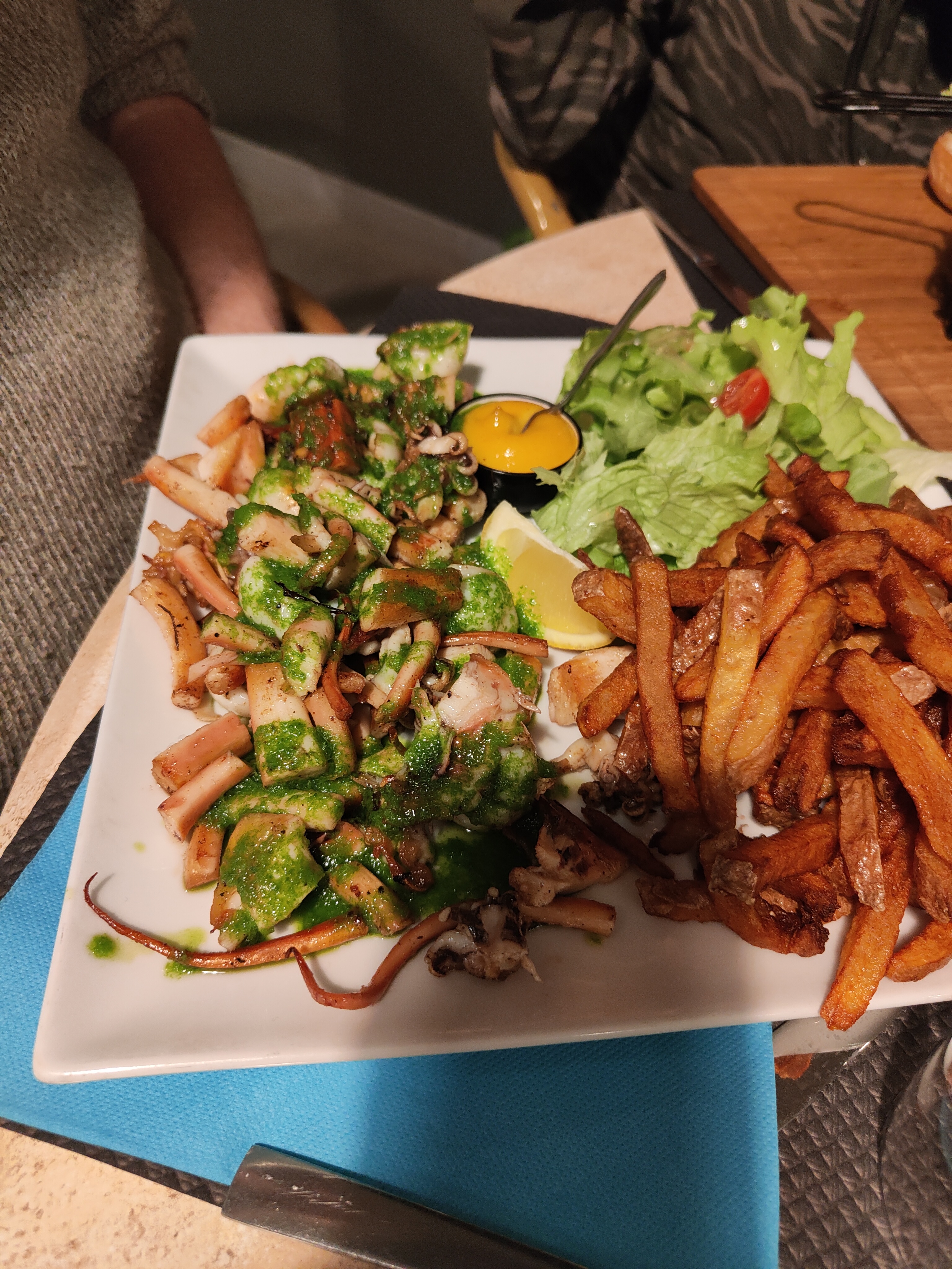 Plancha et mini rouille plutôt bien et bon mais les frites sont à revoir. Bon dans l'ensemble.