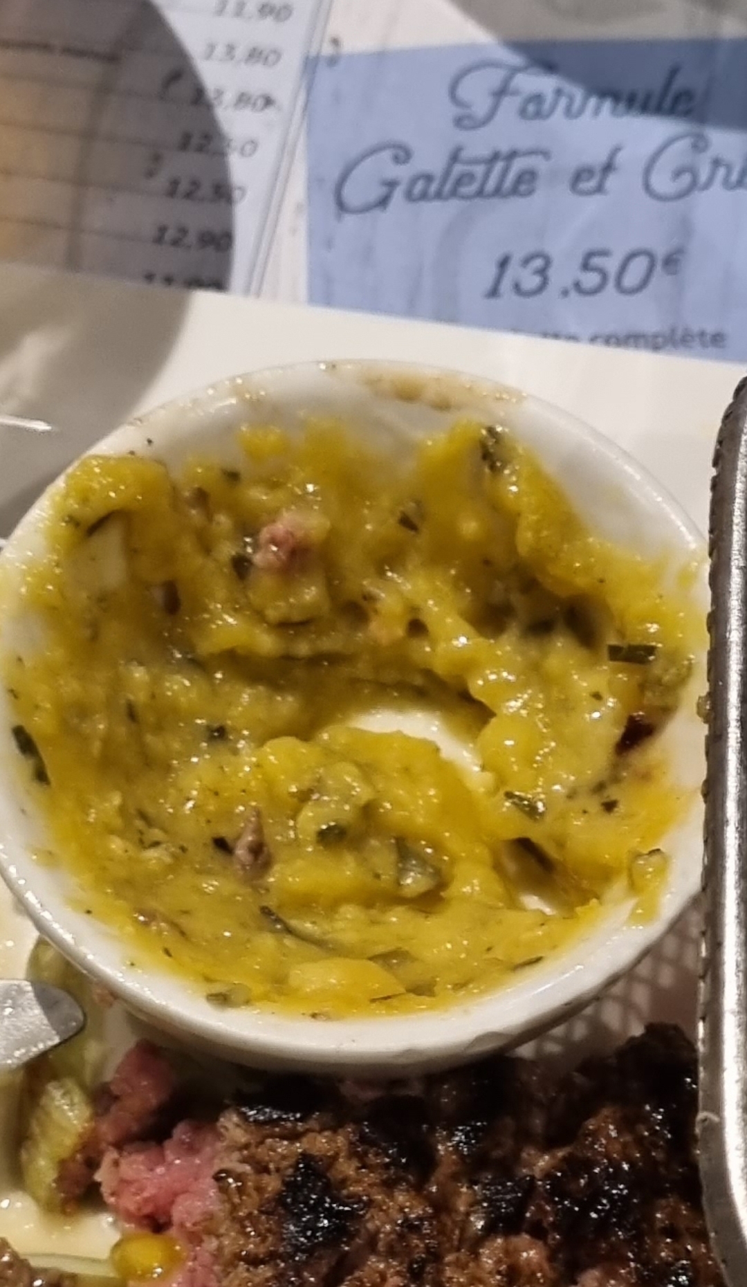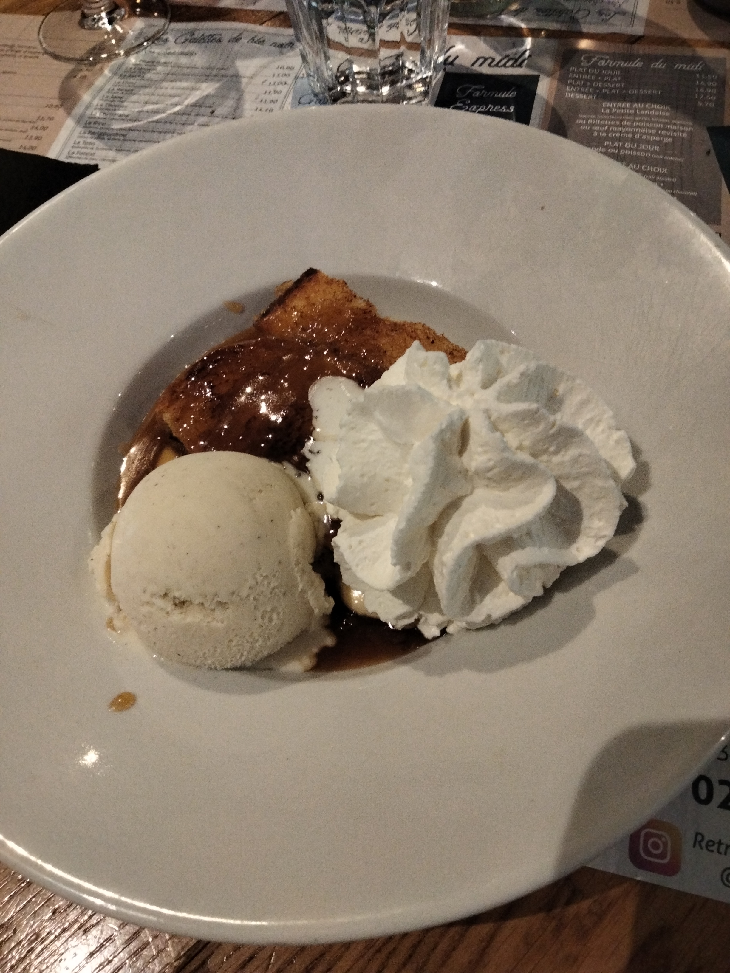 Nous avons déjeuné ce midi, Galette du jour avec écrasé de pdt sans saveur, poireaux inexistant c est dommage, c'était un établissement très bien il y a quelques années. Un serveur que nous avons remis à sa place, trop familier, le tutoiement, un peu exubérant . Nous ne reviendrons pas.