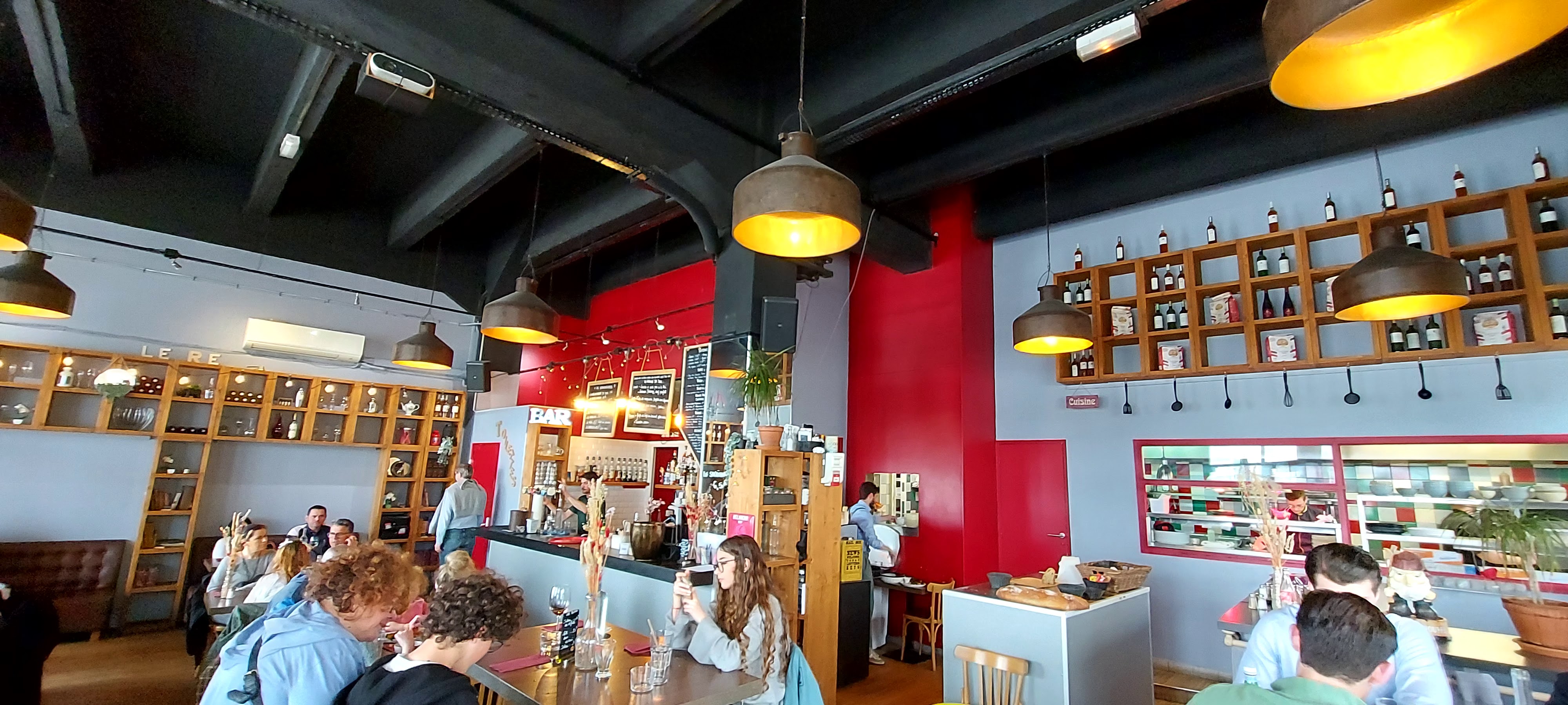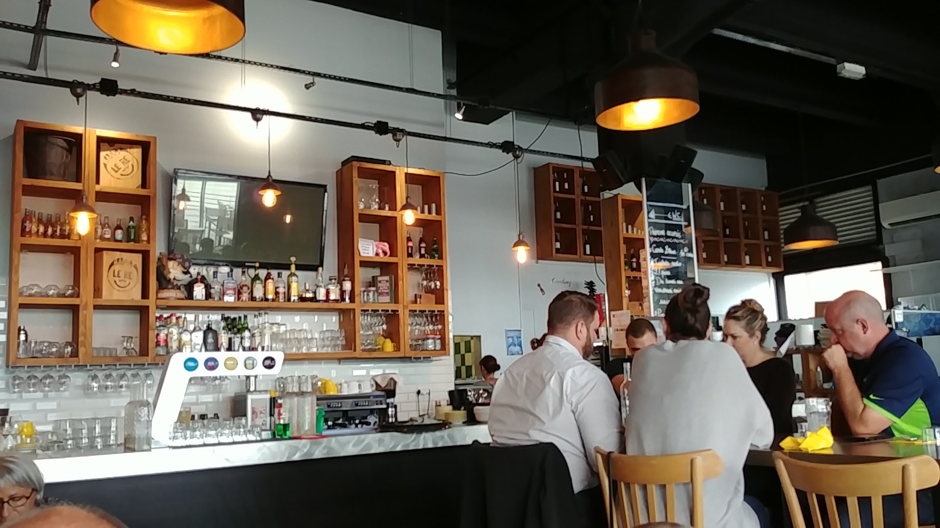Lieu emblématique des Hangars pour les travailleurs et étudiants du coin et certainement un des meilleurs lieu de restauration de ces derniers (le reste des lieux de restauration des dits Hangars n'est en revanche pas folichon pour être clair). Personnel amical et très souriant. Touristes et travailleurs la journée et étudiants et salariés du coin le soir. Lieu pratique et convivial. Service assez rapide. Peut être pas un waouh en cuisine mais on sent l'effort. Des plats simples mais qui manquent d'un petit plus : poissons rempli d'arêtes, croque monsieur bon mais pas incroyable. D'excellents restaurants ne sont d'ailleurs pas très loin en allant vers les Chartrons et en quittant justement les Hangars... Un bravo malgré tout pour le service et pour la fidèle gamelle pour les toutous sortie par tous les temps !