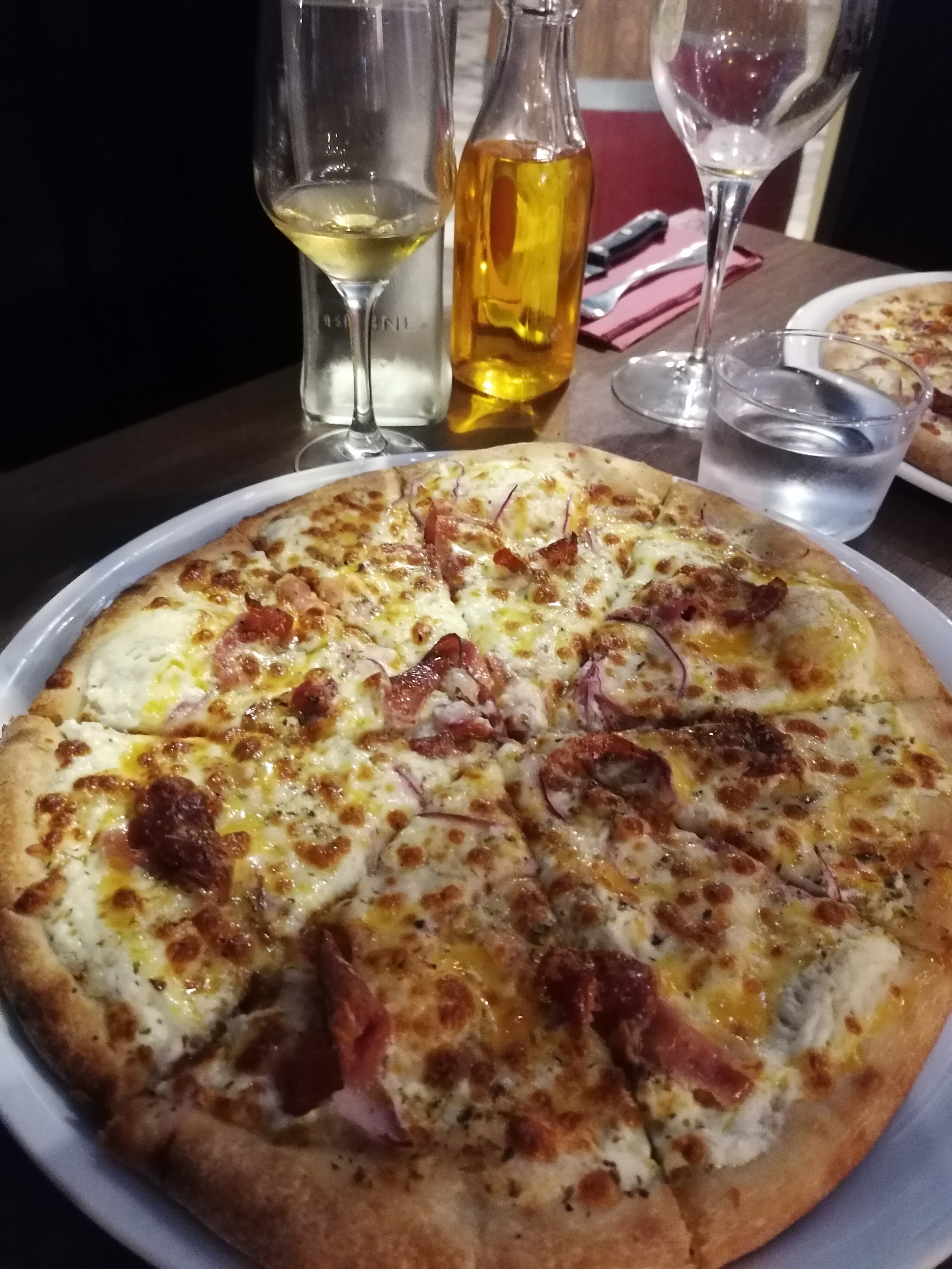 Un resto tombait par hasard dessus. Une découverte superbe. Un accueil au top, chaleureux bienveillant. un petit vin au verre un vin blanc doux qui change du tariquet une merveille 🤩 Et la pizza carbonara un délice la pâte fine croustillante et surtout des ingrédients de qualité. Je passerai le pont maintenant pour venir manger une pizza. Merci pour ce super accueil