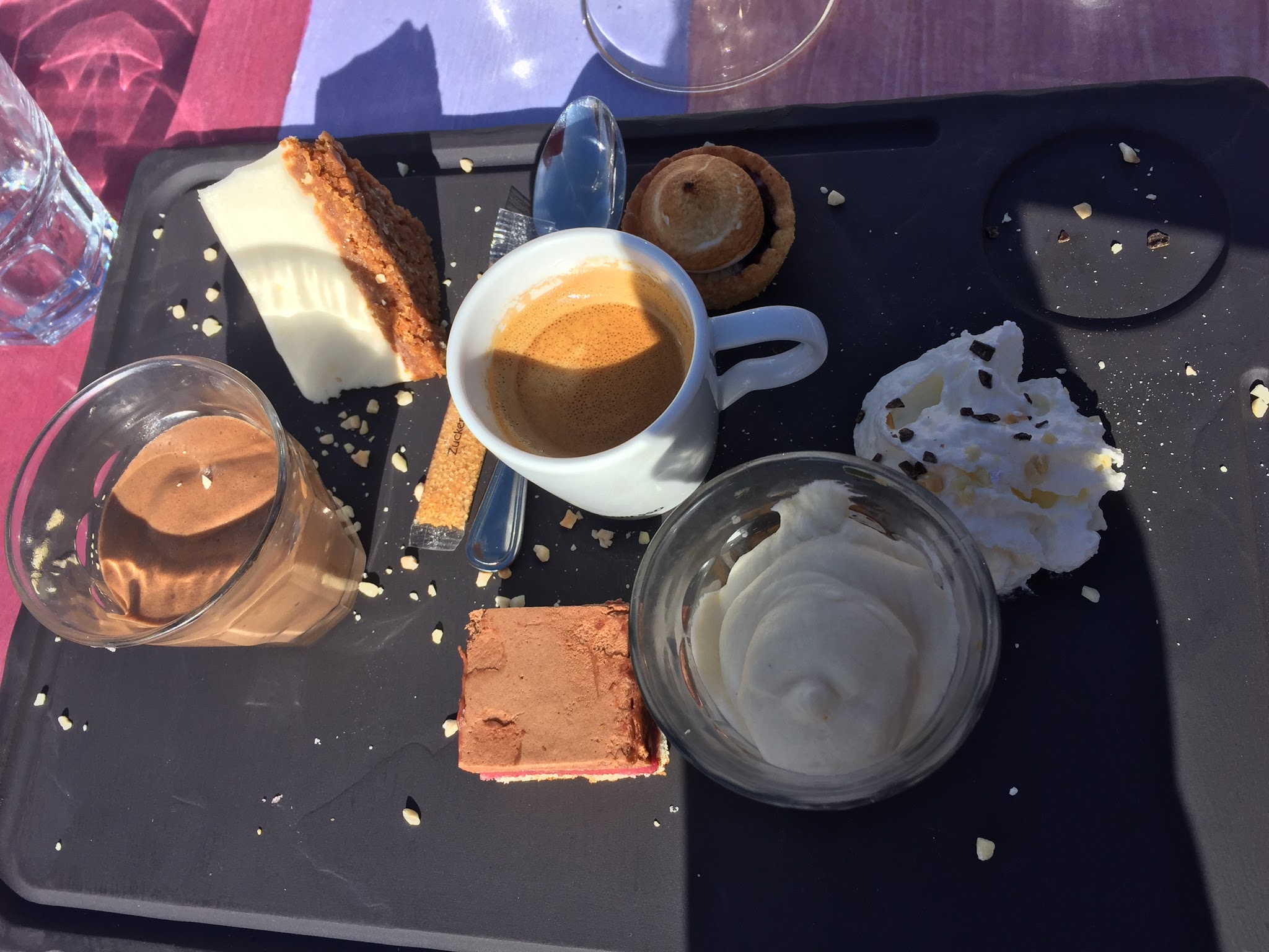 Panorama magnifique mais peut mieux faire en qualité des plats par rapport au prix (petits exemple: vinaigrette maison au lieu de la sauce industrielle, un biscuit ou carré de chocolat avec le café). Quelques parasoles sur la terrasse extérieure seraient les bienvenus.