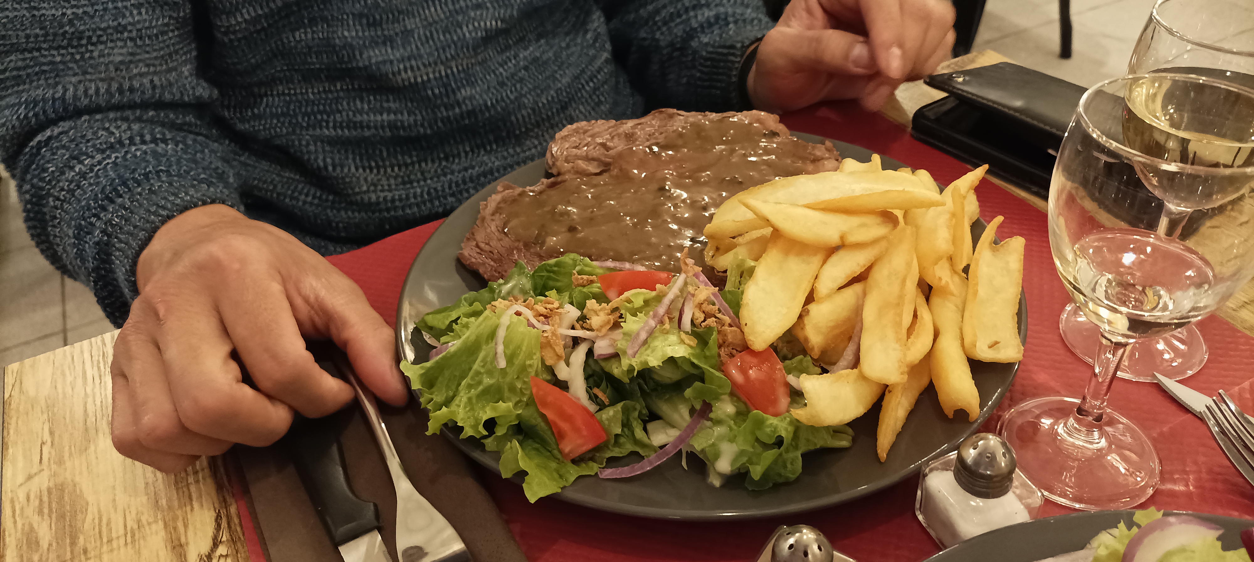 Viande plus que excellente d une tendreté parfaite par contre pour les frites un peu grasse et vraiment trop croustillantes. Mais cela ne nous a pas empêcher de passer un bon moment.