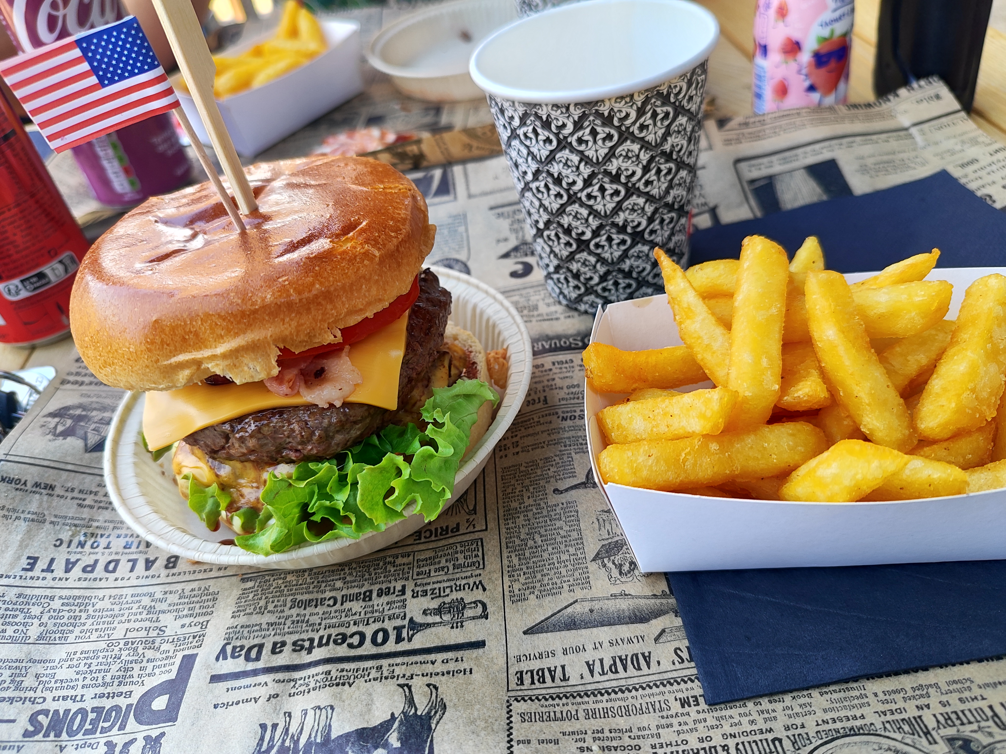 burgers et frites supers bons, service attentionné, rapide, on a pris deux burgers americains, copieux et un burgers le pollo, très gouteux. belle terrasse, on recommande!