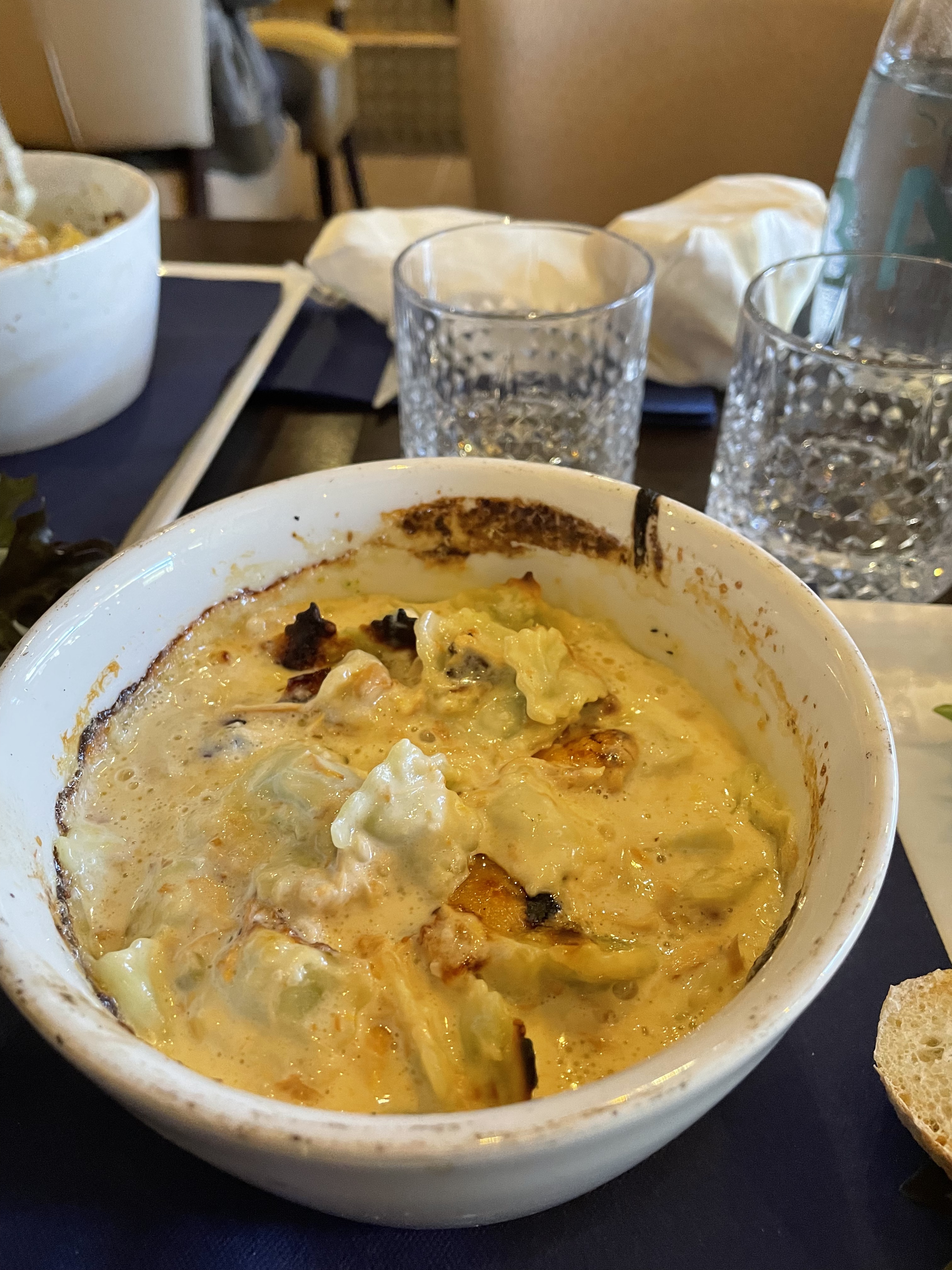 Très bonne expérience dans cette brasserie un peu surchargée mais cela veut dire qu elle fonctionne bien ! Les ravioles au gorgonzola et truffe étaient parfaites. Les entrecôtes très bonnes mais un peu chères. Les serveurs/serveuses étaient très gentils. A recommander !
