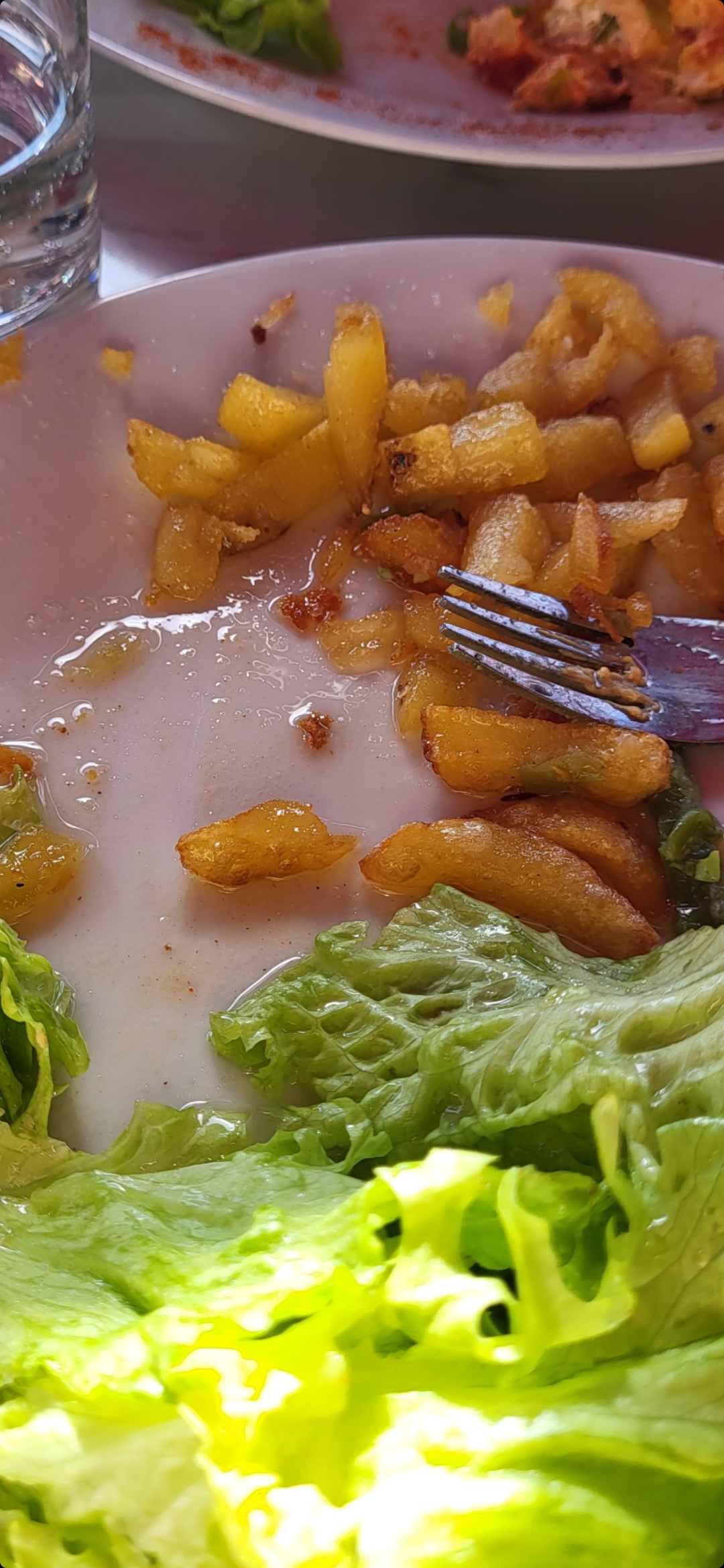 Un service déplorable (on vient jamais vous voir), des frites pas fraîches, creuses et des déchets de frites. Le plat sinon ça allait.
