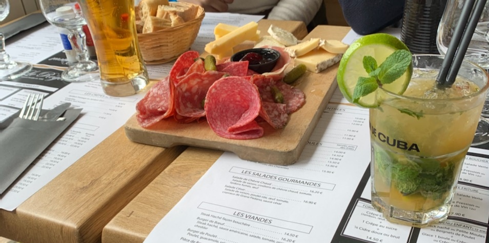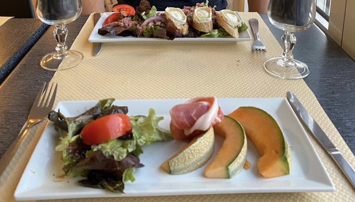 Restaurant très bon, carpaccio de St Jacques, bavette et crème brûlée au menu. Très bon et copieux. Service au top.