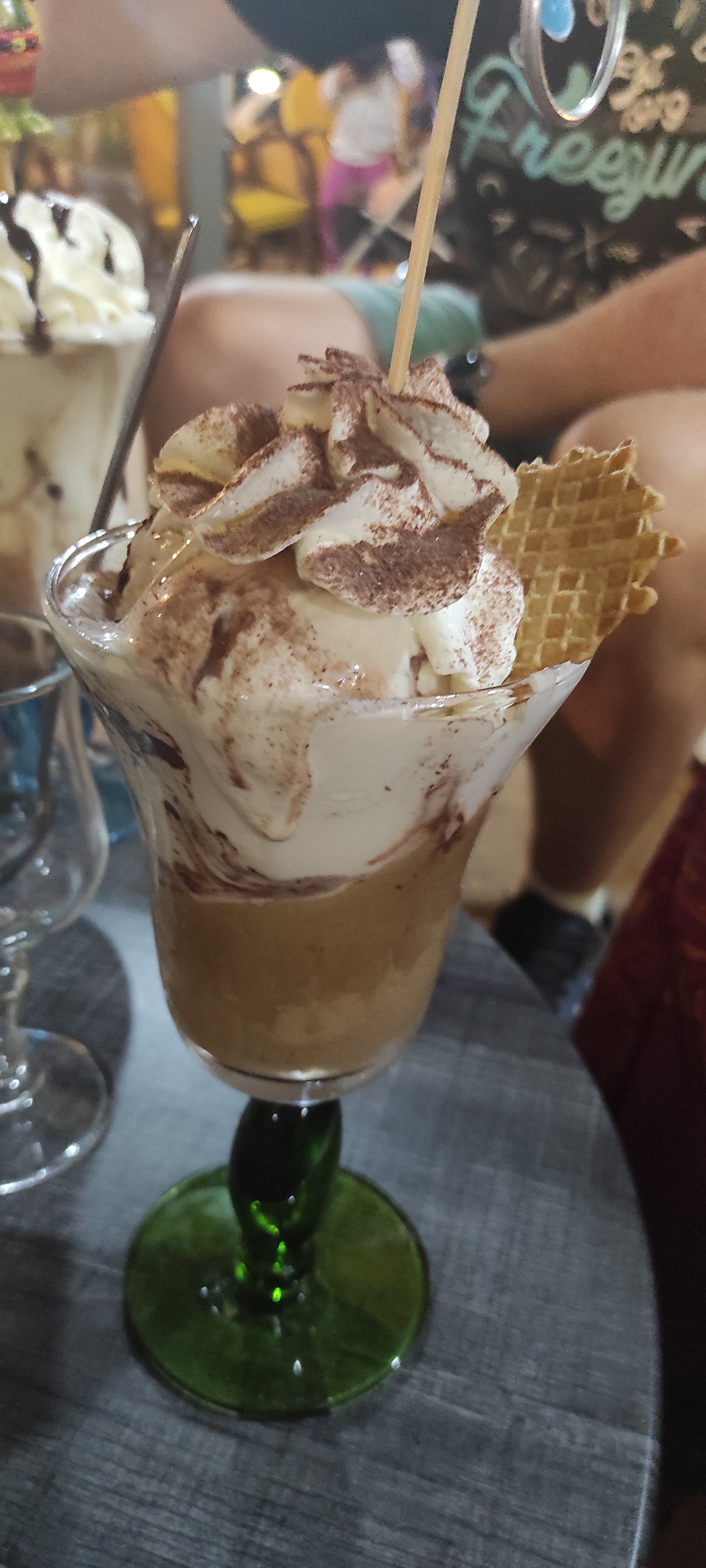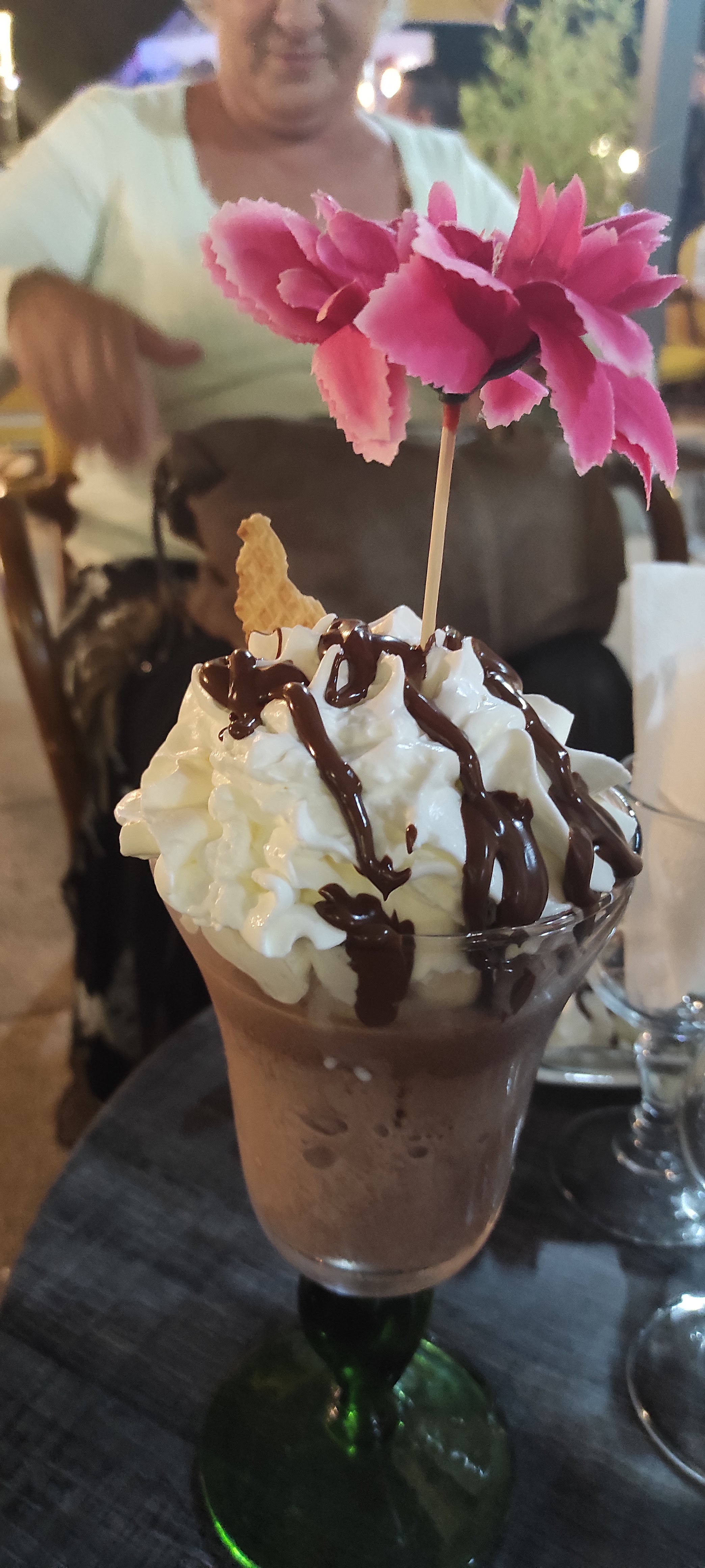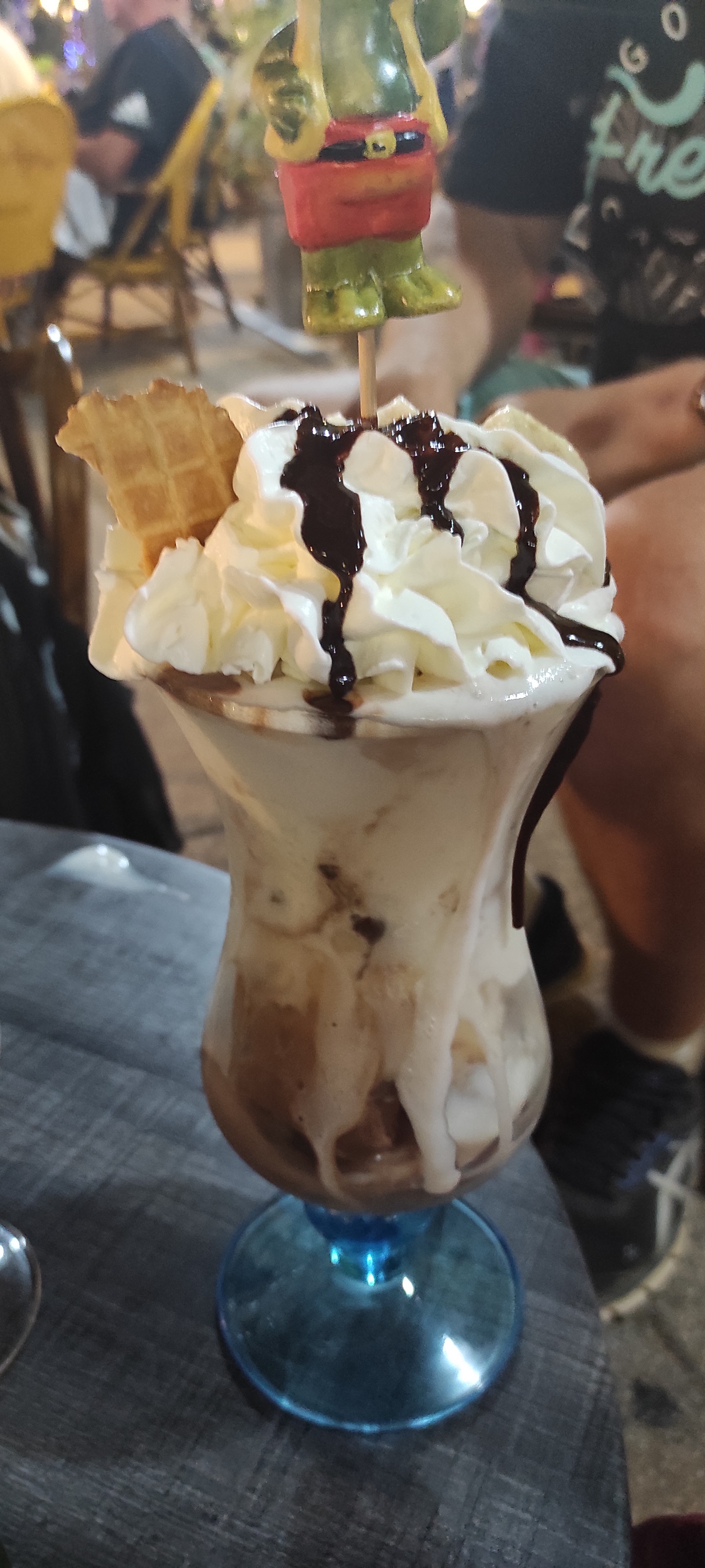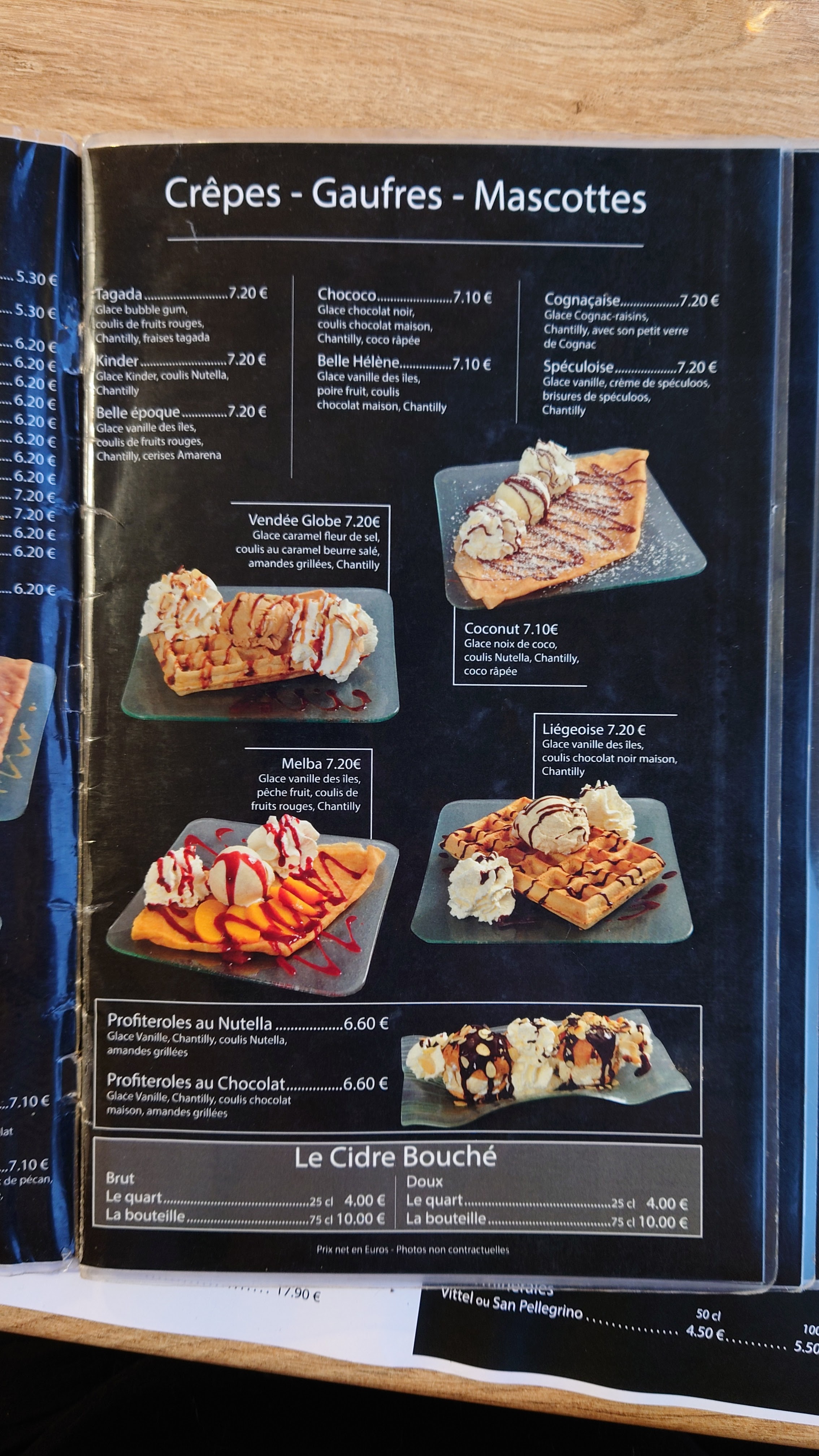 9€ pour un chocolat liégeois, enfin une boule de glace écrasée au fond d’une coupe, un peu de chantilly et une gaufrette qui n’était pas de première jeunesse, à fuir !!!!!!
