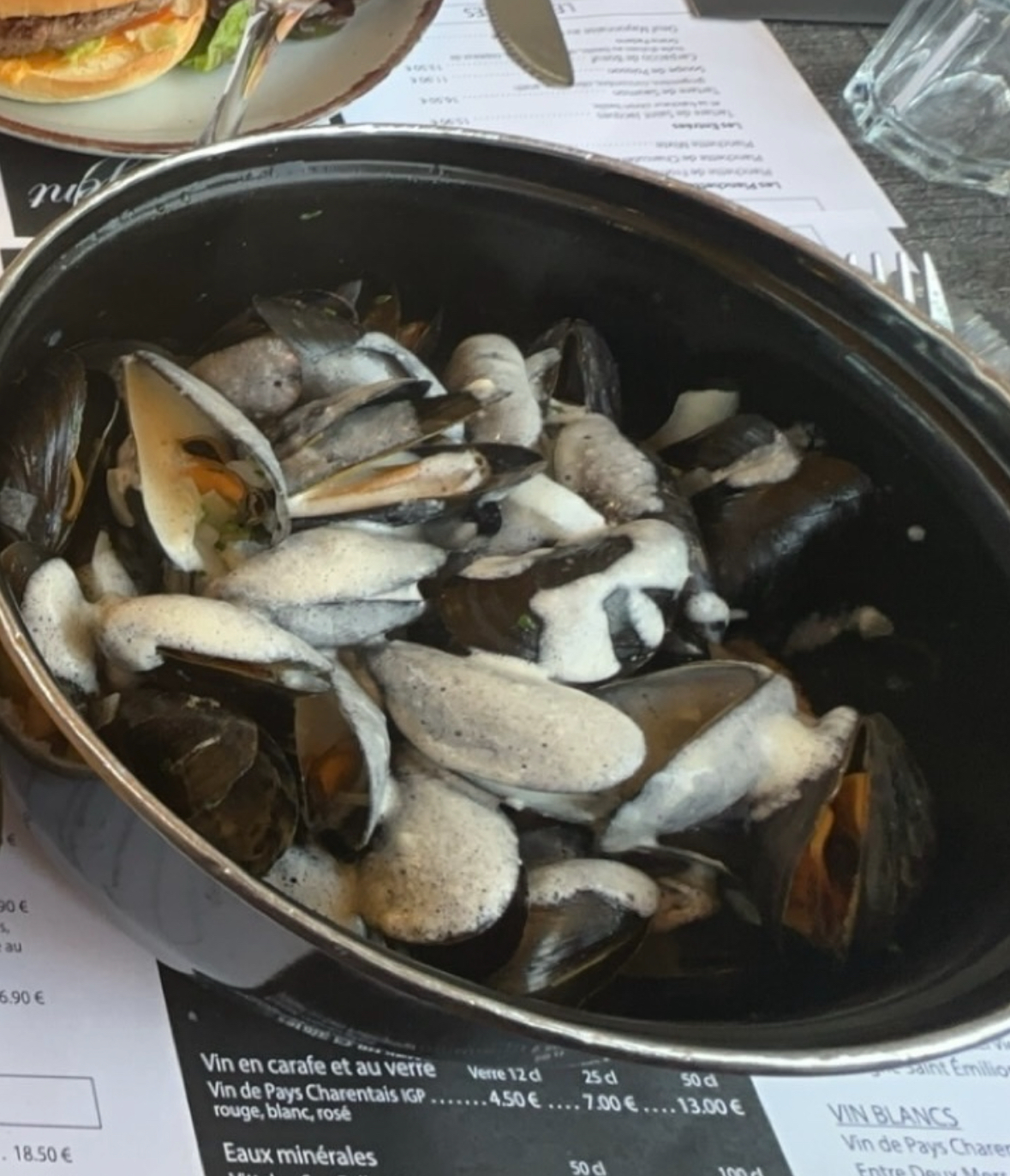 Nous avons pris des moules au roquefort qui n’avait aucun goût de roquefort. De plus il y avait clairement du persil, de la flotte et des oignons dans la sauce, des moules marinières? Où ils auraient ajouté une soit disant sauce roquefort? De plus la texture de la sauce était bizarre, mousseuse. Mes amis ont pris des burgers de bœuf commandé bleu et saignant. Ceux-ci ont été reçu avec une cuisson à point. Très déçu !