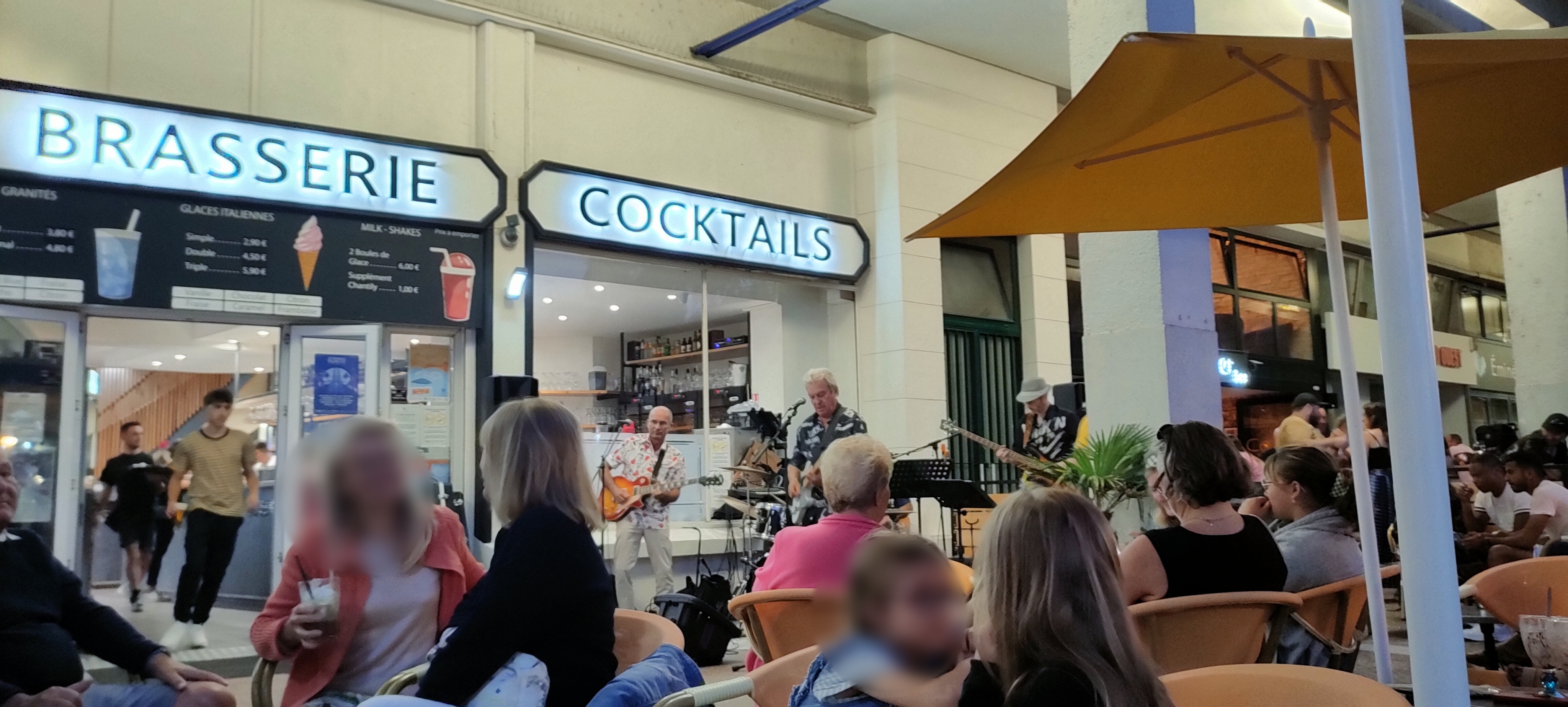 Bonne brasserie typique française, très large choix de cocktails, de coupes glacées. Convivial, et l’été animée par des concerts tous les soirs! Super surtout le groupe Marcus’ Band qui joue tous les classiques groovy des années 70 (Stevie, Benson, Toto…). Le personnel est accueillant et serviable malgré le peu d’effectif parfois par rapport à la clientèle. Les chaises en terrasse sont agréables mais le style un peu traditionnel. Je recommande, surtout en juillet-août pour les concerts.