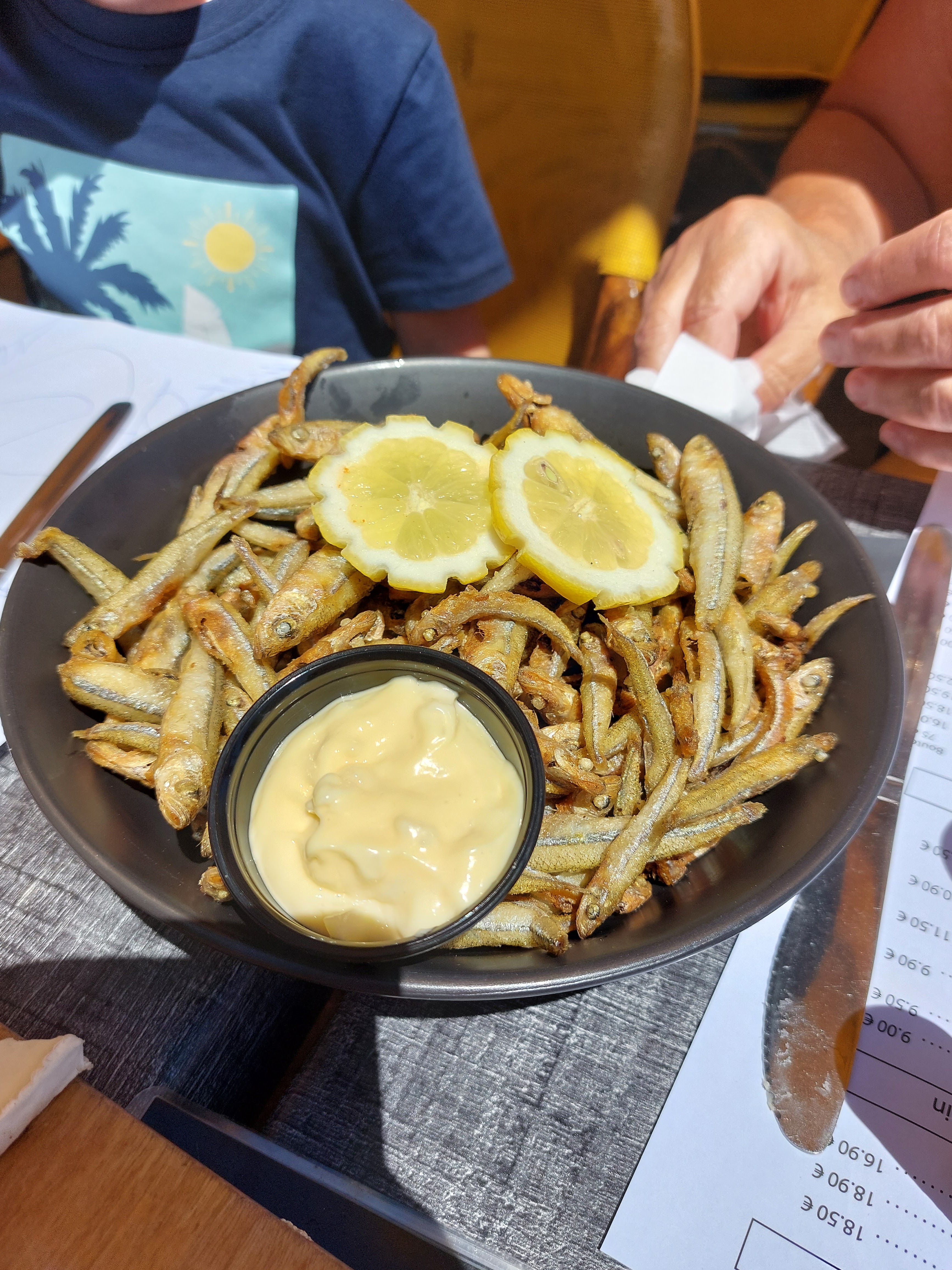 Tres bon accueil, jolie vue sur la mer de la terrasse, serveurs et serveuses tres agreables et malgre le monde ils ont prit le temps de venir voir si tout allait bien. Belle planchette de fromage , la sangria maison etait top .Moules tres bonnes, large choix de glaces. Je le recommande tres bon rapport qualité prix
