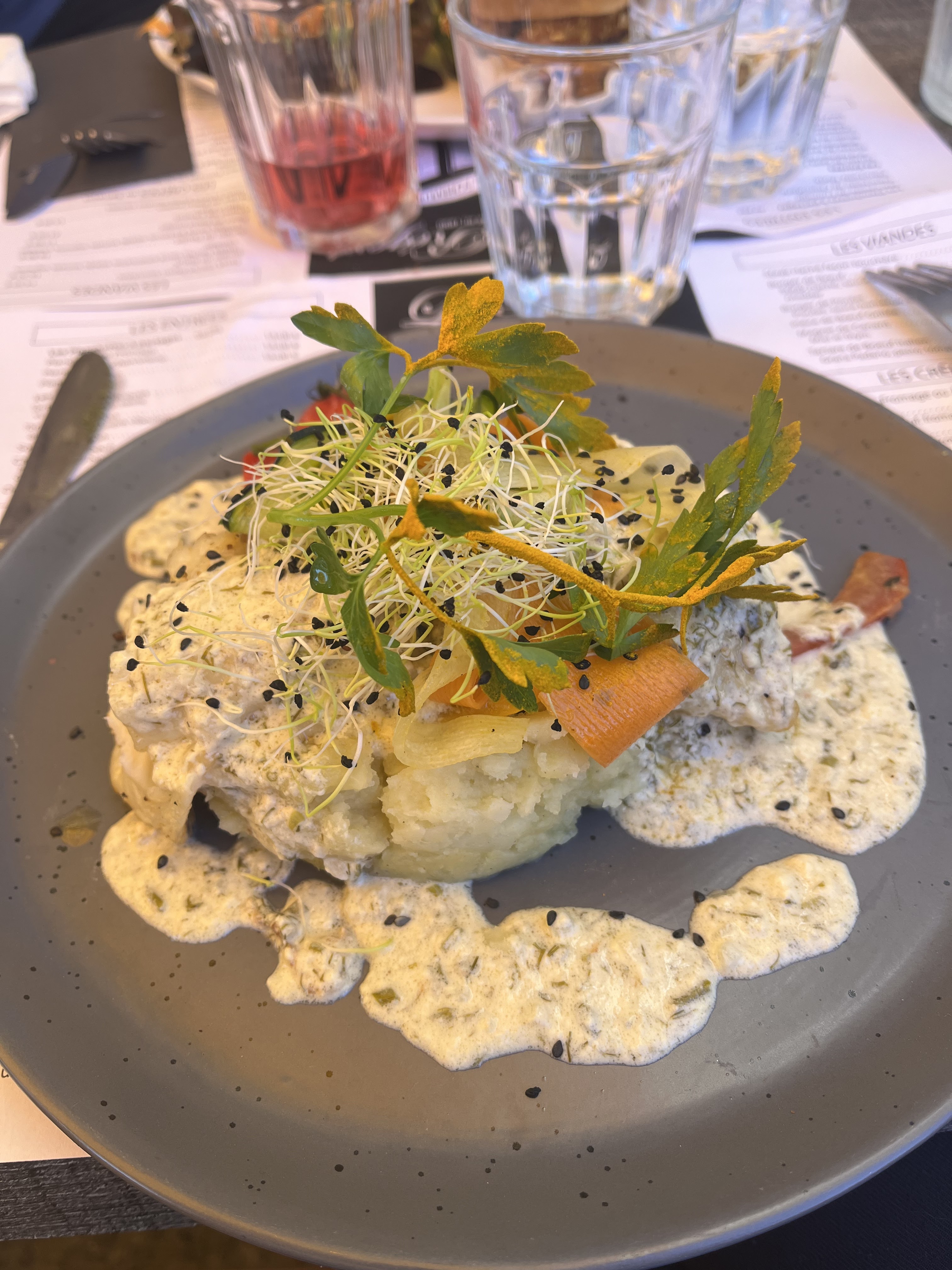 Repas très copieux,temps d’attente raisonnable,bon rapport qualité prix,dommage la table de derrière qui pensez être chez Cyril lignac et aui passez leur temps à critiquer,mais quand on a pas les moyens on ne critique pas tout le long du repas.