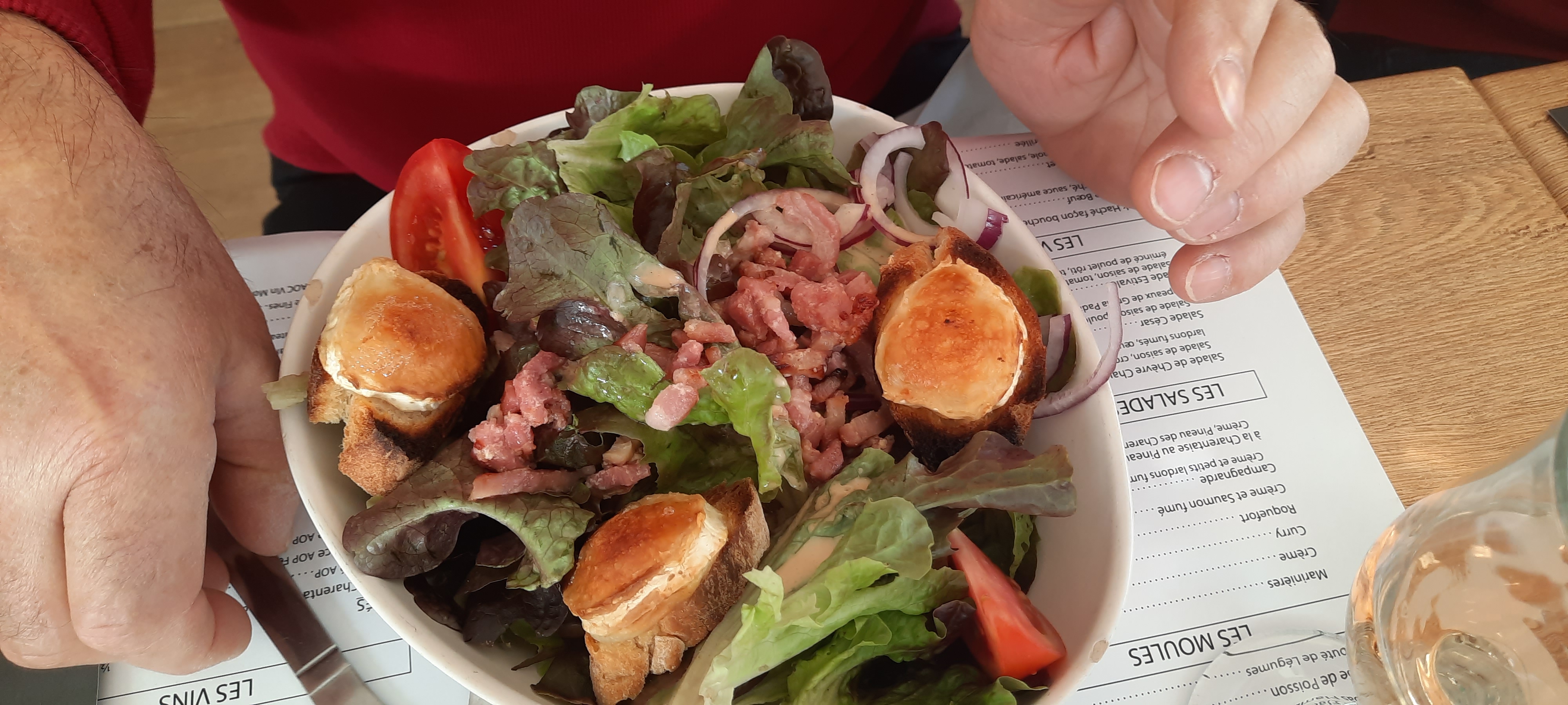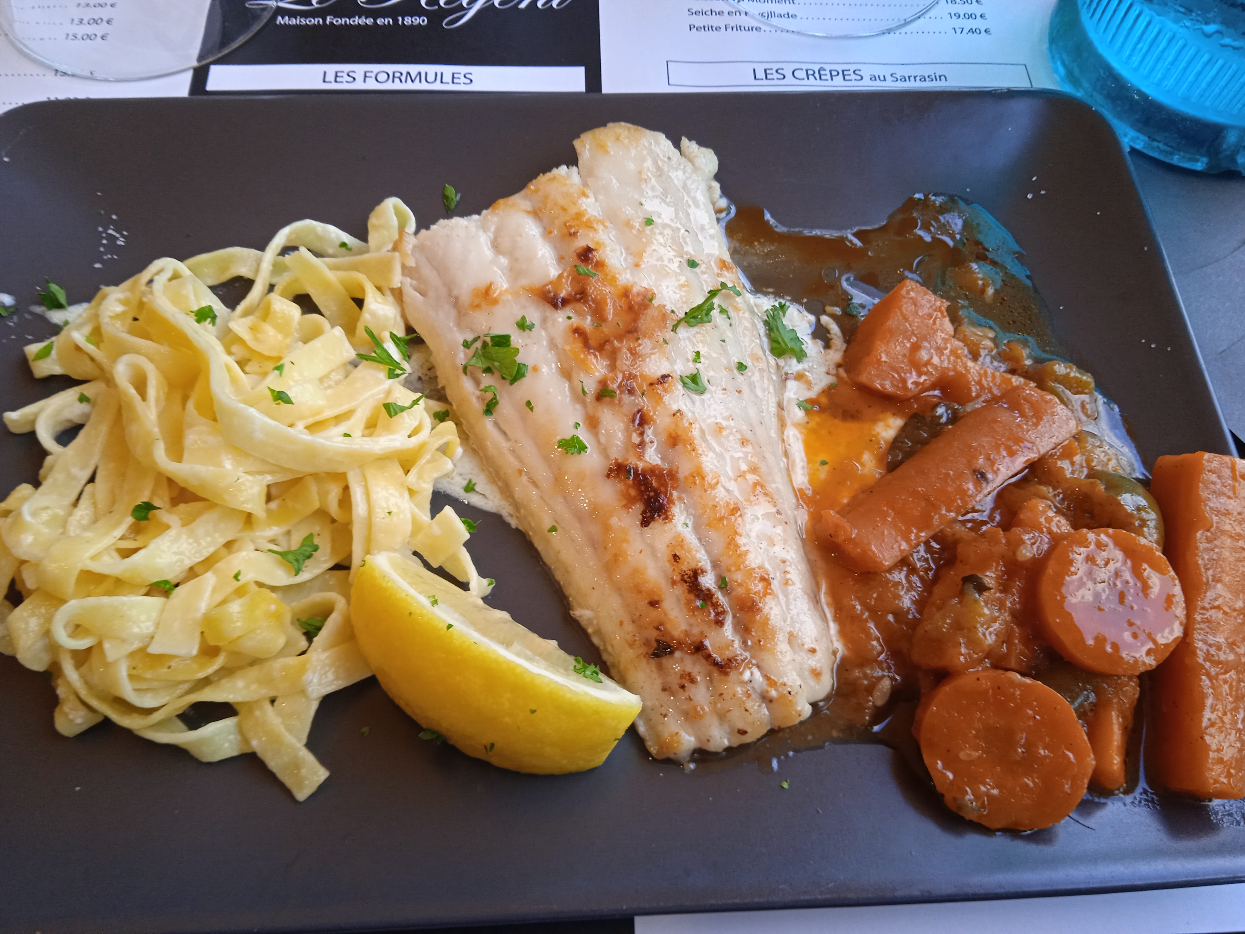 Alors, personnel très accueillant et disponible pour nous trouver une table à l'ombre en terrasse pour 8, merci beaucoup. Menu très correct et copieux. On n'a pas eu le sentiment de resto à touristes et les bleus ont gagné ce soir là.....