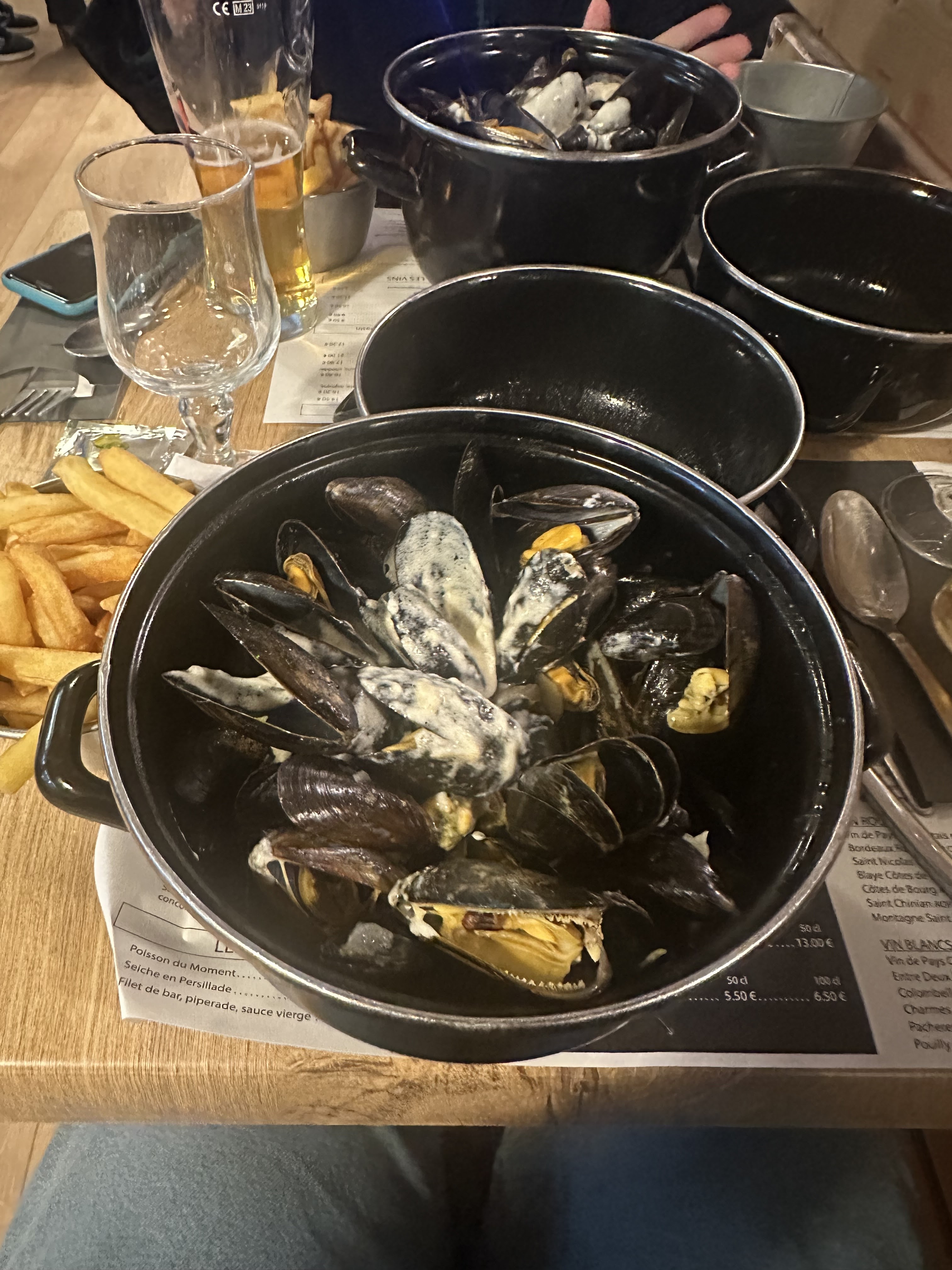 Un menu moules frites servi en demie portion, alors que le serveur en a distribué toute la soirée ( voir photos, nous petite gamelle, menu normal grande gamelle, grande frites, 1ère photo). Il a fallut que nous exprimions notre mécontentement quand, déjà à la qualité médiocre des moules (très petites et beaucoup fermées car non cuites), et sur notre interrogation sur la quantité. Erreur en cuisine d'après le serveur ! Mais lui cela ne l'a pas empêché de nous les servir. Une deuxième tournée de moules nous a été gracieusement servie, pas les frites ! Bref, très déçus car de surcroît vraiment pas bon.