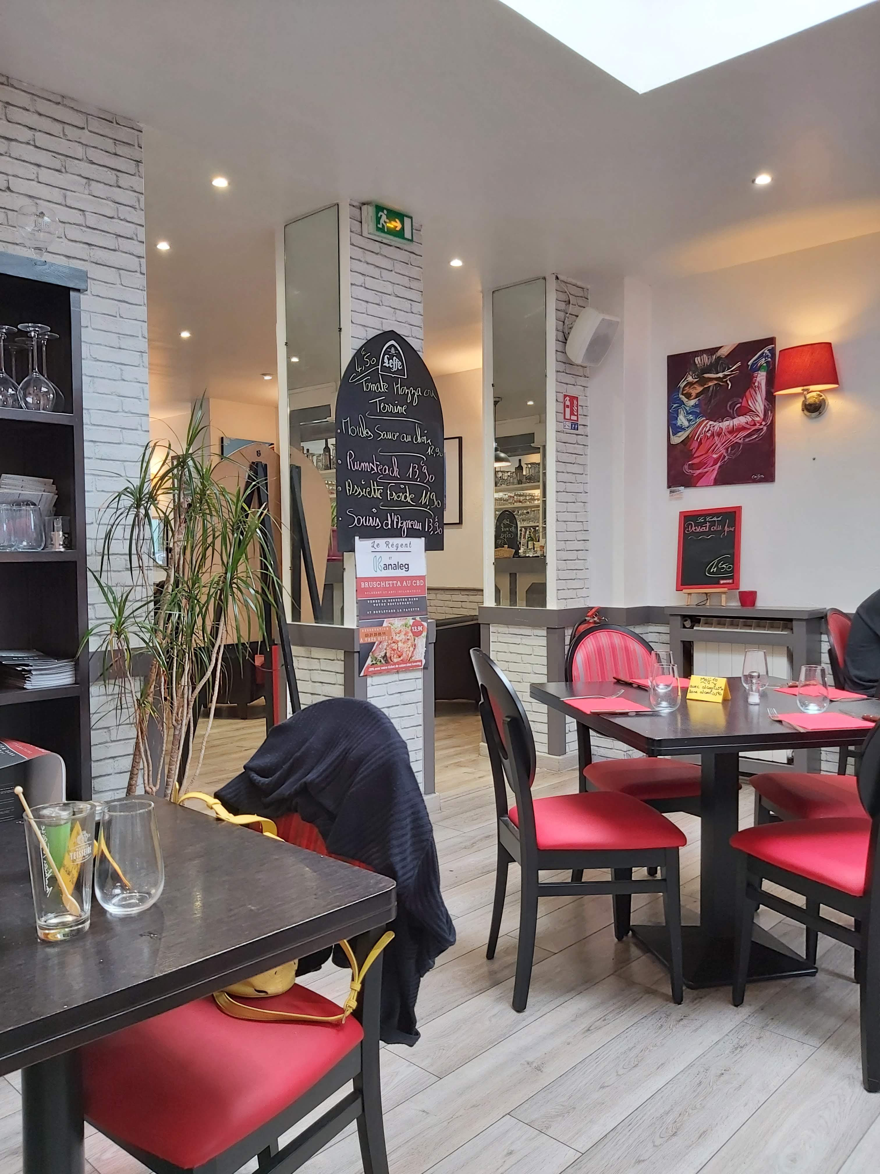 J'ai découvert ce jour le Café Brasserie Le Régent à Calais...et j'avoue que je suis très heureuse d'avoir téléphoné pour réserver une table pour mon époux et moi-même.. Déjà un très bon accueil au téléphone Par un jeune homme que je pouvais deviner bien sympathique Nous sommes arrivés dans cet endroit et avons apprécié comme je le presentai la gentillesse du serveur ainsi que celle du patron Nous avons été installés et on nous a demandé si nous prenions un apéritif...et bien évidemment comme je fetai mon anniversaire c'était oui... Nous avons donc choisi un Mojito et un Picon bière...et je peux vous dire qu'ils étaient dignes de ce nom...très bien fait avec le vrai goût...pas comme à certains endroits où on a plutôt l'impression que la.bouteille ne fait que passer au dessus des verres... ..il n'y avait plus de menthe le patron m'a demandé si cela me.genais j'ai dit non...trop envie de goûter à ce Mojito... Puis nous avons continué avec une souris d'agneau..hummm fondante à souhait avec des frites.. des flageolets et une petite salade verte accompagnée de morceaux de betteraves.. et un welsh espagnol lui aussiaccompagné de frites et petite salade......jolie découverte.. .et comme nous sommes gourmands...nous nous sommes laissés tenter par une coupe chti et des profiteroles Nous avons très bien mangé pour un prix très correct...toujours aux petits soins pour savoir si rien ne manque mais toujours très discrets... Encore une fois...Chapeau.. Nous nous sommes régalés...ça été un beau repas d'anniversaire pour moi et j'en garderai un très bon souvenir... Nous reviendrons à n'en pas.douter dés que nous repasserons à Calais.. . J'ai oublié de mettre à l'honneur la.cuisinière ou le cuisinier.. .Bravo pour la qualité..la.présentation de vos plats et l'accompagnement de ceux ci...aucune.fausse note... Vous pouvez y aller les yeux fermés... Au plaisir de vous retrouver Valerie Jean-Paul