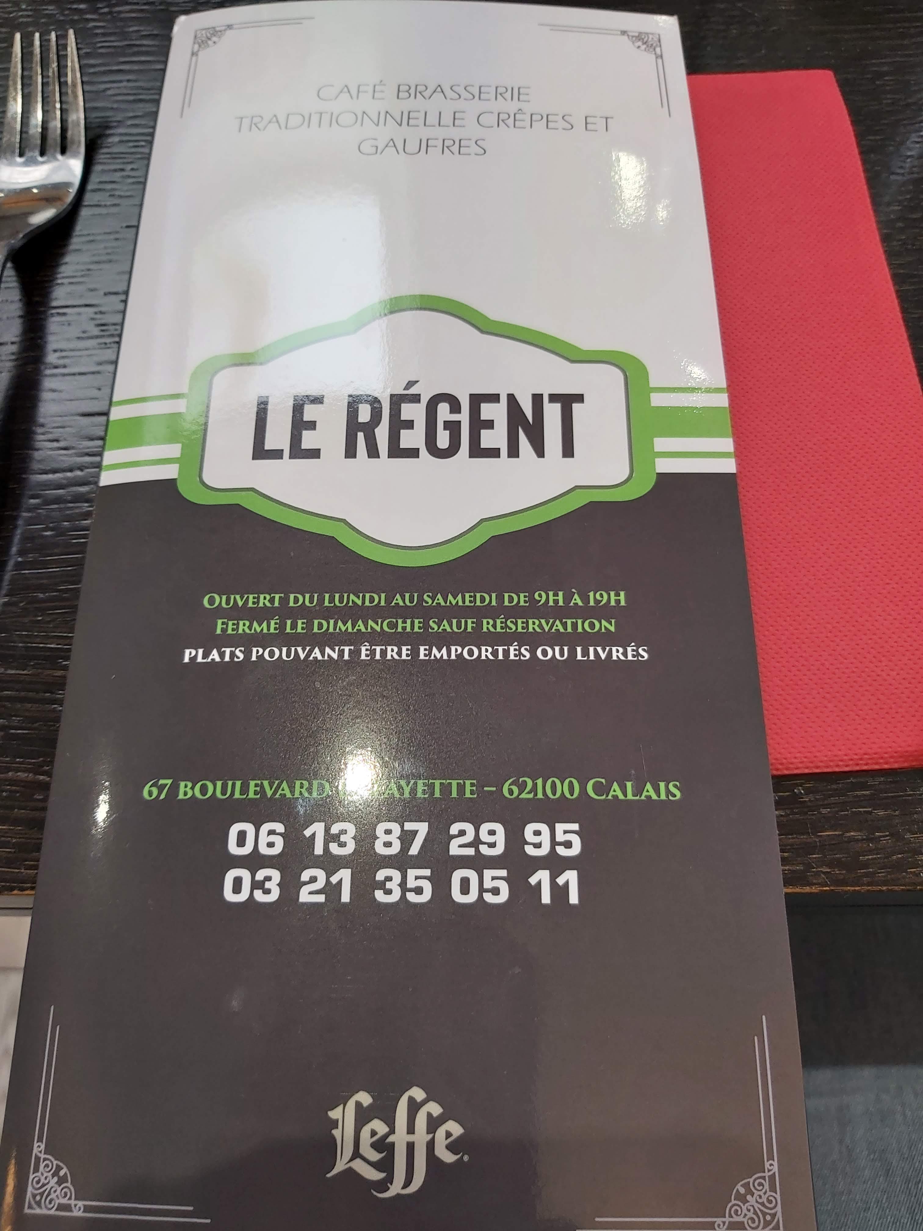 Je connais Calais mais ne connaissais pas le Régent. J'y suis arrivé par hasard suite à un pépin avec ma voiture qui a été immobilisée quelques heures pour réparation. Si vous aimez la vraie brasserie française avec ses clients aussi chaleureux que les patrons, si vous aimez manger bon et bien à un prix ridiculement bas et dans un cadre parfait (le Pas-de-Calais ne doit pas sa réputation à son hygiène notamment côté toilettes, mais au Régent, tout est vraiment impeccable), alors vous ferez comme moi, vous y retournerez.