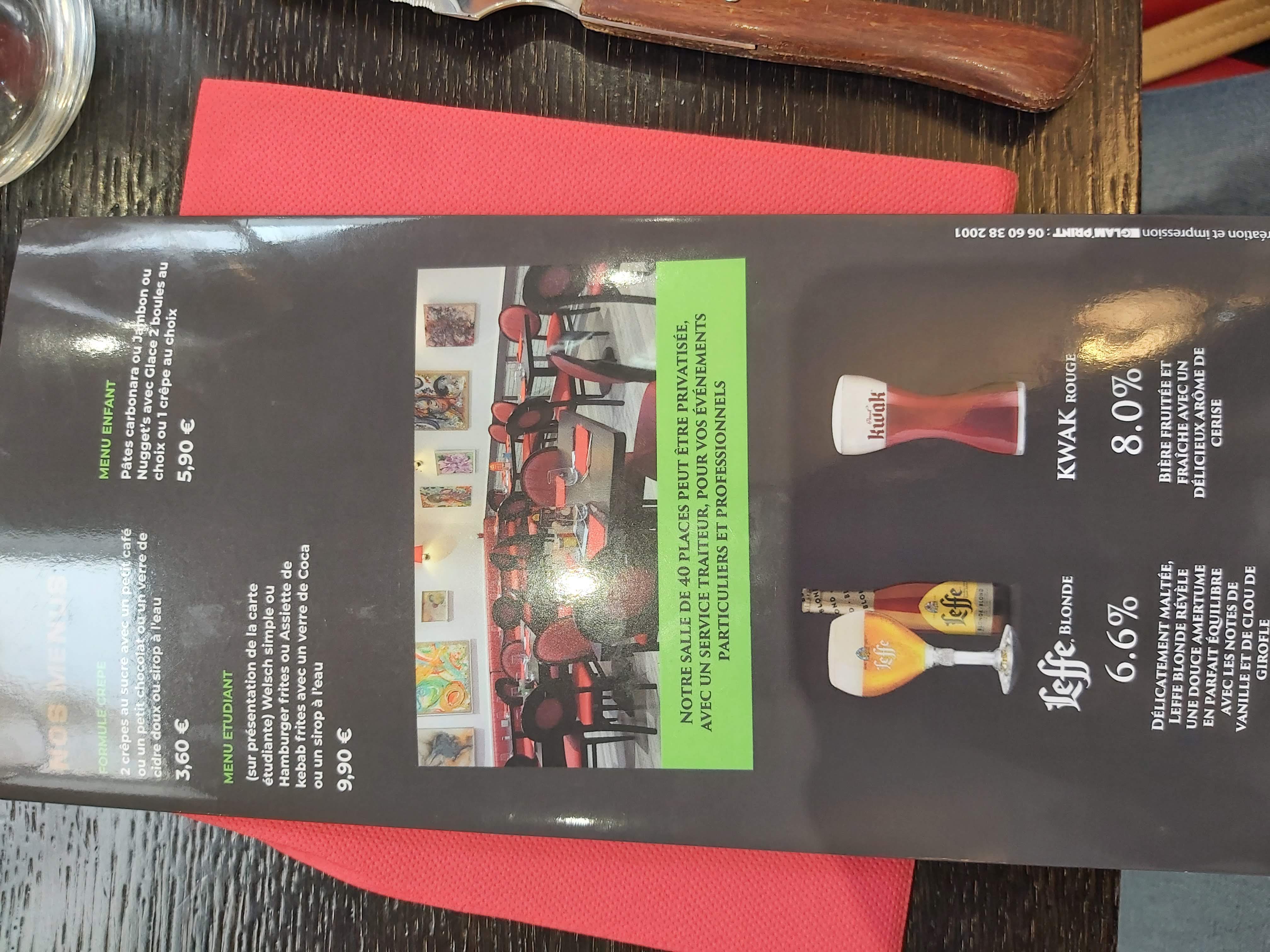Toujours un accueil chaleureux, Menus diversifiés. J'ai eu la chance de découvrir et de déguster un Welsh Burger au boursin! Un vrai délice 😋 Bon qualité-prix . Je conseille vivement, n'hésitez pas à venir faire plaisir à vos papilles.