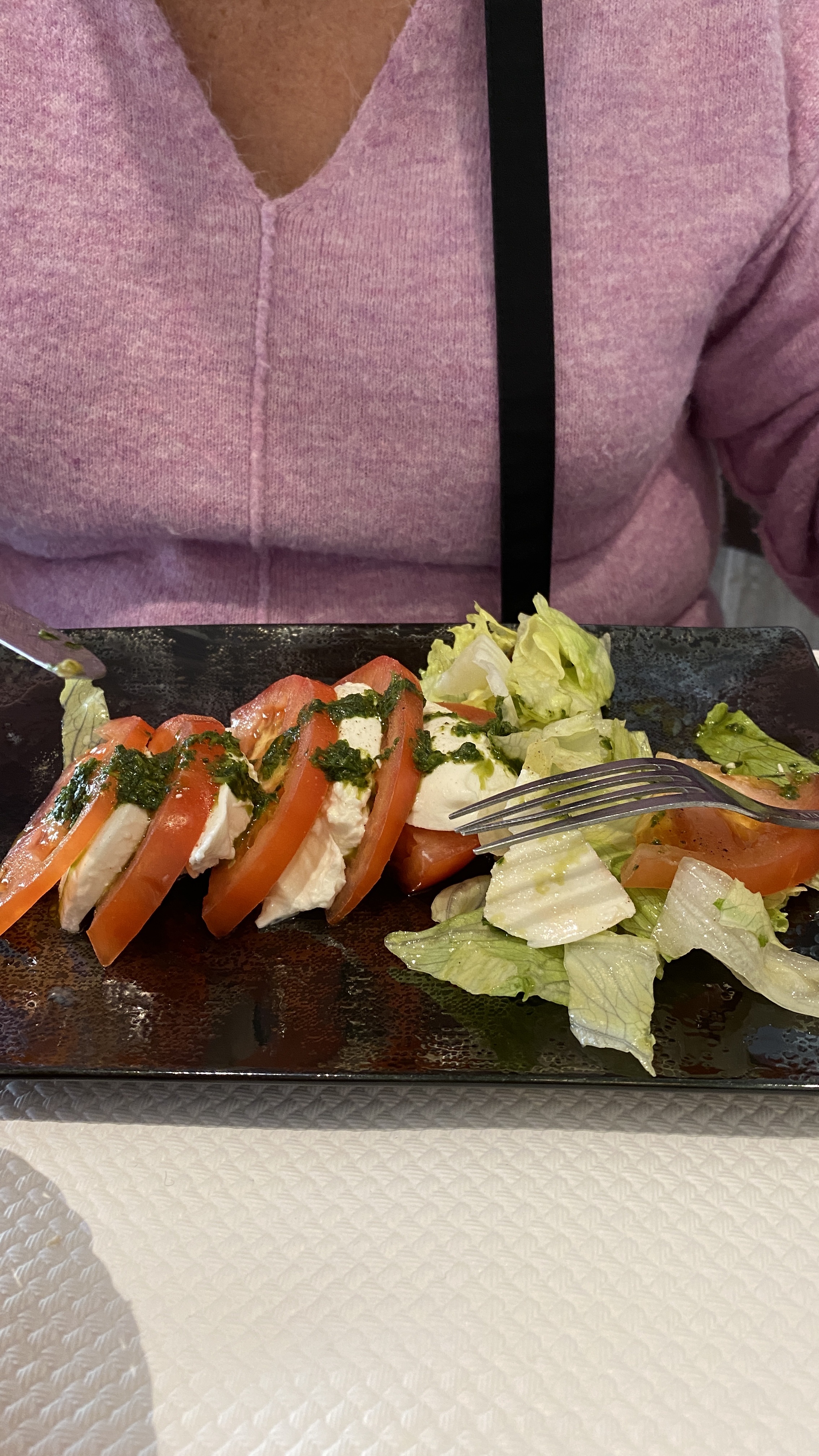 Bonnes salades composées mais dessert pas top Musique très forte, impossible de s’entendre Je demande à baisser un peu mais au bout d’un moment, il remet le son très fort. Il a croisé mon regard et est retourné baisser . Il a pensé que je ne m’en apercevrai pas ???