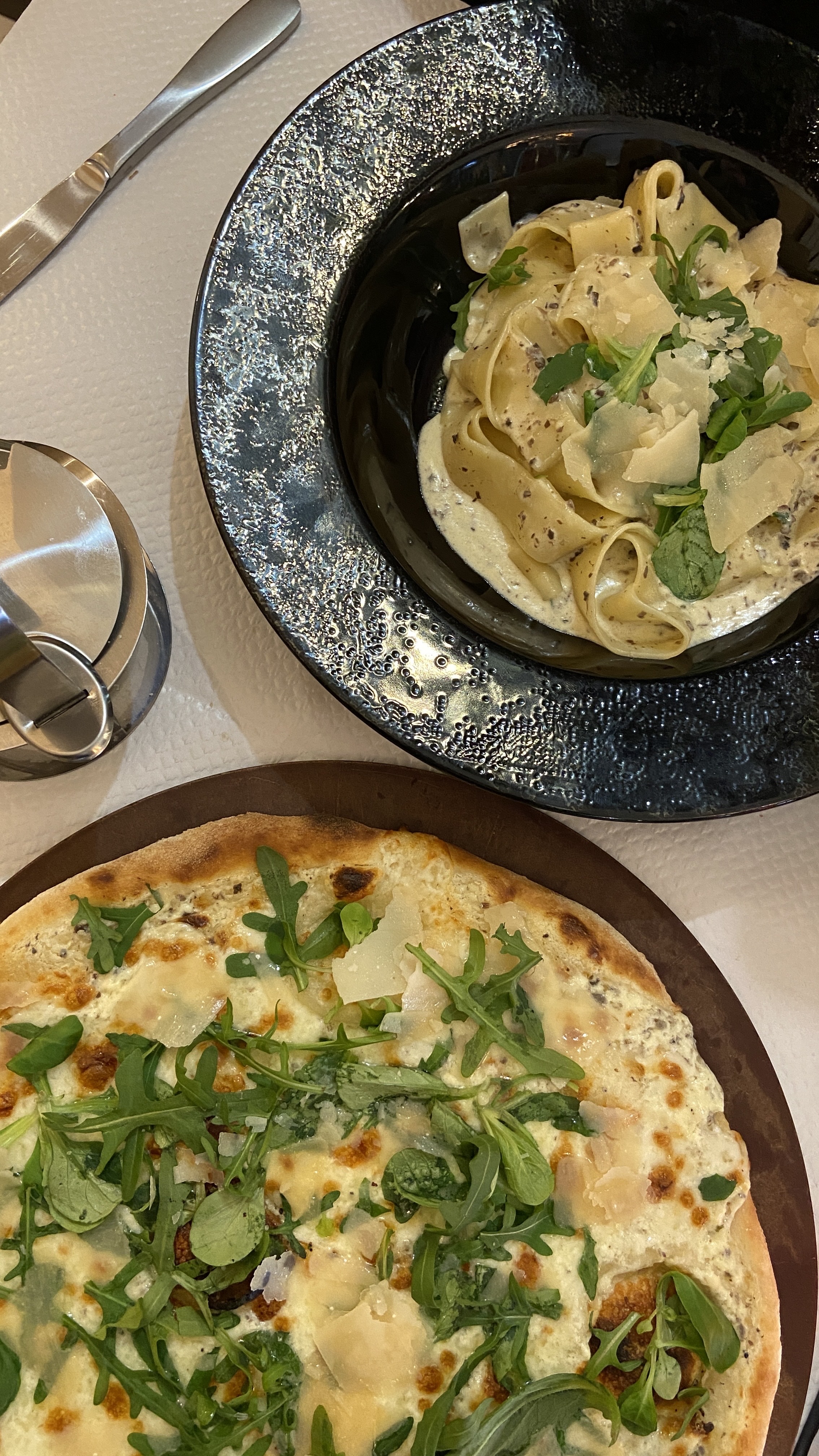 Bon repas ! J'ai pris la soupe à l'oignon en entrée et la pizza truffe/fromage en plat principal. Le service n'était pas très sympa et ne disait presque rien. De plus, l’ambiance n’était pas très agréable, car tout était plutôt soigné et calme. Je recommande la nourriture elle-même!