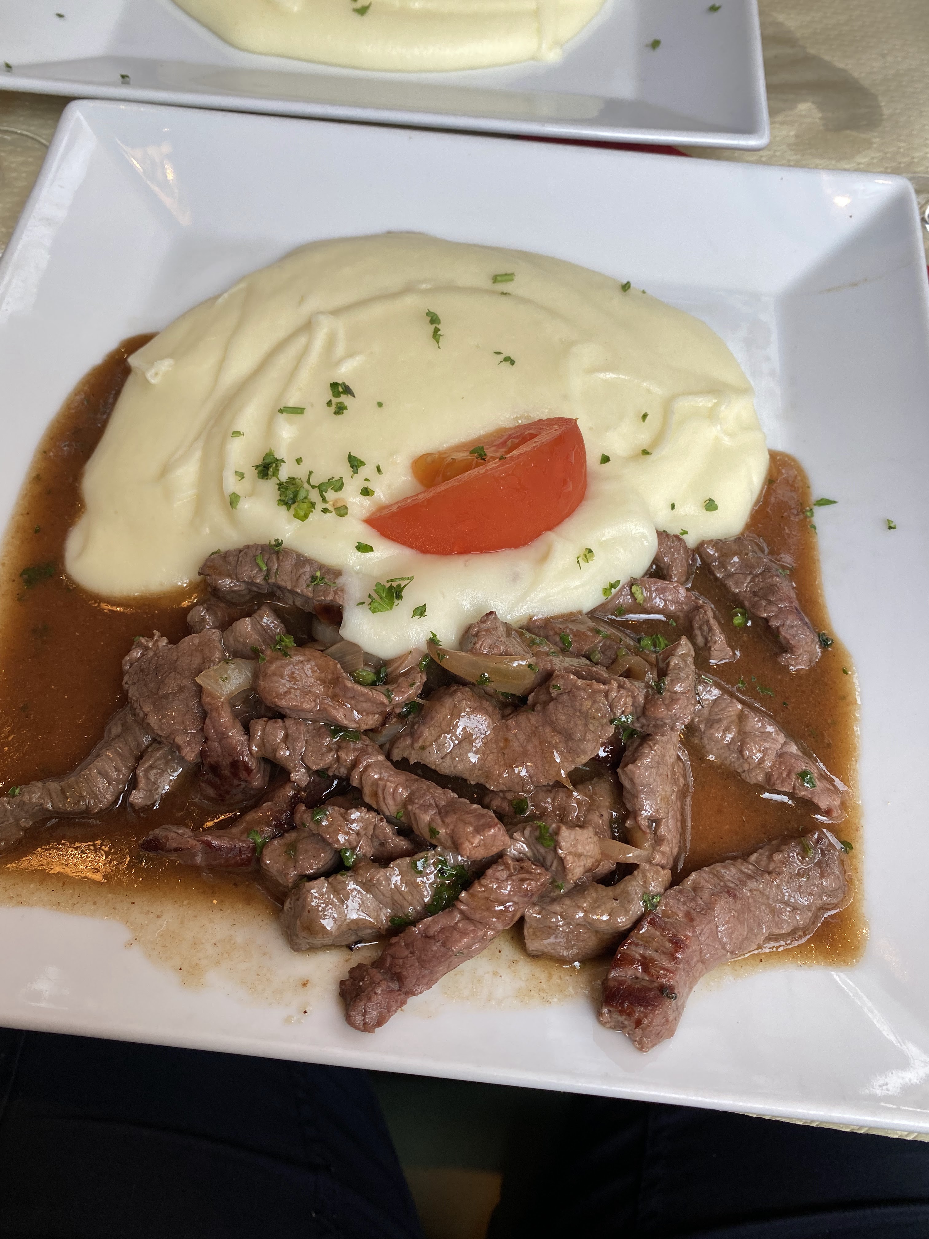 Steak incroyable avec sauce à l'oignon et gentille dame avec un très bon comportement 😏 Transmission