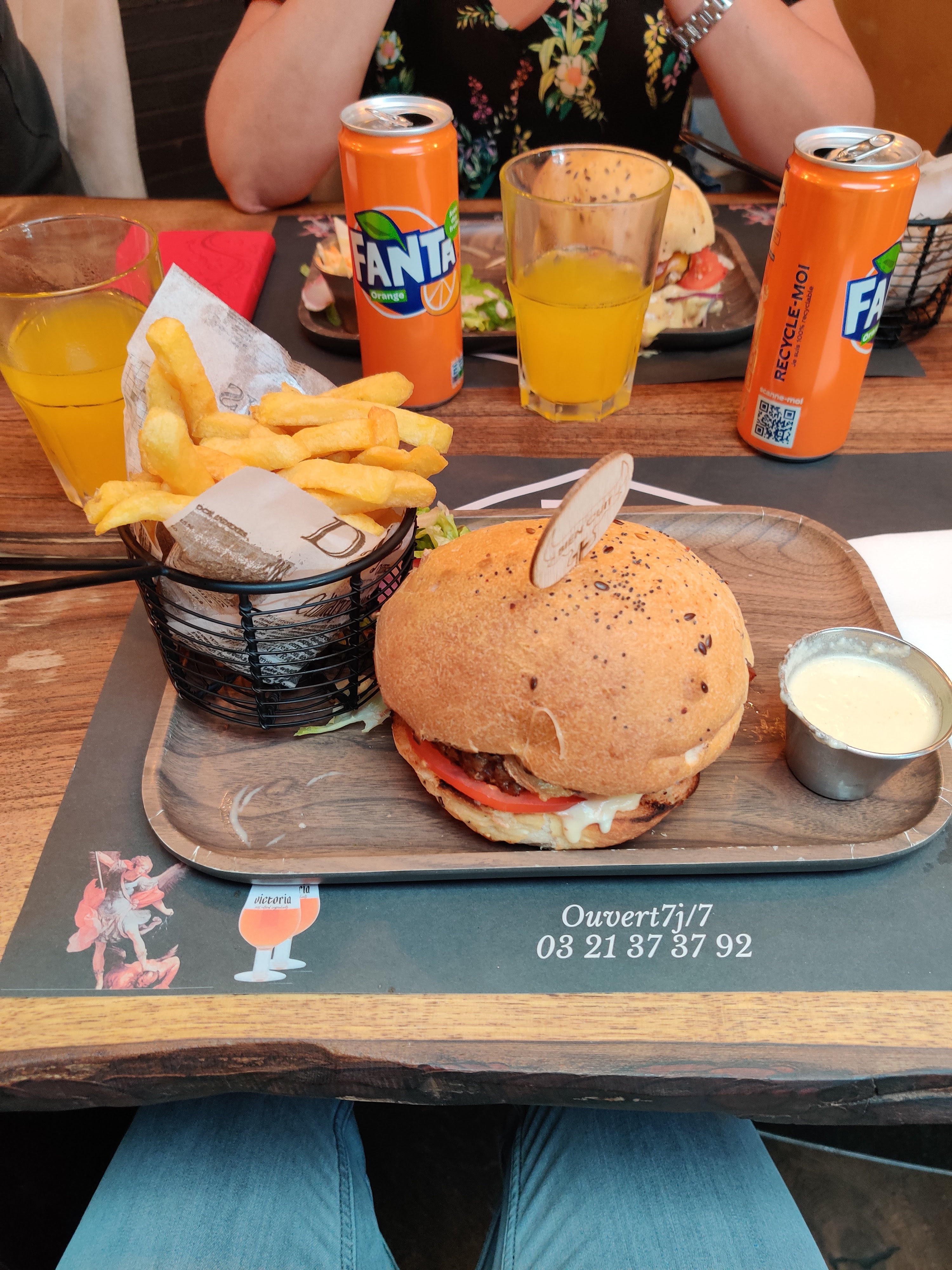 Les frites étaient tièdes, le chti Burger dont on ne sent pas le maroilles, les plats ont été très long à arriver et si vous êtes placés à proximité de la porte le froid entre à chaque arrivée de client. Je déconseille