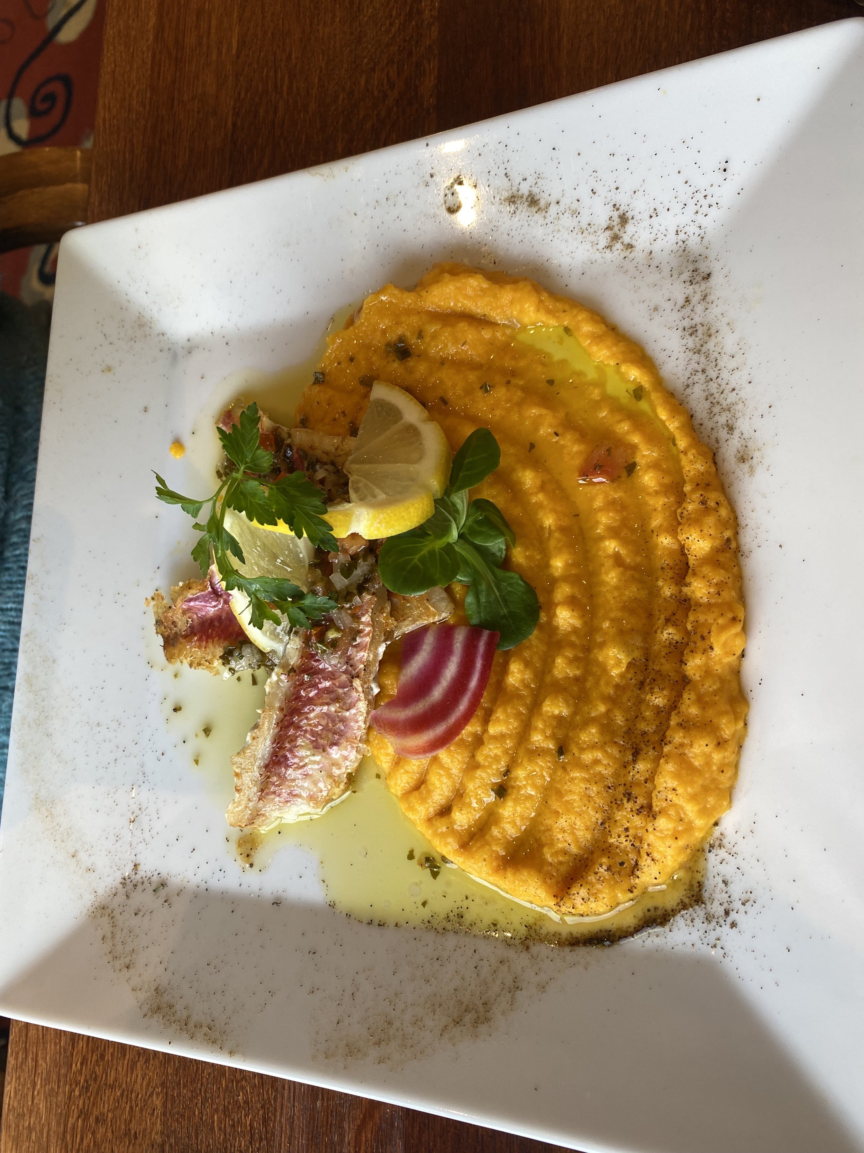Bonjour, restaurant non adapté pour les personnes qui désirent manger rapidement puisque nous avons attendu plusieurs fois plus de 2h!! Ils ne vous laissent pas le plaisir de mettre vos croûtons vous même dans votre soupe de poisson qui est arrivée froide!! L'écrasé de pomme de terre s'est transformé en mousseline. A éviter sauf si vous avez vraiment faim et que vous n'êtes pas pressés.