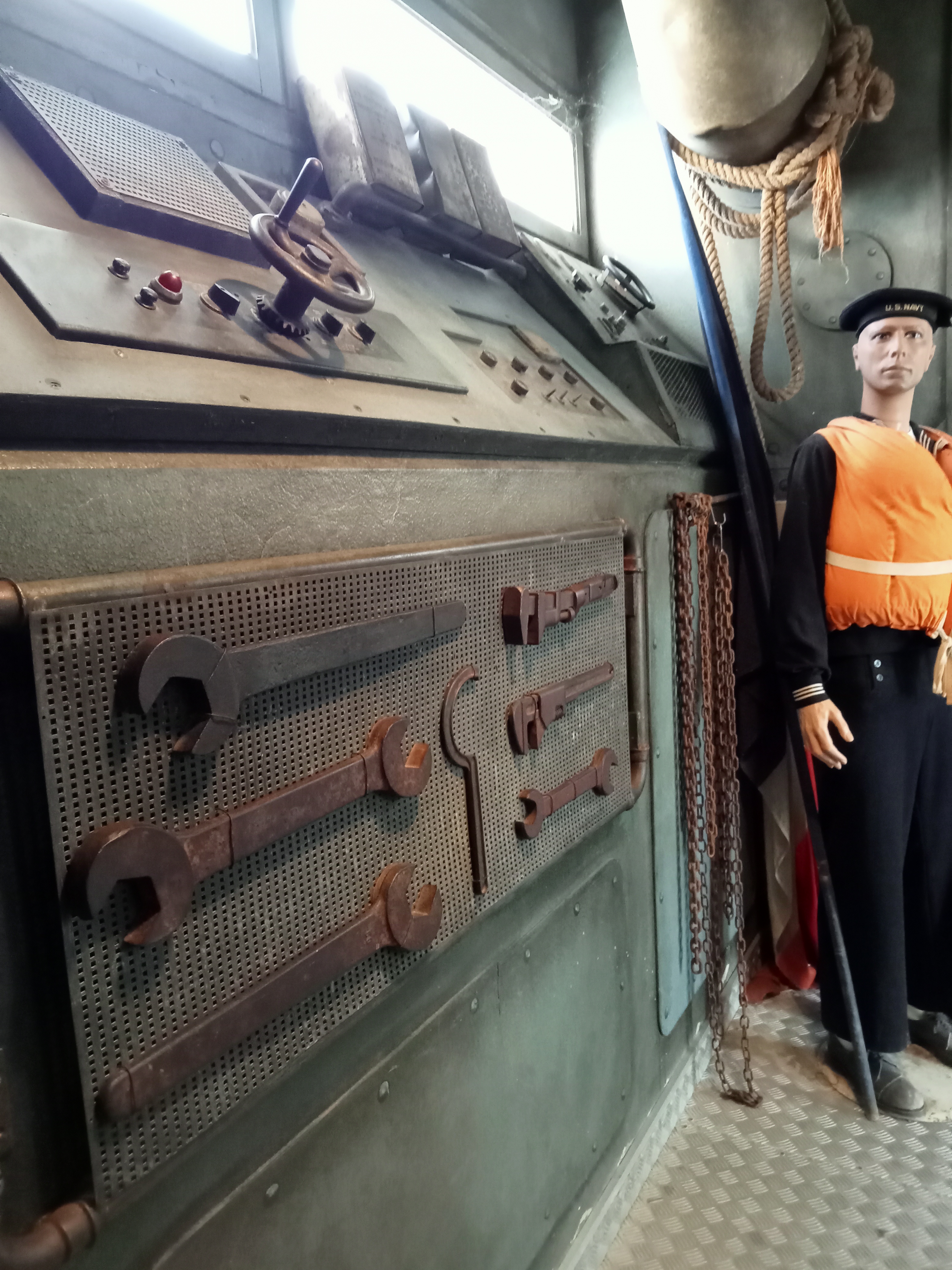 Endroit avec une super déco, liée au débarquement... La porte des toilettes est très rigolote, comme dans les sous marin... Service efficace, même avec de l'affluence... Dégustation de glace et boisson pour le goûter...