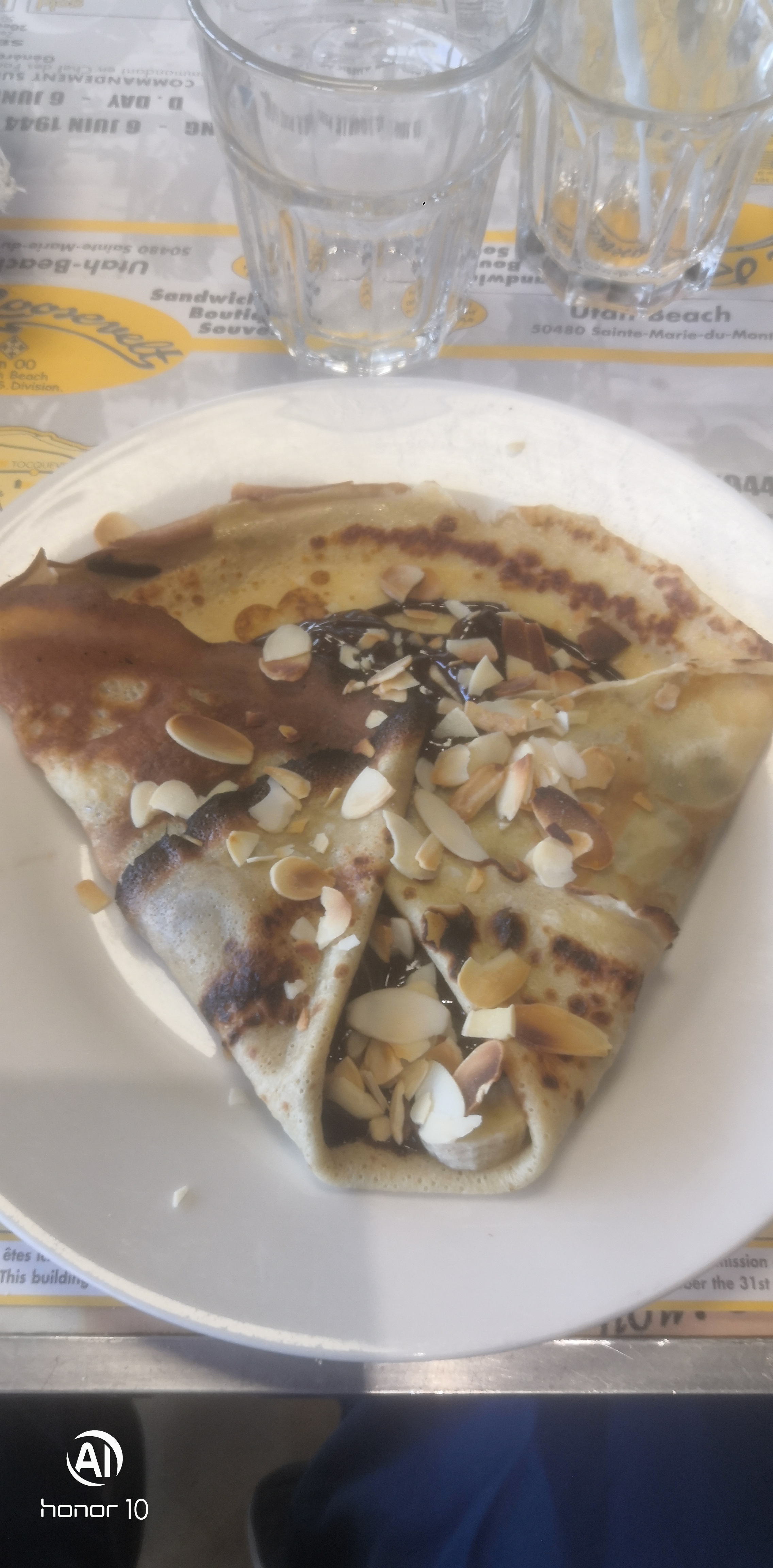 Personnel adorable , prix abordables et servi rapidement. Terrasse extérieure ombragée, Juste à côté du musée d’Utah beach. Glaces,crêpes ou pour manger avant 15h