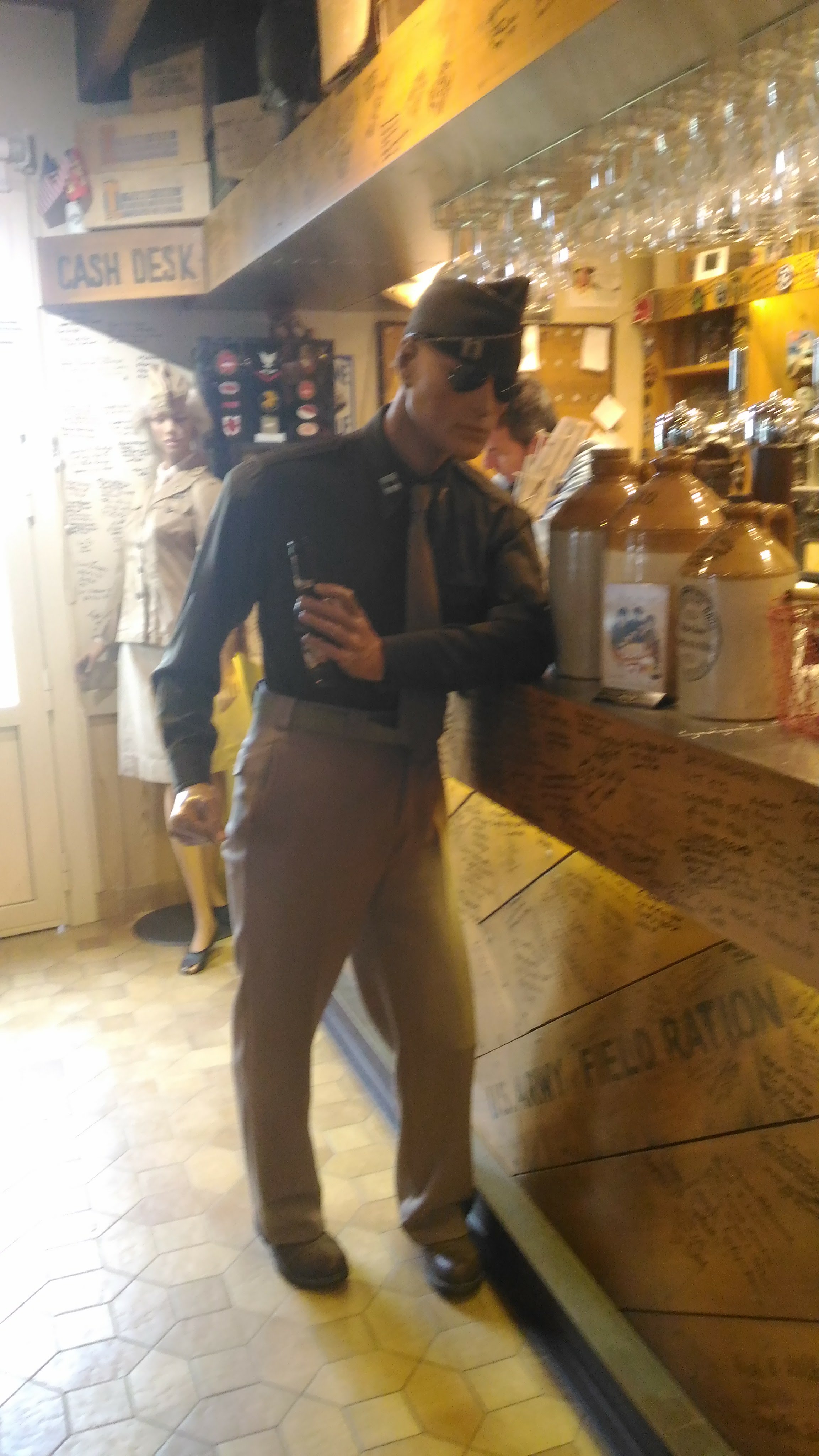 Une brasserie qui vaut le détour surtout pour la déco avec plein d'objets qui rappellent l'époque du débarquement. Personnel plutôt sympathique.