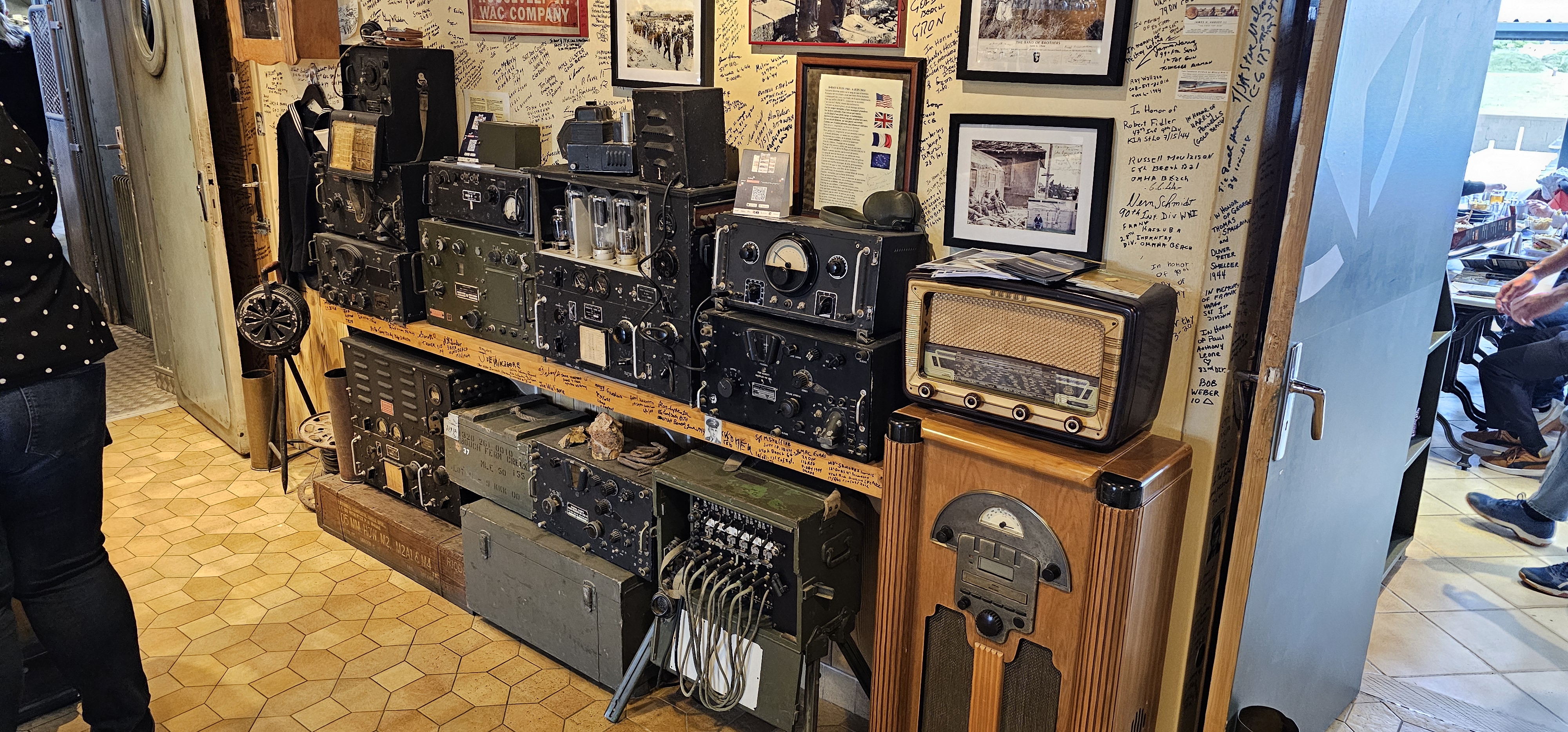 J'ai eu un excellent café américain pour 5 euros. Bien sûr, c'était cher, mais c'est la seule option et un centre touristique. Le service aussi sympa. Le lieu est historique. Équipement radio d'origine et possède un bunker à l'arrière qui était utilisé comme centre de communication pendant l'invasion de la Normandie. Bonne boutique de cadeaux aussi.