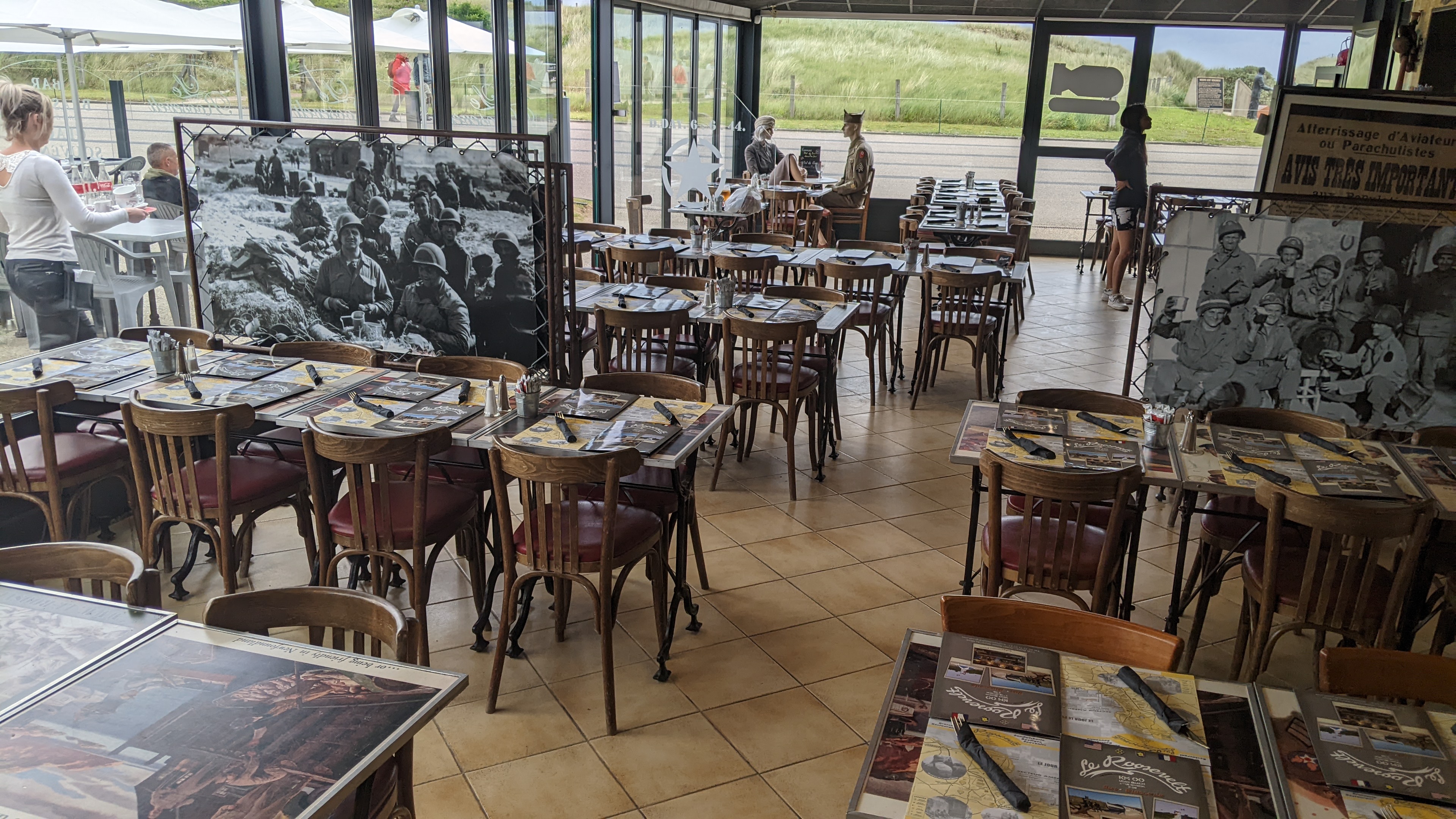 Très beau décor pour ce restaurant qui offre l’avantage de permettre de se restaurer sans quitter le site d’Utah beach. La cuisine en revanche n’est pas exceptionnelle, le service est efficace mais pas toujours aimable, le rapport qualité prix n’est pas maximal. Ça reste correct mais cher, par contre niveau déco l’endroit vaut le détour