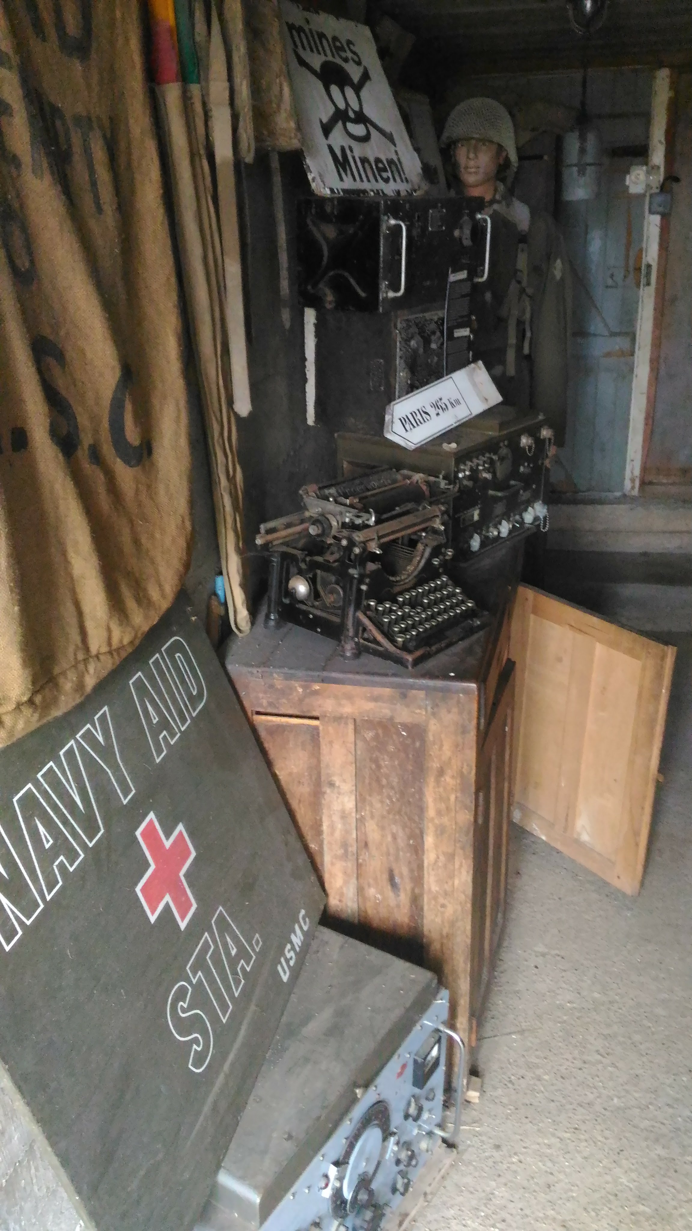 En vacances en famille nous avions réservé une table. L' accueil a été très agréable. Le personnel très souriant. Bravo aux serveuses, qui malgré le monde, ont géré la salle de manière très efficace. Les boissons sont servis rapidement et les plats tous en même temps. Nous avons pris des burgers et ils étaient très bon et la cuisson maîtrisée. Le décors est évidemment très sympa ! Et en prime nous avons demandé à visiter le blockhaus et un des membres du personnel a gentiment proposé de nous faire la visite et les commentaires. En clair, même si ça peut paraître attrape touristes et bien c'est à faire. Juste à côté du musée et de la plage avec quelques véhicules et autres vestiges de la guerre qui sont tout autour.