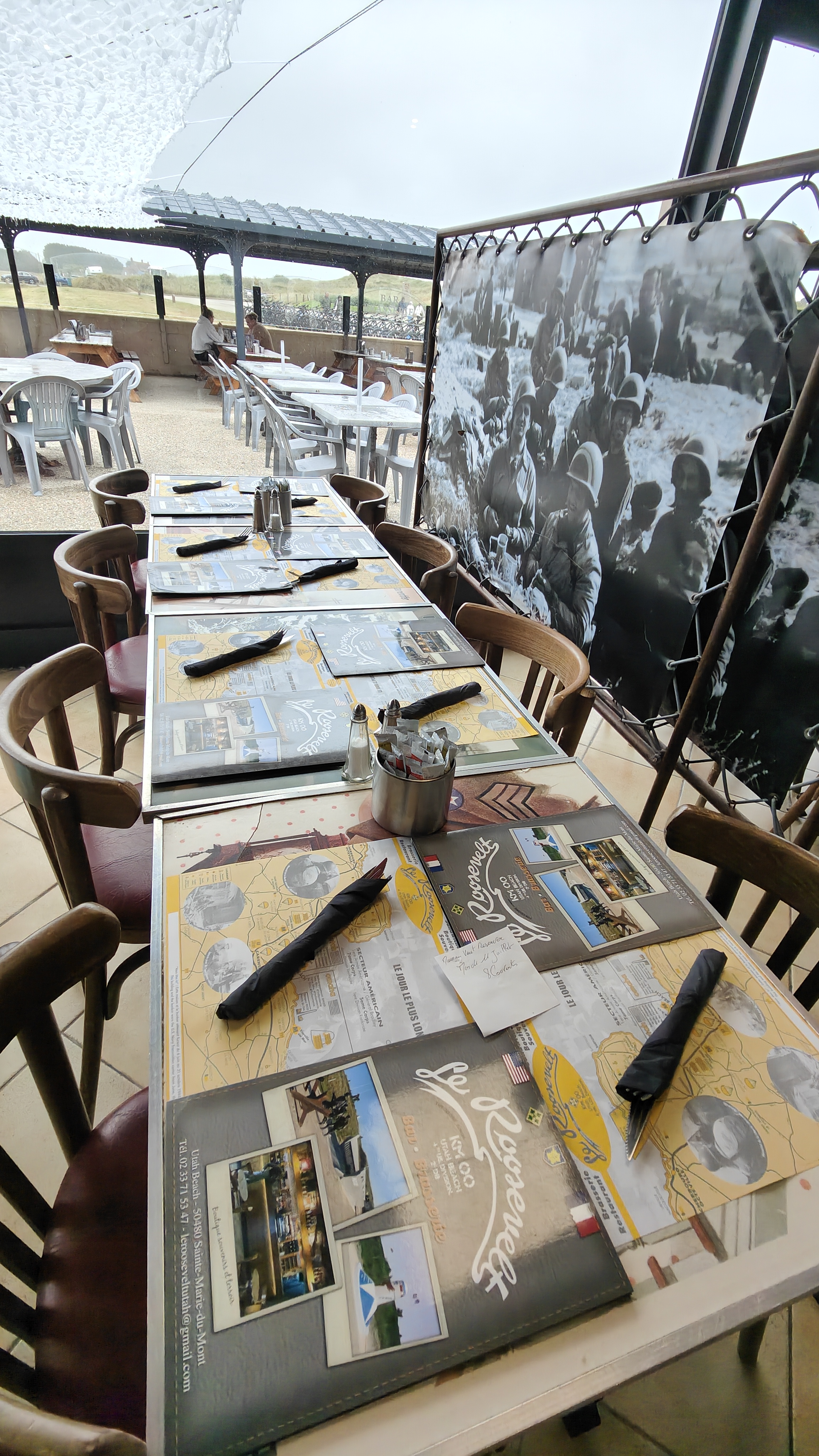 Le cadre est très sympathique avec vue sur les monuments aux abords de utah beach. Que ce soit le repas ou le service sont parfait, personnel très accueillant.