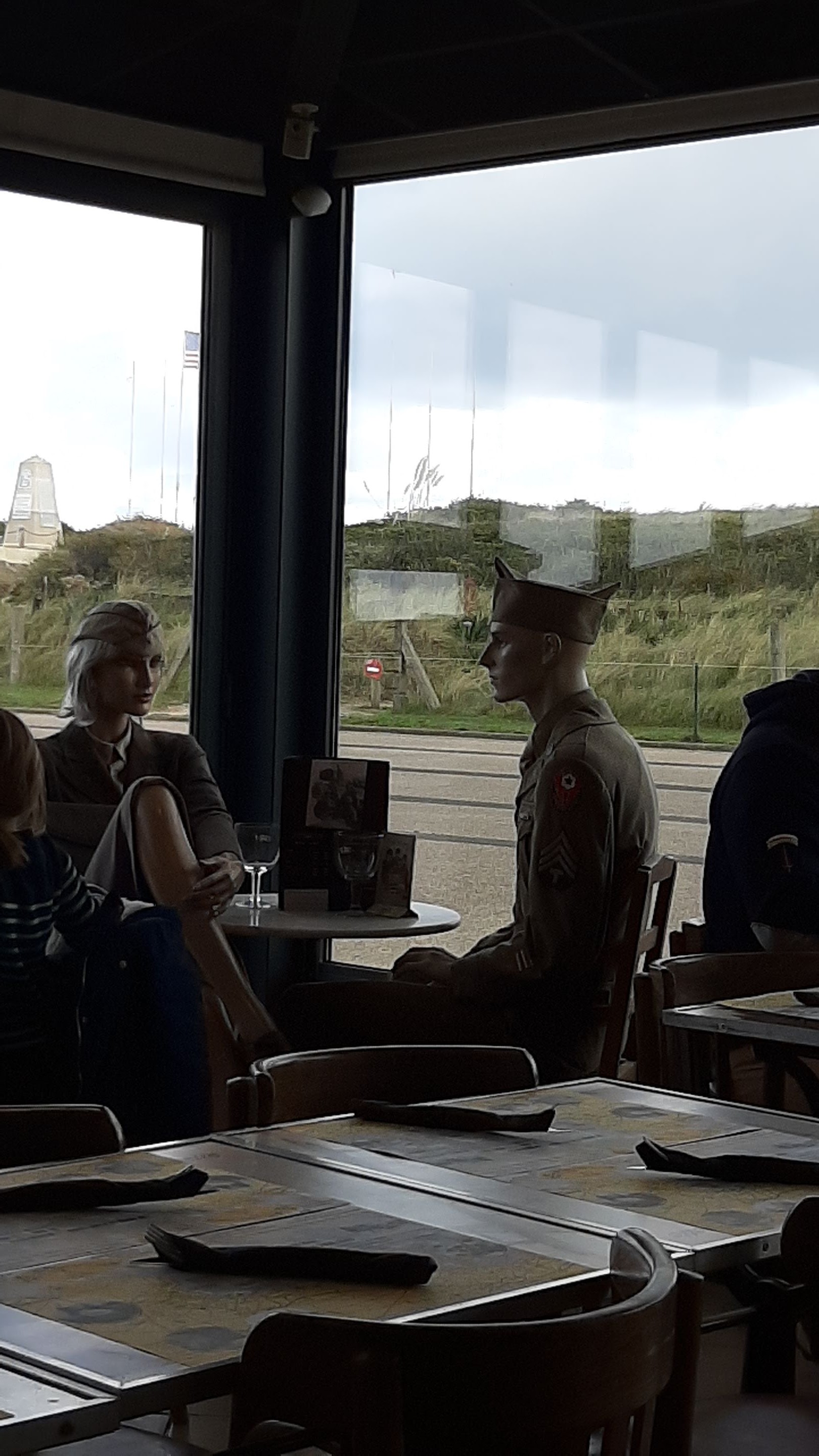 Sympa, brasserie en face de la plage d'Utah Beach... un peu déçue des gens qui se prennent en photo à côté des statues faites en hommage à nos morts, mais ce sont des touristes ! Par rapport à la brasserie on va dire que c'est du vite fait bien fait, l'intérieur est très sympa !