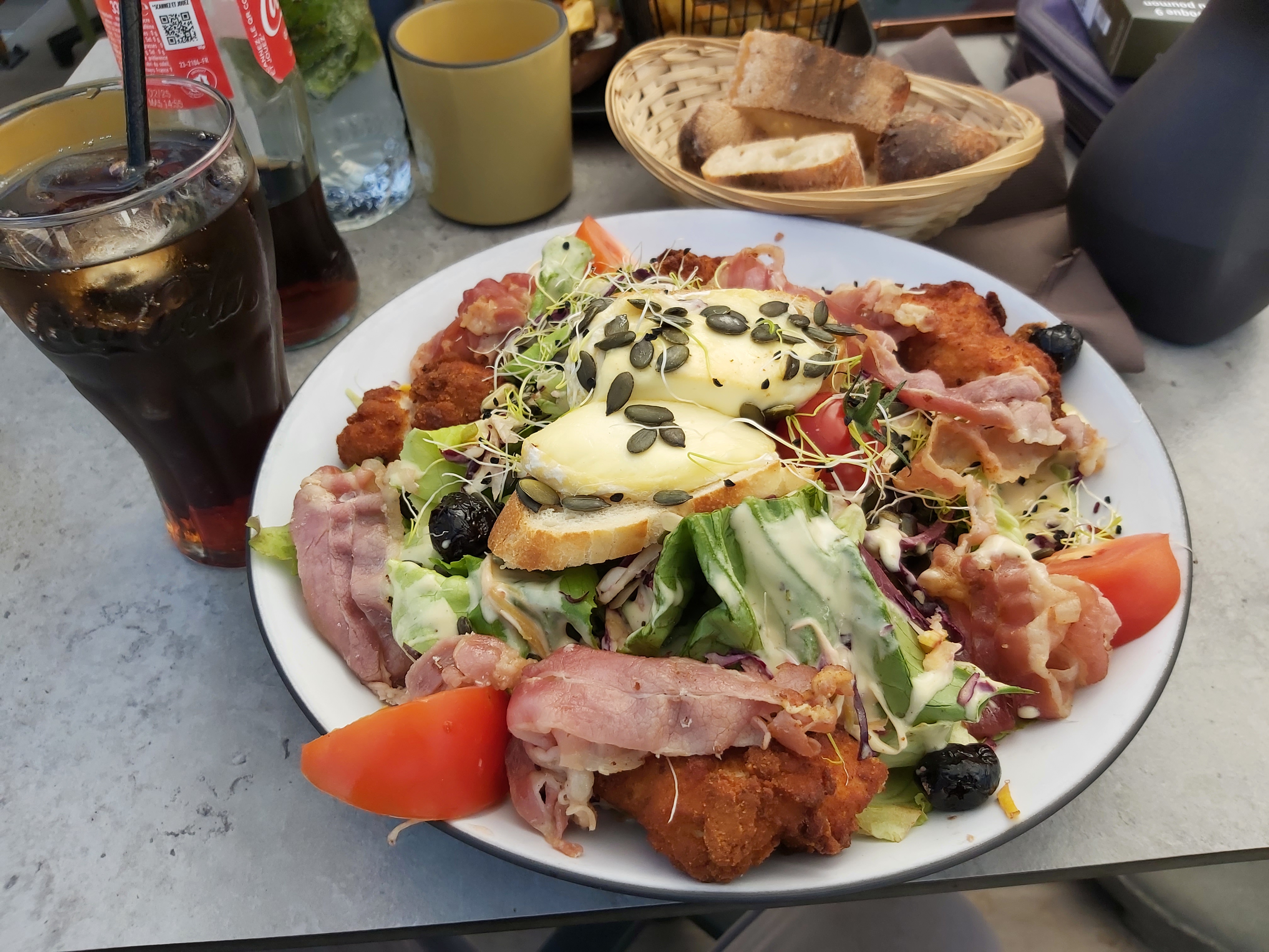 Assiette copieuse (salade) , cadre plutôt sympa pour un resto entre copines par exemple, facilité pour se garer, prix correct Le jour de notre venue beaucoup de manquants à la carte c'est dommage mais peut être pas récurrent Pour un métier de contact, le personnel pourrait être un minimum souriant (et ça c est systématique ) ça serait plus agréable. Un établissement qui mérite de faire quelques ajustements.