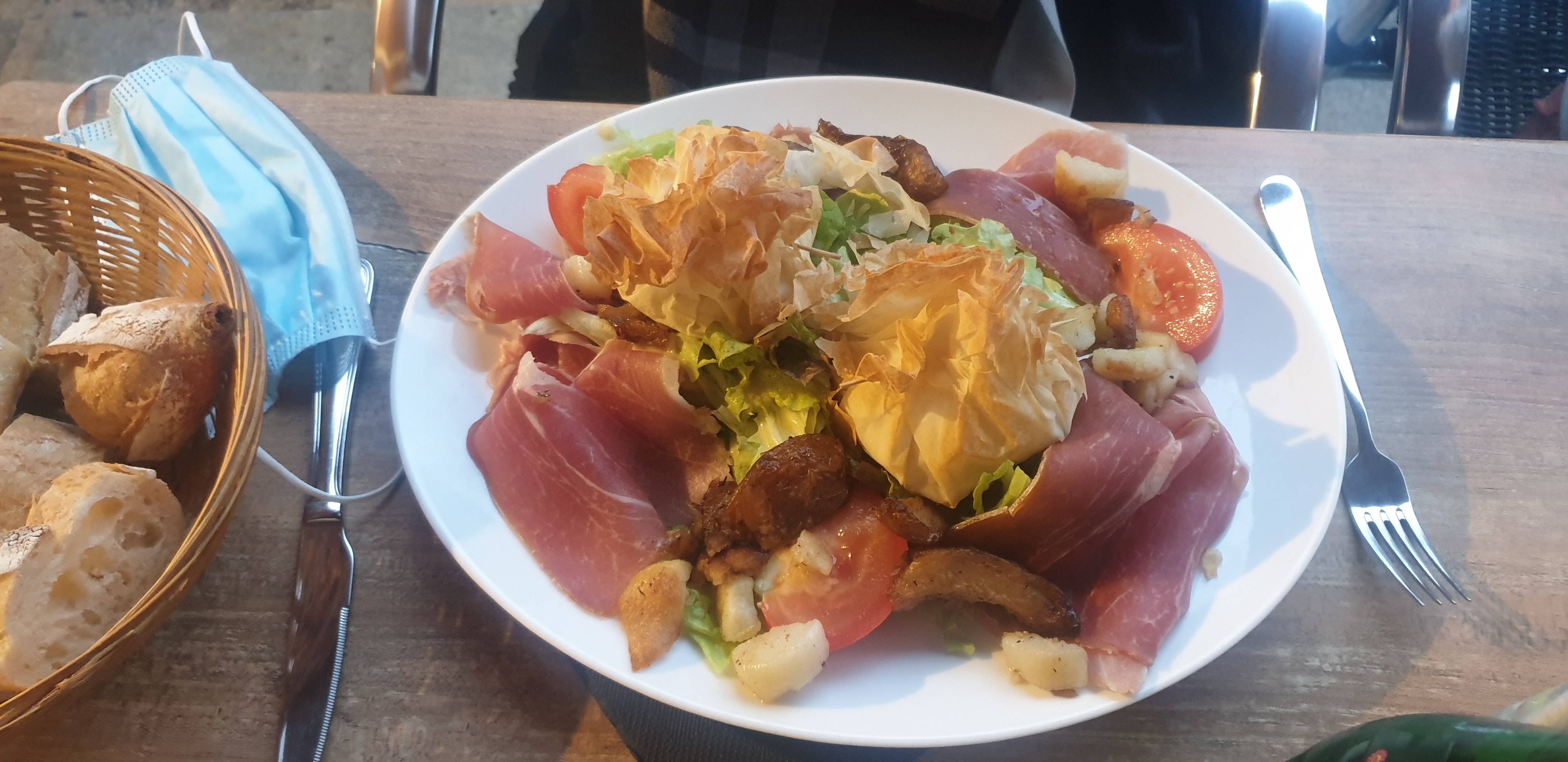 Tartare au saumon délicieux, salade bonne mais pas assez de pain fourni