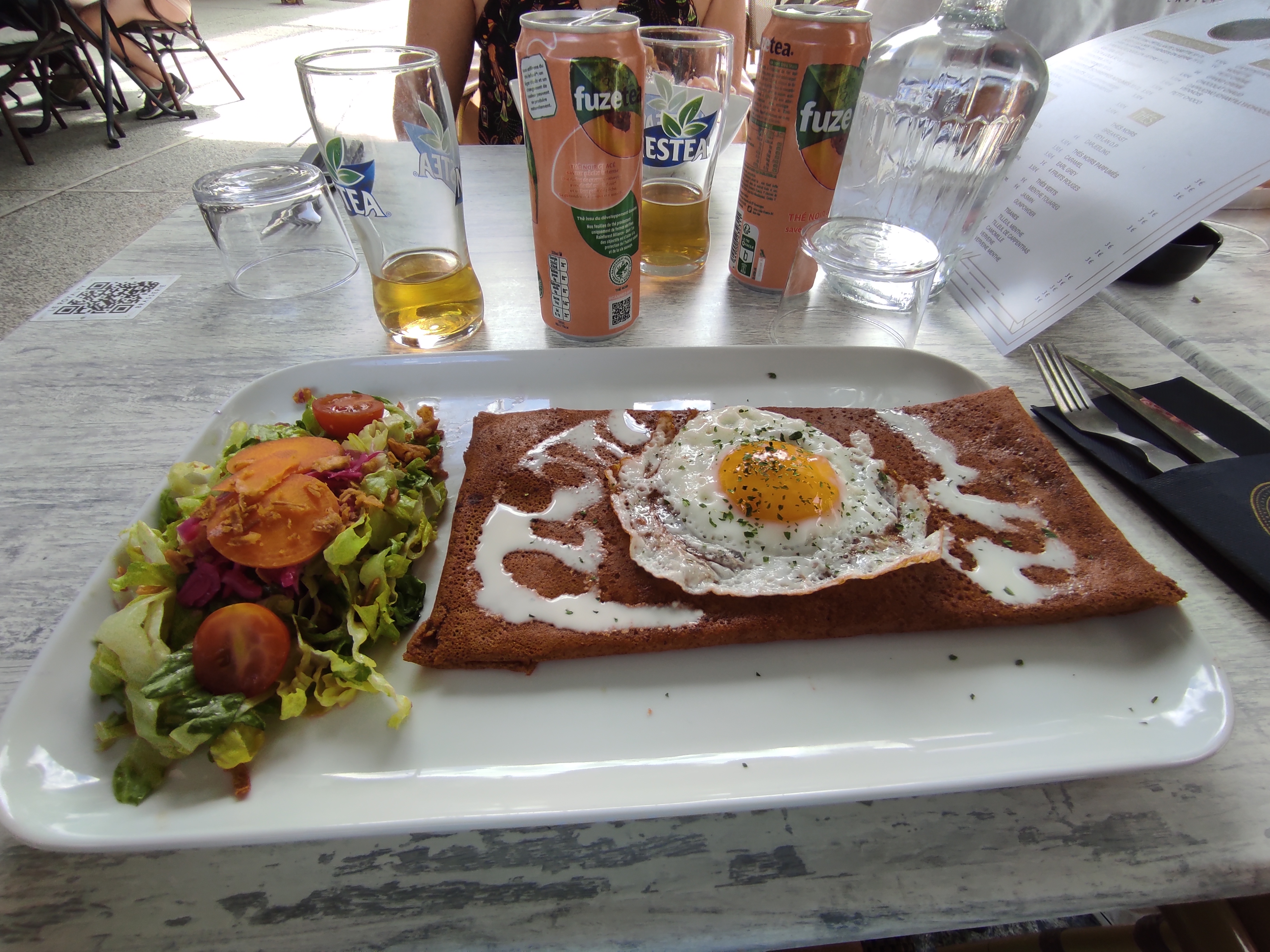 Jolie terrasse au calme, accueil sympathique, nous avons commandé une pizza aux escargots assez original, et une galette complète. C'était bon mais pas non plus extraordinaire compte tenu du prix, 17 euros en moyenne pour les pizzas et 13 euros la galette. A mon goût un peu excessif.