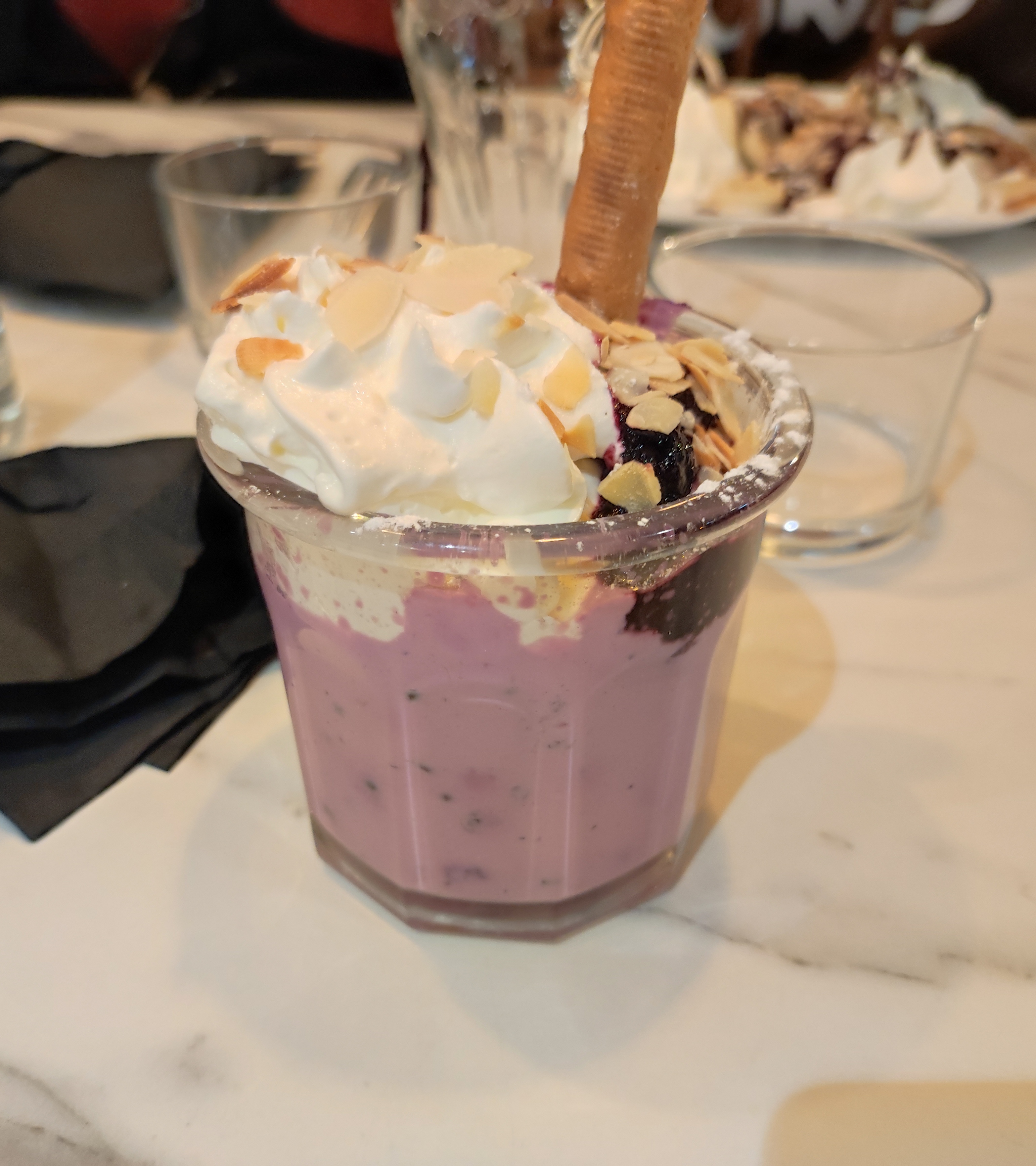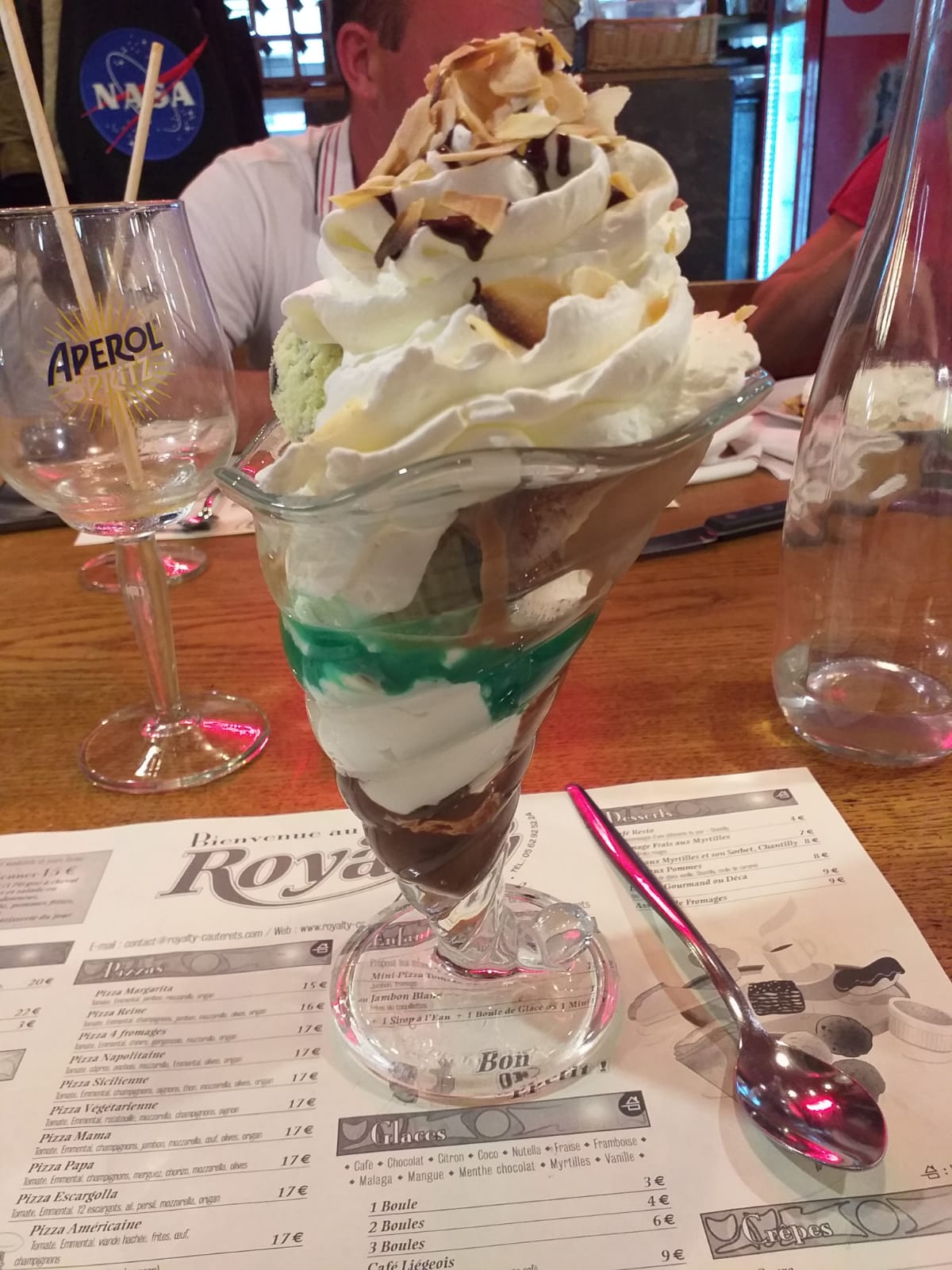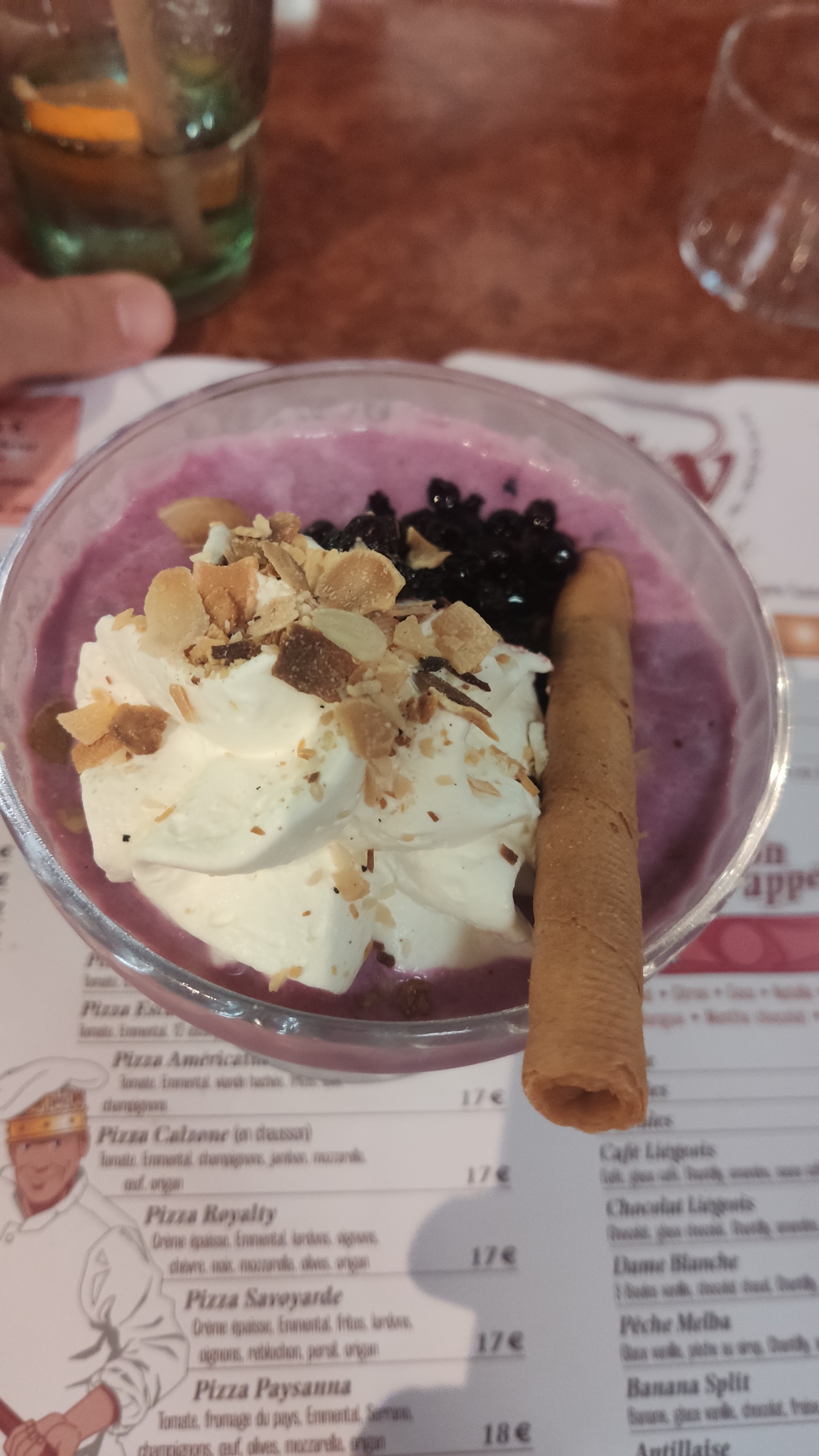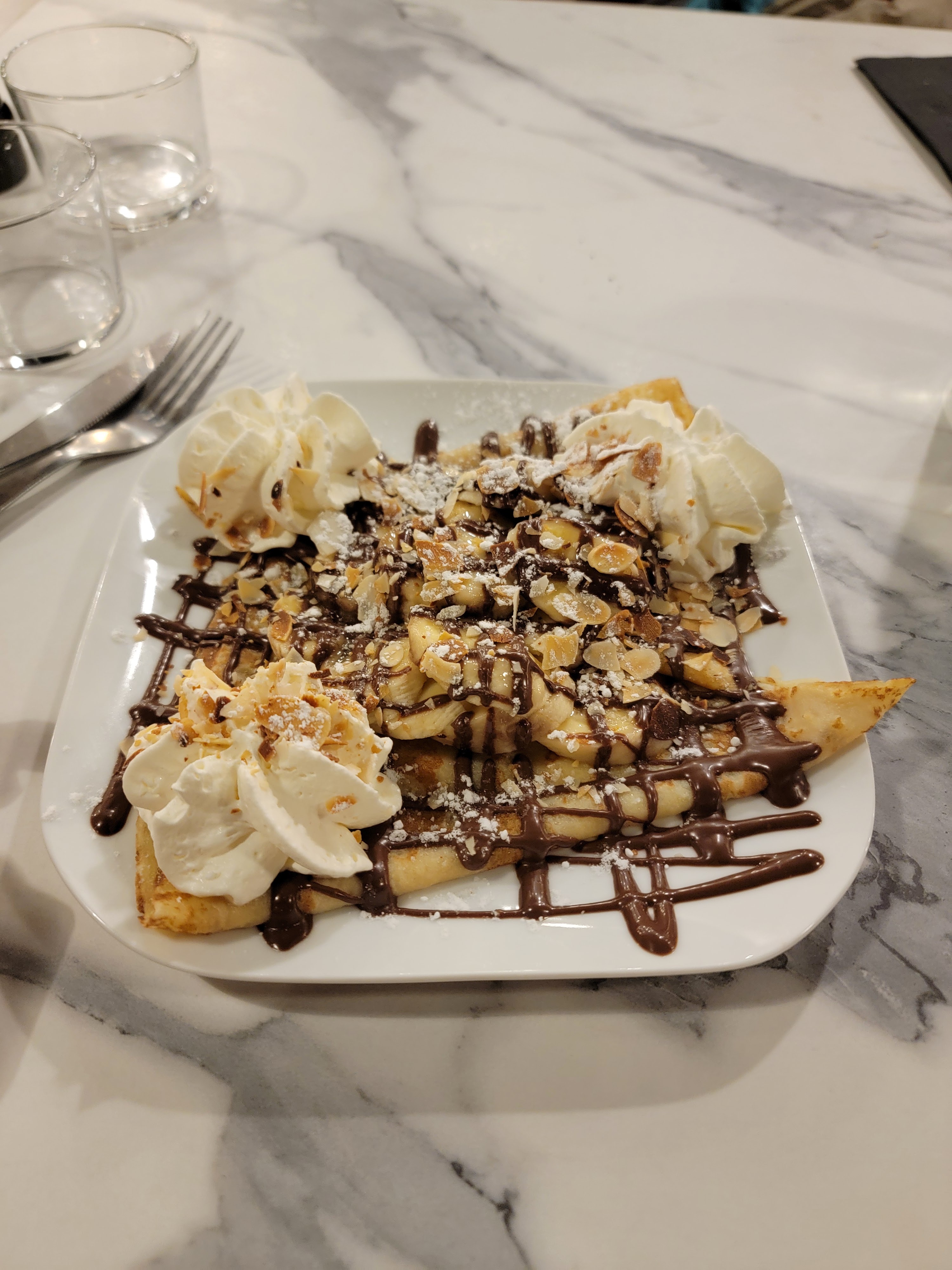 Une glace à l'italienne avec bcp de goût ce que l'on retrouve rarement, Crêpes un peu sec mais super bonne, serveuse et serveur efficace, très occupée mais rapide pour un restaurant très occupé je suis très satisfaite continuer comme sa j'adore les sourire que vous donner me donne envie de revenir à chaque fois