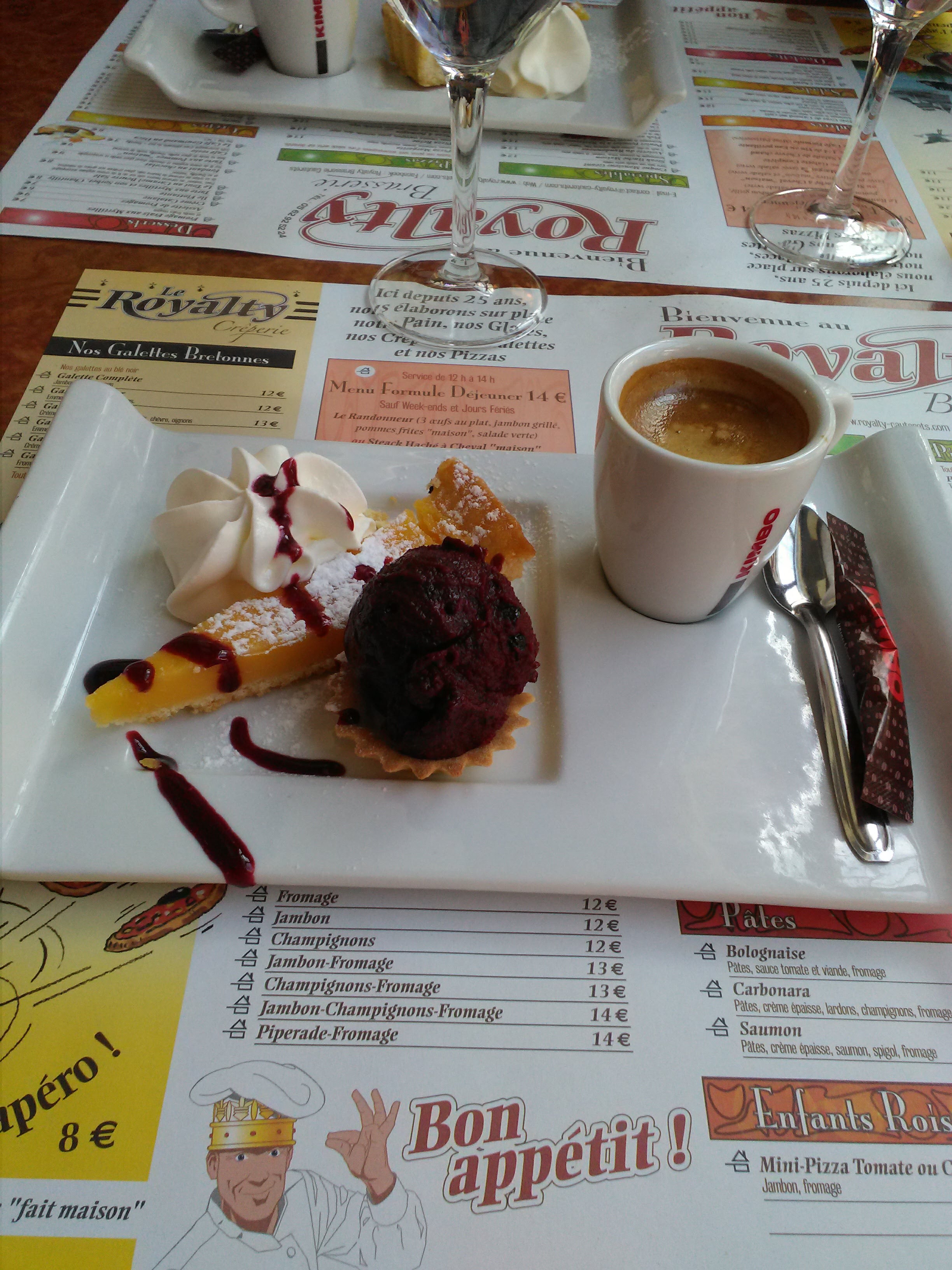 Très belle découverte ! Arrivés à 4 vers 20h45 en quêtant un endroit pour se sustenter nous arrivons au Royalty Café. Rico (merci !) accepte de nous accueillir à l'intérieur, ouf ! La carte est pleine de bonnes surprises ! Les galettes, glaces, pain, frites sont maison. Laissez-moi vous dire que tout était délicieux ! Accompagné d'une ambiance dans le service de grande qualité et avec sourire et humour. C'est exactement ce qu'il nous fallait après cette longue journée... Merci donc à l'équipe et particulièrement à Rico qui ont su rendre ce moment inoubliable et mieux, nous a donné envie d'y revenir ! 5 étoiles. Point. Pour tout. Top.