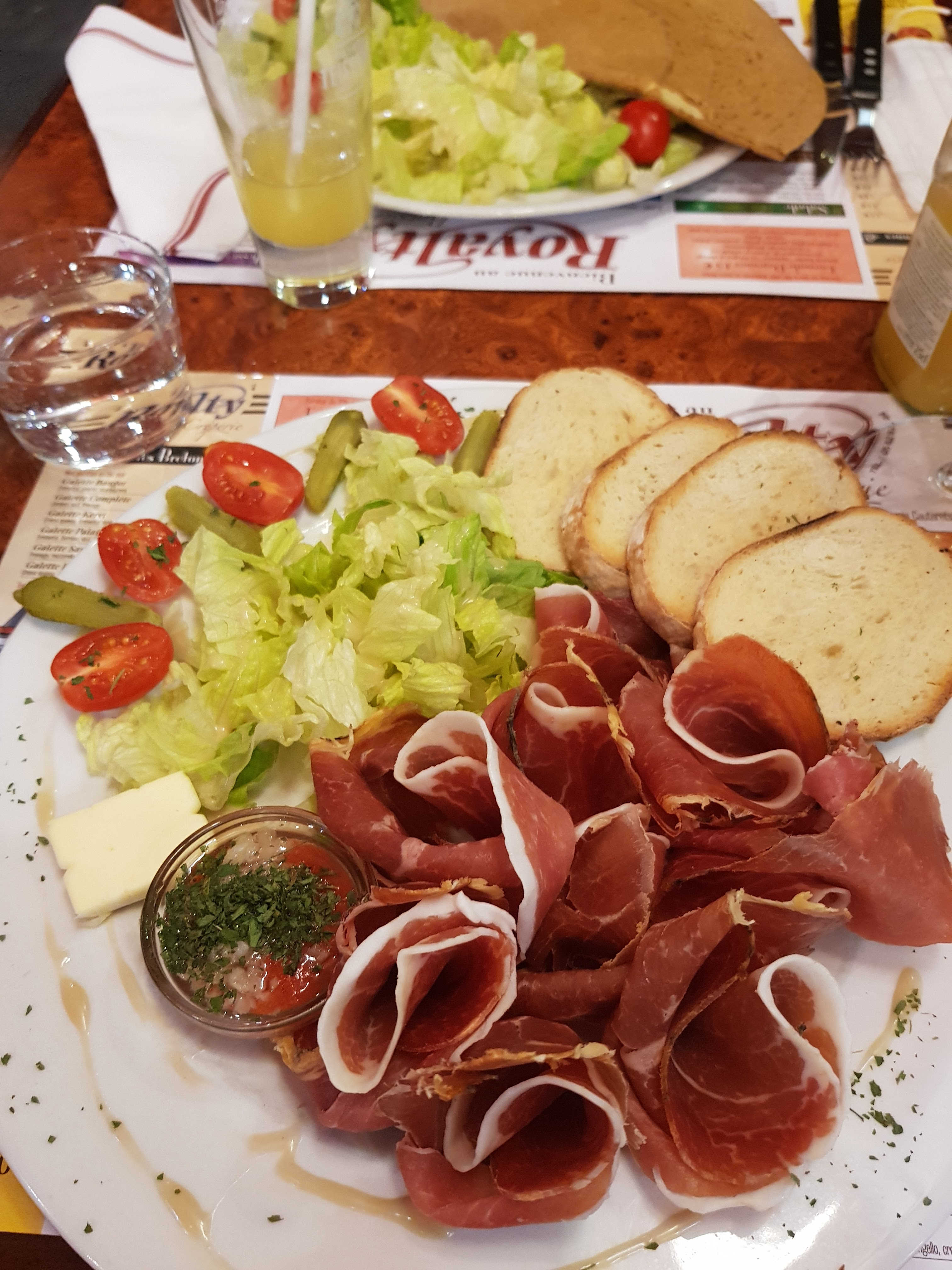 Pour commencer tout se passe bien, la jeune serveuse est très gentille avec nous, on nous met à un table à l'écart avec nos 2 chiens. On nous sert une assiette de charcuterie à partager vraiment pas mauvaise. Le problème arrive au moment de la commande de nos plats. Nous avons attendus 50min sans avoir nos plats. Quand nous demandons à la serveuse si on a été oublié on nous répond que nos plats viennent de sortir. Or 10 min après nous n'avons toujours rien. Nous sommes donc partis sans manger. Très déçu car au vu des avis le Royalty avait l'air pas mal.